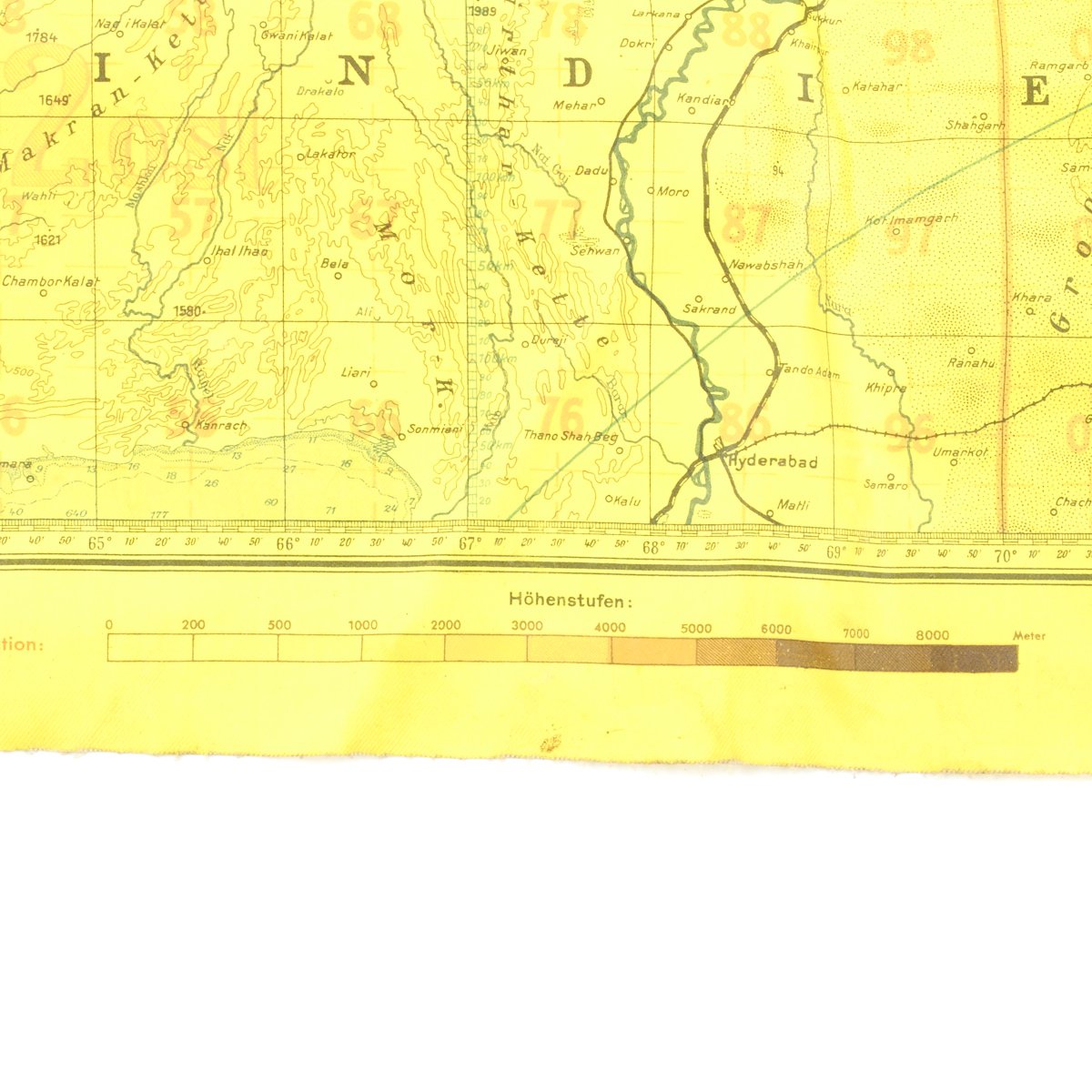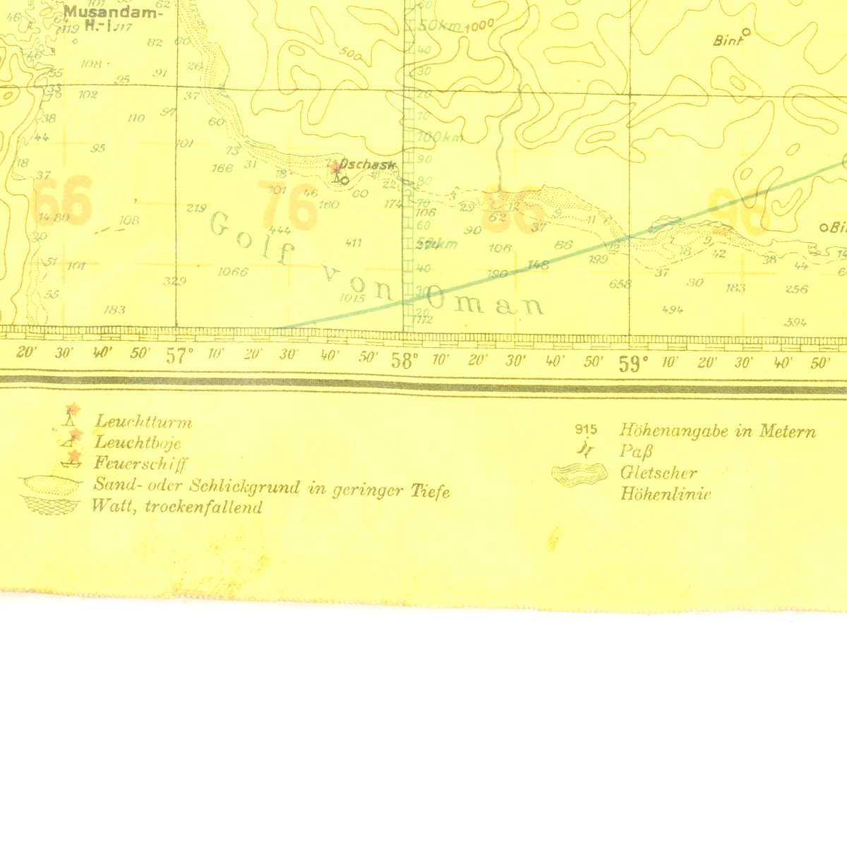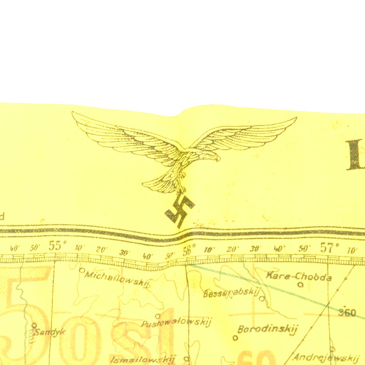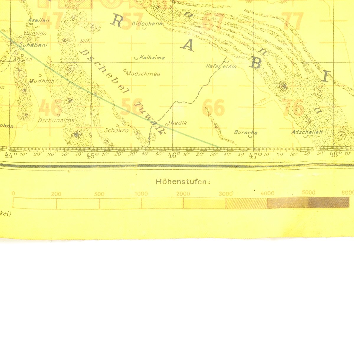 This is a wonderful waterproof map with Luftwaffe Eagle and Luft-Navigationskarte in Mercatorprojektion across the top. This double sided map is of the Middle East including Palestine and Turkey and of South Eastern Russia and the Ukraine.