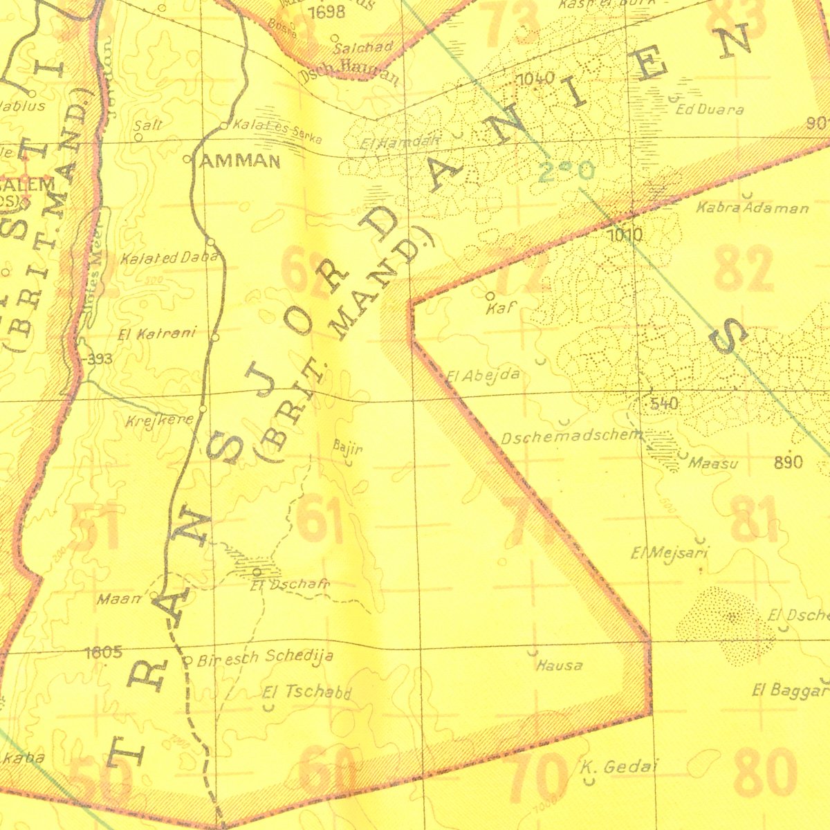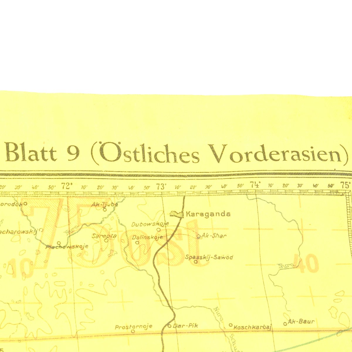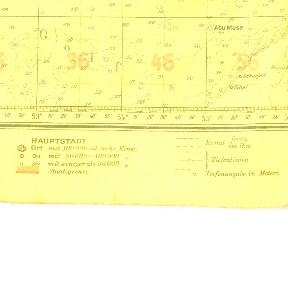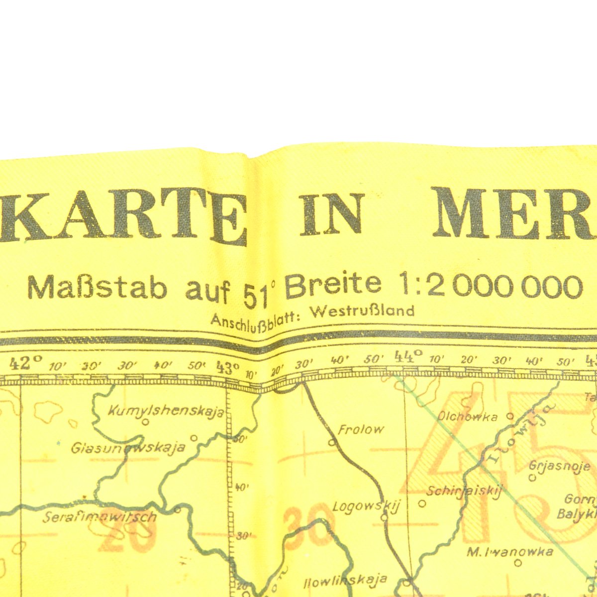 This is a wonderful waterproof map with Luftwaffe Eagle and Luft-Navigationskarte in Mercatorprojektion across the top. This double sided map is of the Middle East including Palestine and Turkey and of South Eastern Russia and the Ukraine.