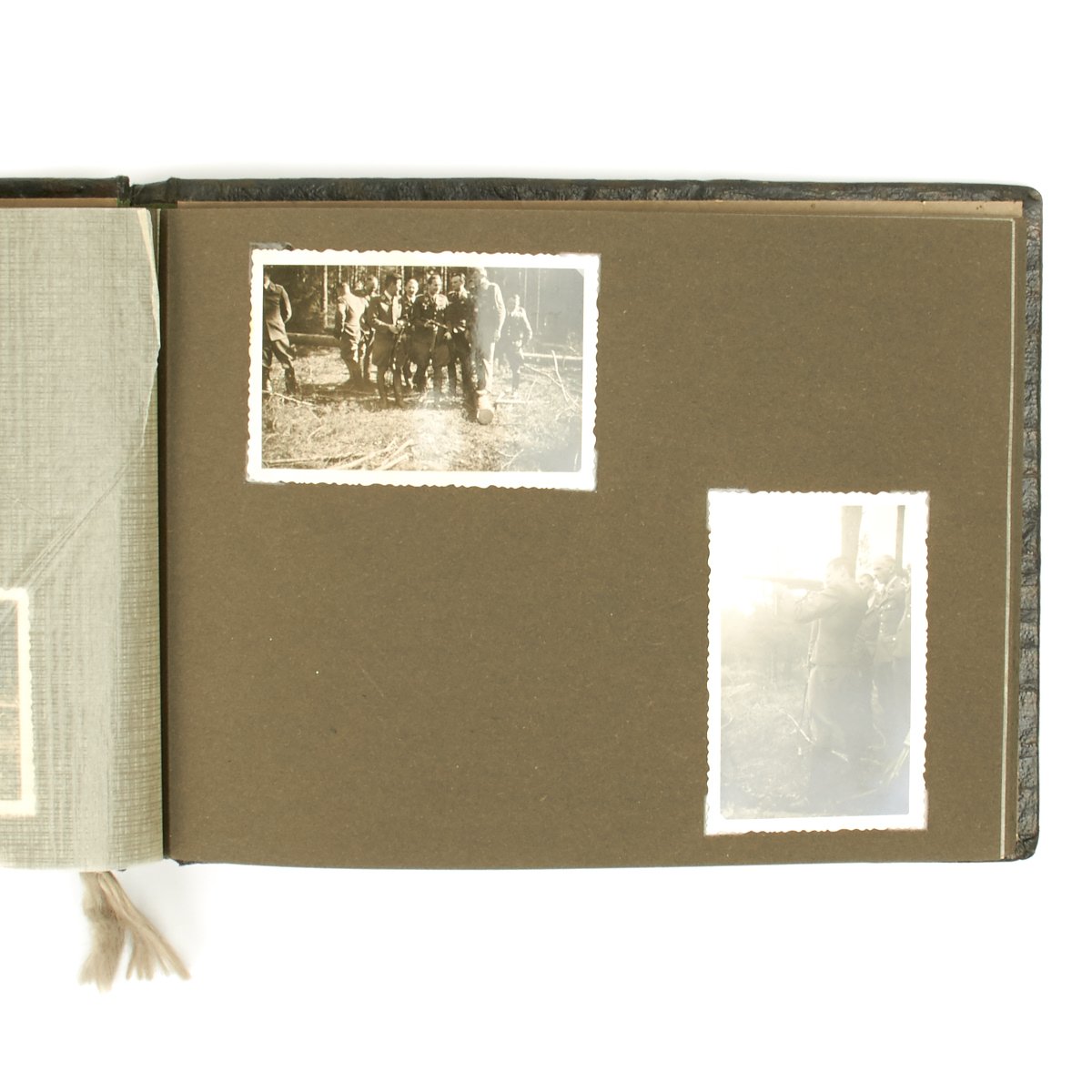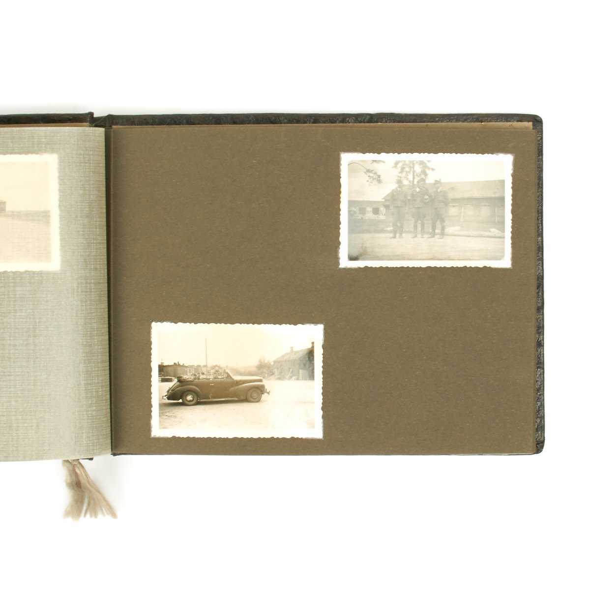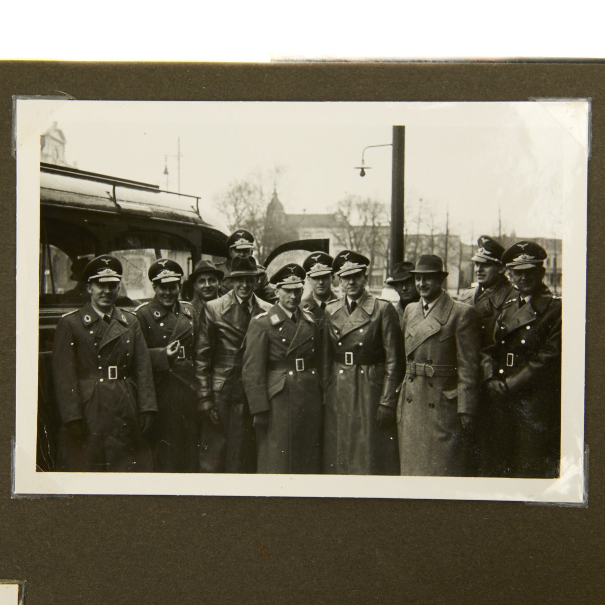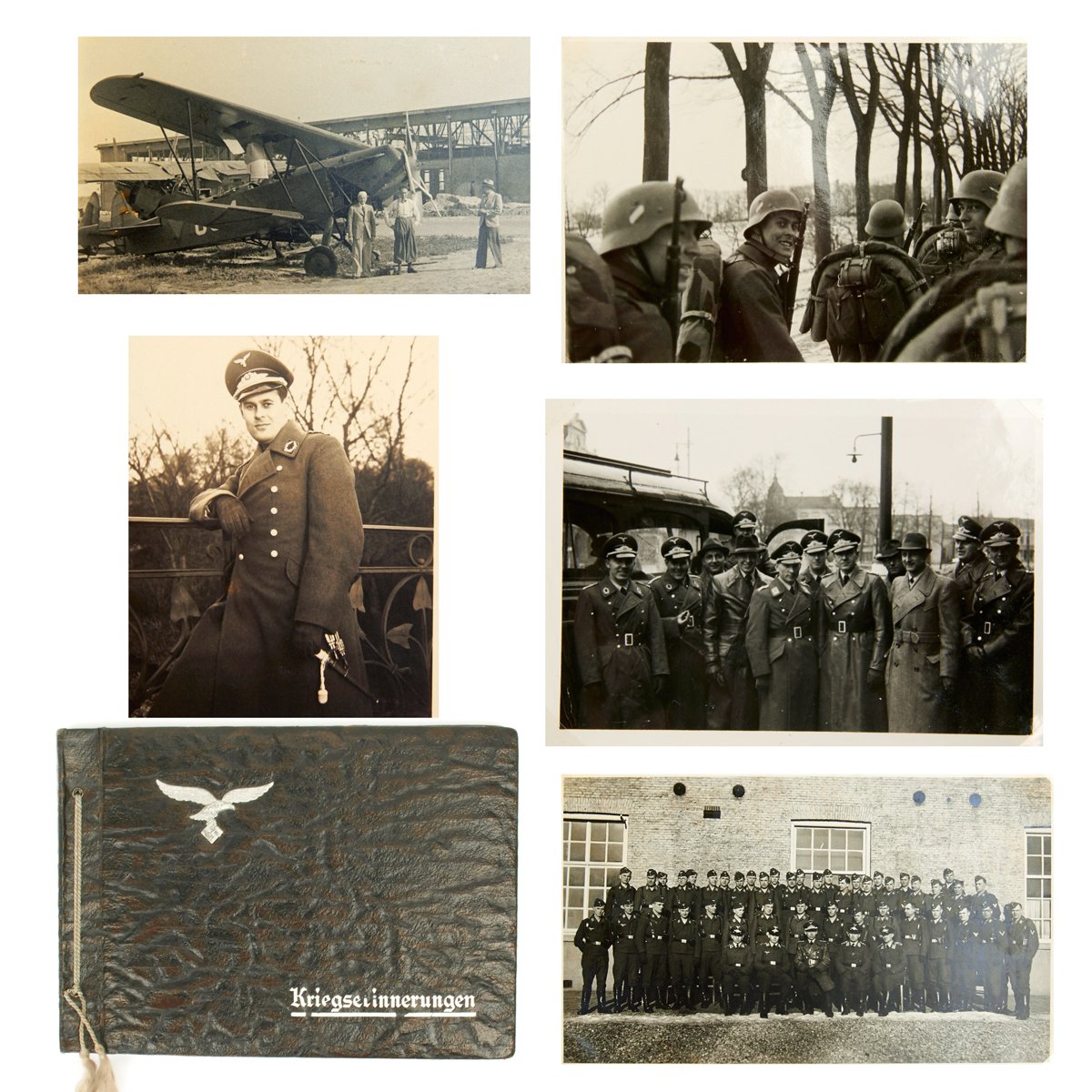 Original Item: One-of-a-kind-set. This is a wonderful clean and crisp 34 page album with 55 photos that belonged to a Luftwaffe officer. The photos feature everything from the officer in uniform with his dress dagger, to fellow soldiers, officers, automobiles, airplanes and more. An exceptional well kept album with Luftwaffe eagle on the cover and KREIGSERINNERUNGEN (War Memories).
