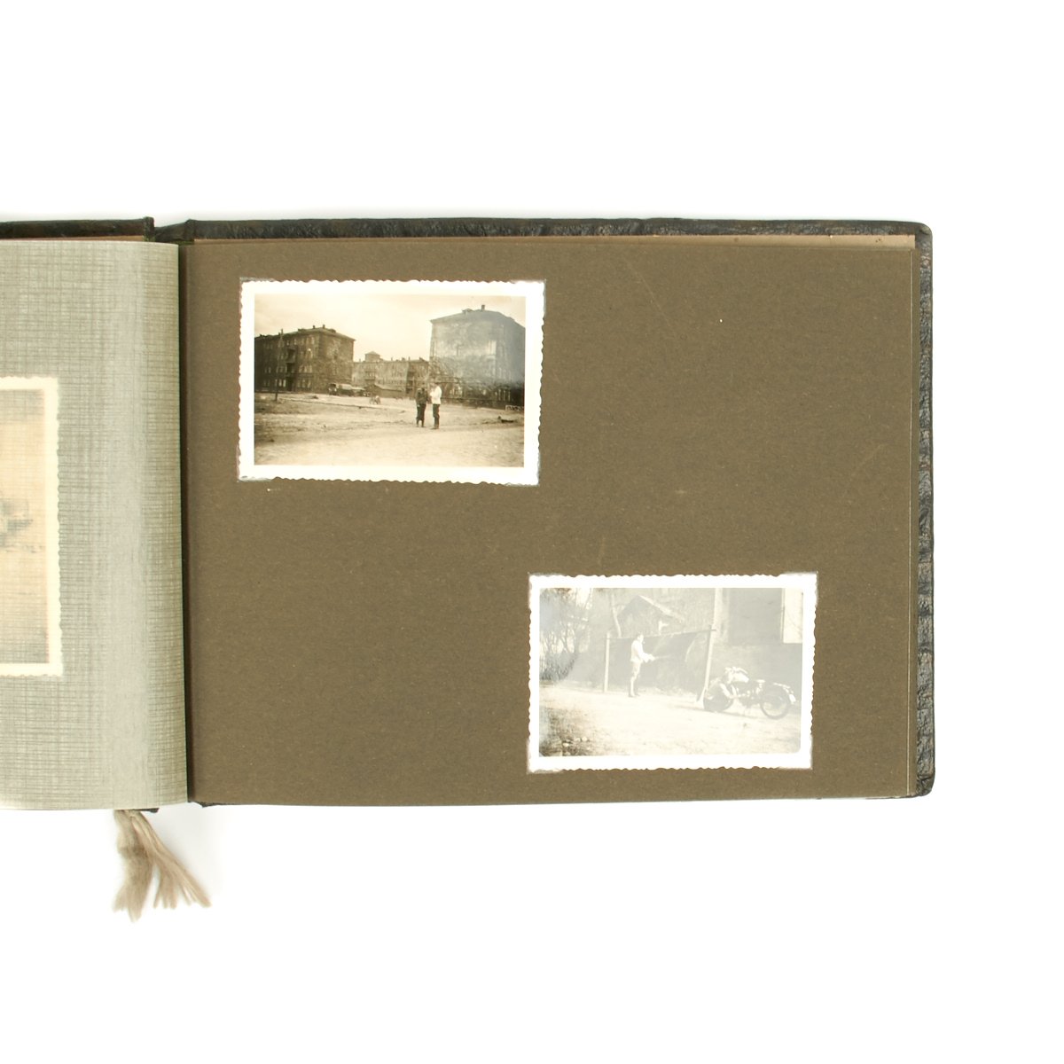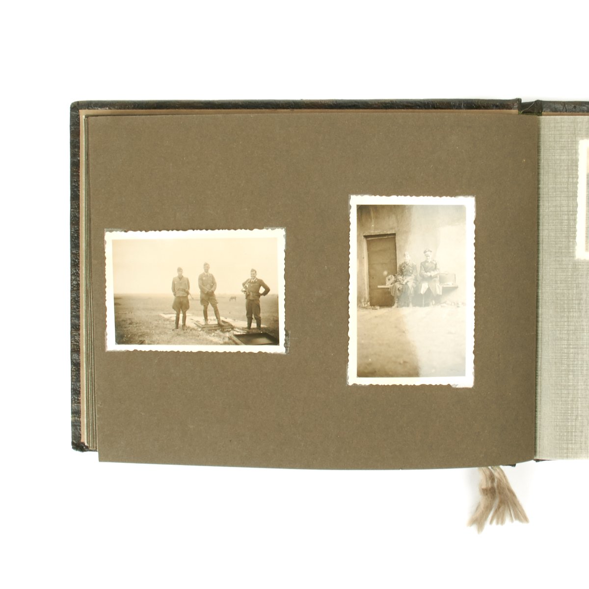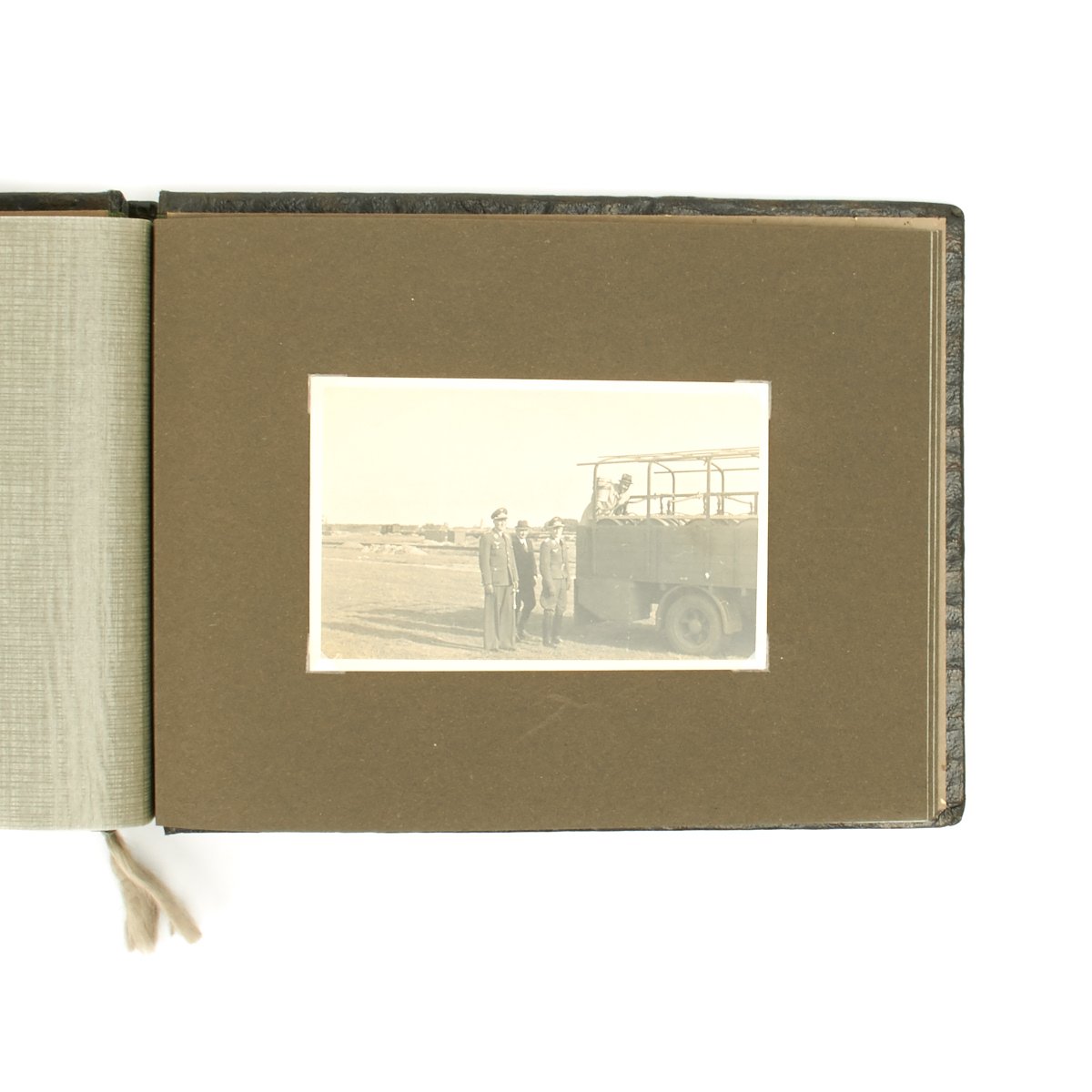 Original Item: One-of-a-kind-set. This is a wonderful clean and crisp 34 page album with 55 photos that belonged to a Luftwaffe officer. The photos feature everything from the officer in uniform with his dress dagger, to fellow soldiers, officers, automobiles, airplanes and more. An exceptional well kept album with Luftwaffe eagle on the cover and KREIGSERINNERUNGEN (War Memories).