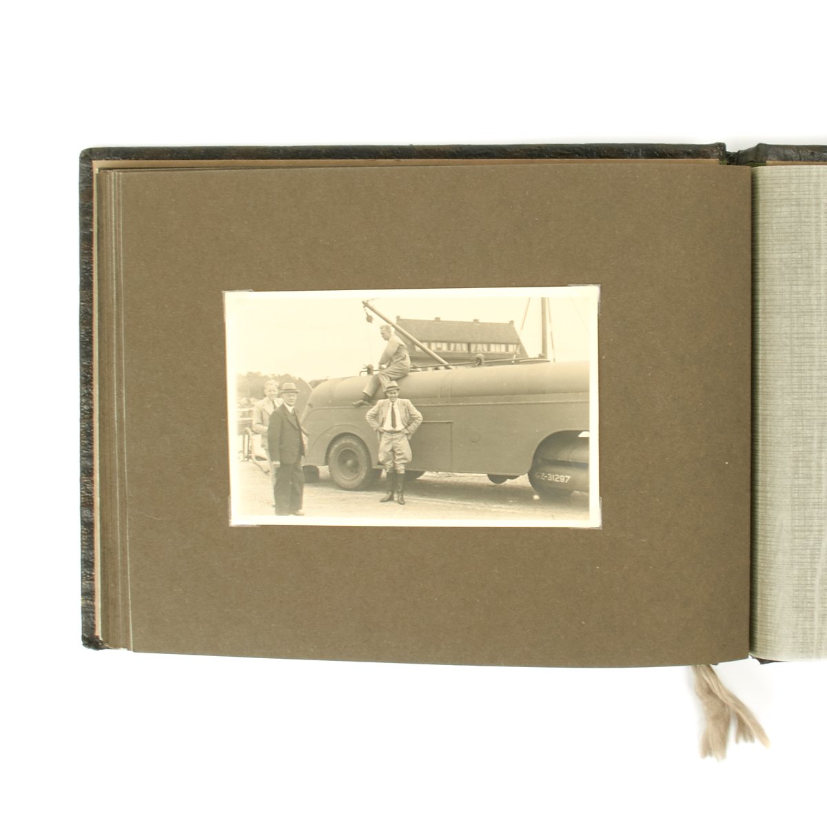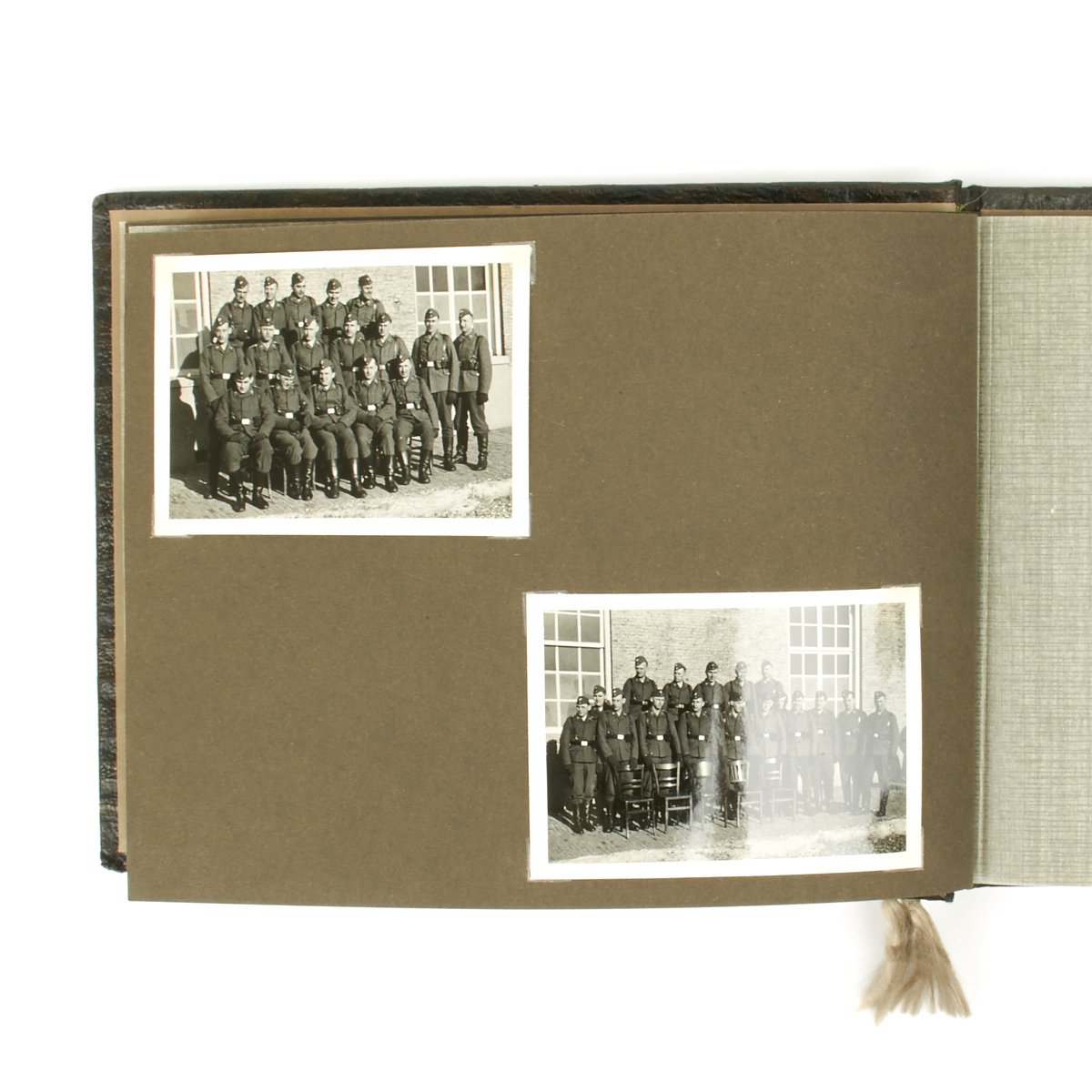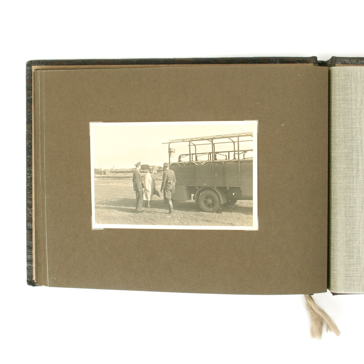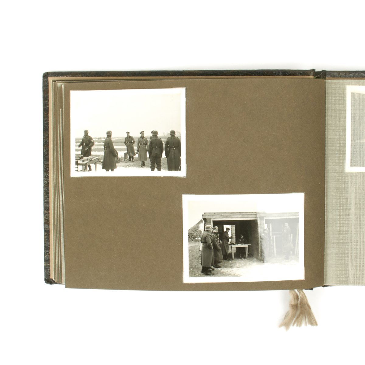 Original Item: One-of-a-kind-set. This is a wonderful clean and crisp 34 page album with 55 photos that belonged to a Luftwaffe officer. The photos feature everything from the officer in uniform with his dress dagger, to fellow soldiers, officers, automobiles, airplanes and more. An exceptional well kept album with Luftwaffe eagle on the cover and KREIGSERINNERUNGEN (War Memories).