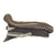 The visor on this cap is the standard "vulcanfibre" with black patent faux leather stitched around the edge, and a green underside. Above this is the correct bullion officer's chin strap, retained by pebbled buttons. The interior is lined with fine blue gray rayon, and has a brown leather sweatband embossed with EREL PATENT / STIRNSCHÜTZ on the left side. There is no size marked, but it seems to be about a size 56cm / US 7. The celluloid diamond crown sweat shield at the top is completely missing, though the stitching is still present. There is no longer any trace of the maker on the top.