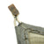 This Fender Pennant is still enclosed in the original celluloid covering. The celluloid is completely intact, and just has one tiny crack near the rear edge. There are no dents in the plastic, though it has yellowed slightly, and shrunk inward, which has actually bent the back edge of the pennant frame. This covering is edged with sewn blue faux leather that runs all the way around each side encompassing a wire frame. The frame is still present and connects at each corner to a mounting cuff, which attaches to a post on the fender.