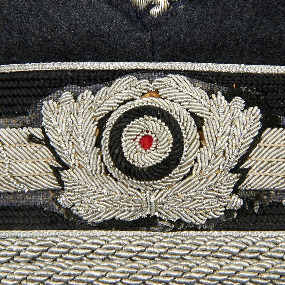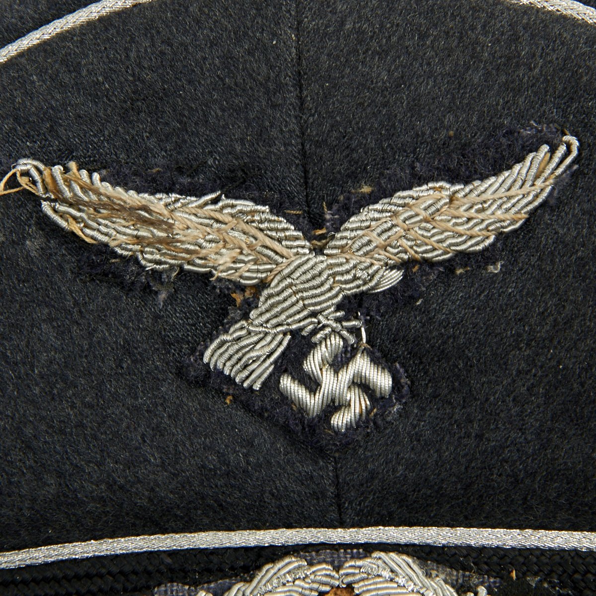 Overall very good condition with some wear in places but no signs of moth. A truly quality Luftwaffe officer cap of the mid-war style with silver bullion embroidered cockade and eagle.