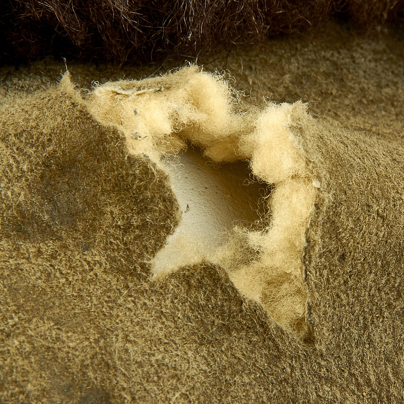 This is an excellent condition, heavy, one piece, coverall style, winter flight suit constructed in blue fabric with a large chocolate brown fleece collar. Buttons and zippers look to be all complete. Roughly chest size 40". Makers labels both read Karl Heisler Berlin C2.