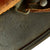 The reverse, interior, neck guard apron is serial number stamped 4884 and the interior, left side, apron has the stamped manufacturer's code and size, Q64 indicating that it was manufactured by F.W. Quist G.m.b.H. in the German city of Esslingen. Size 64 is a nice medium size that can accommodate liners from 56cm to 57cm or US 7 to 7 1/8. Size 64 shells are harder to find and are therefore more valuable to a collector.