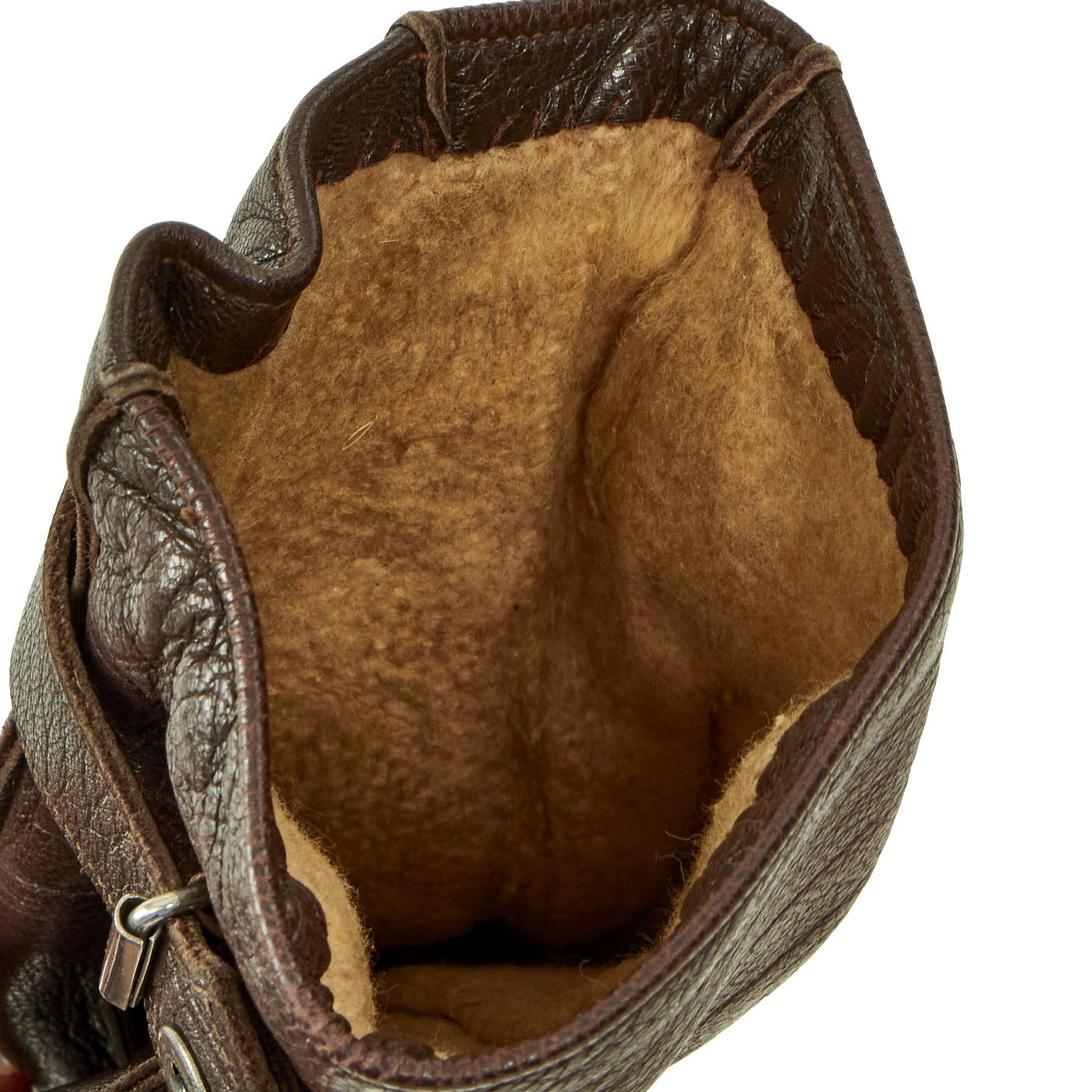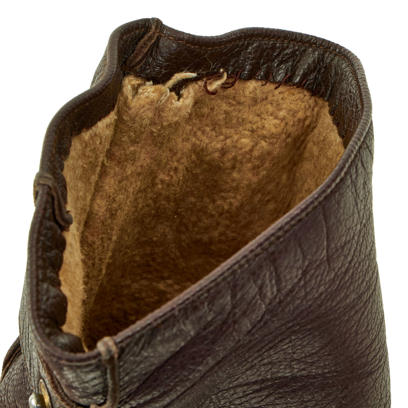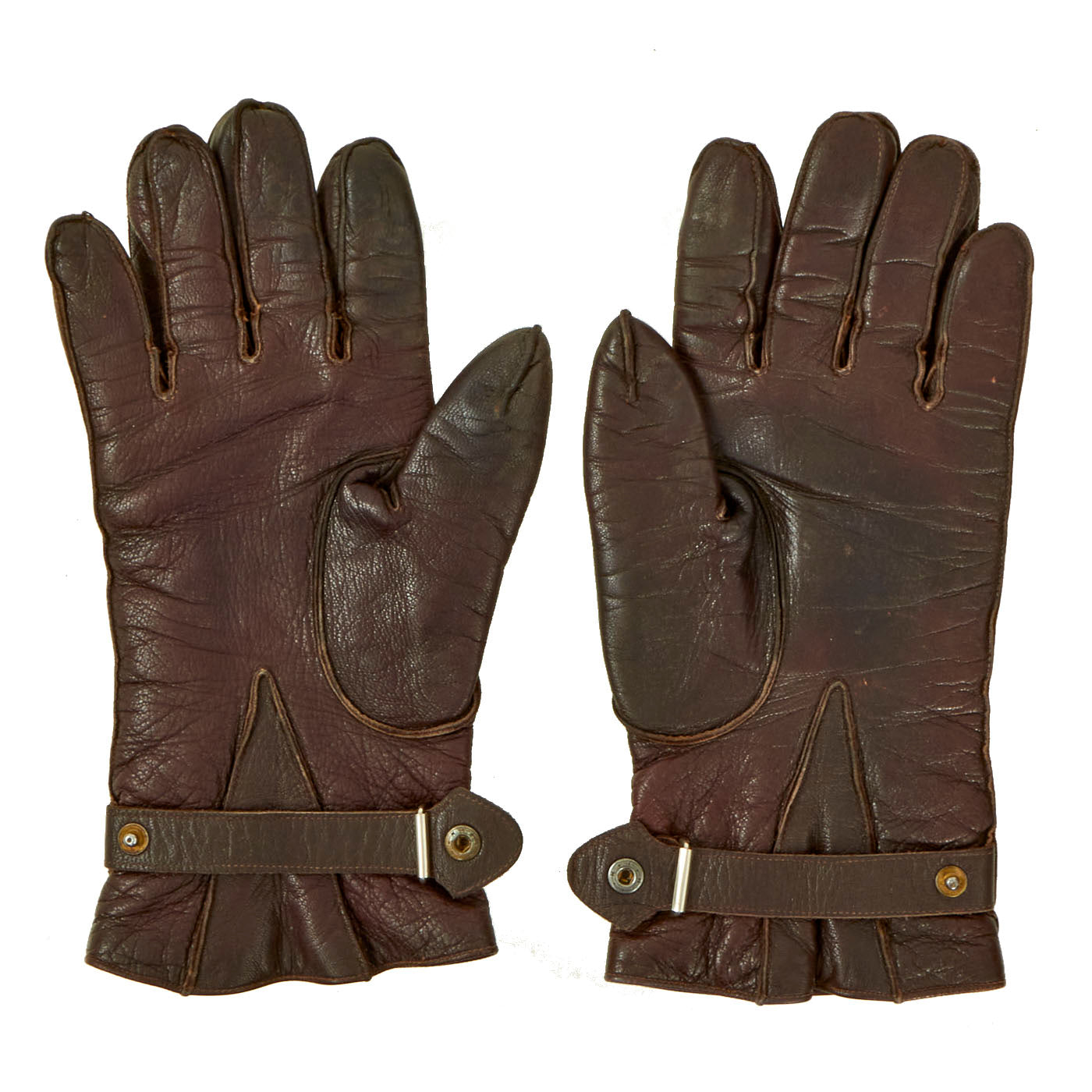 Original Item: Only one pair available. This is a Genuine very nice pair of German WWII Luftwaffe "Short Pattern" Flight gloves, made of very nice brown wool lined leather. While the mature wool is not as soft as lamb shearling, the leather itself is much more robust when using a mature sheep, making these more durable. They have a belted wrist adjustment, with a sliding snap buckle for size adjustment.