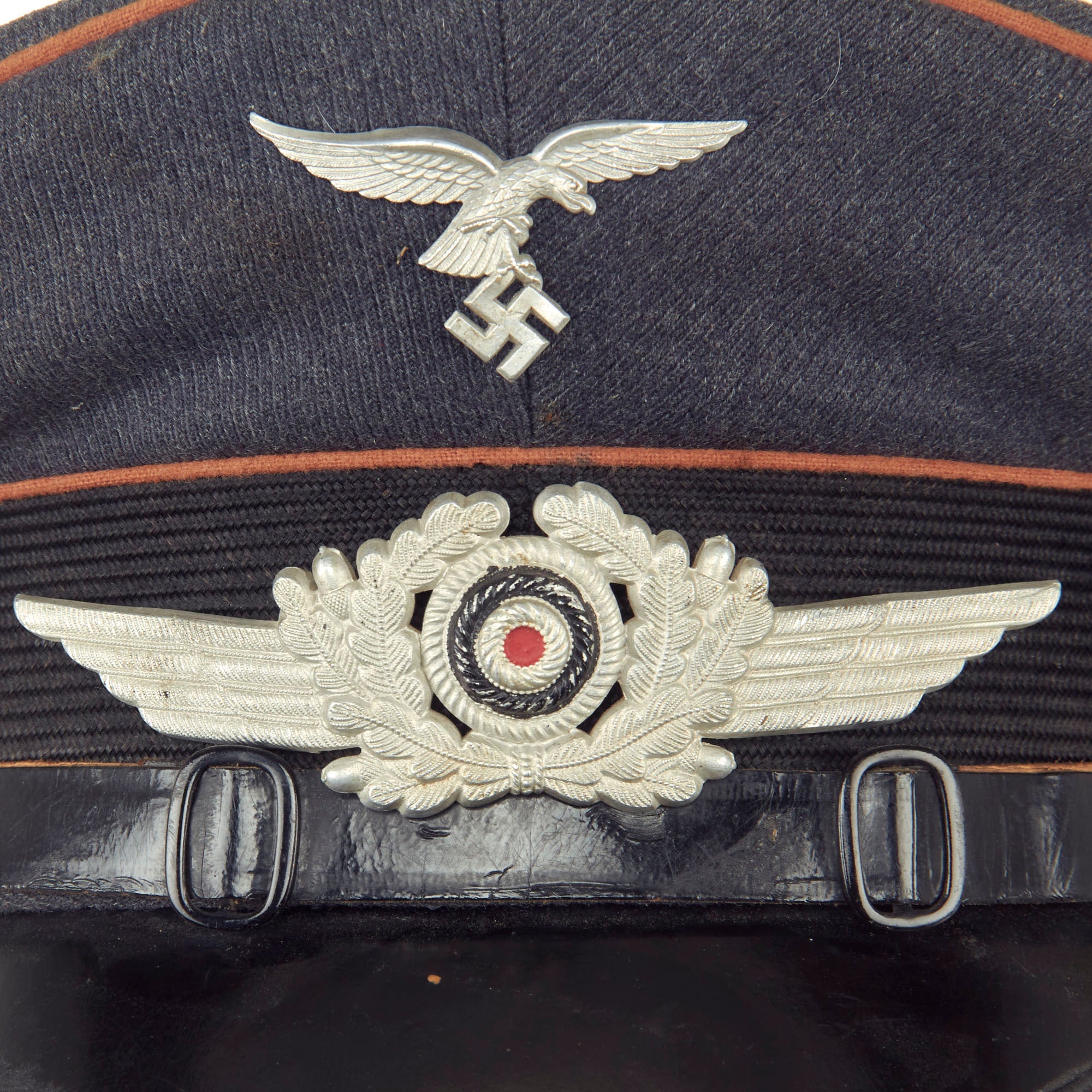 The visor cap (Schirmmütze) was an important part of the headgear worn by German uniformed military, civil, paramilitary and political organizations during the Third Reich. This was the standard cloth headgear worn as a part of the service uniform. Visor caps were worn outdoors as well as indoors, and were often required to be worn by all personnel on duty. Visor caps were made in versions specific to each organization and were often further differentiated through the use of insignia, colored piping, or style of chin cord, to indicate rank, role or branch. The insignia used on these caps ranged from simple stamped metal emblems, to elaborate hand embroidery. Visor caps were issued to enlisted soldiers and NCOs in the military and in some other organizations. Officers had to purchase their own hats, and lower ranks could choose to purchase caps that were of a higher quality than the rather basic, issue examples. The private purchase caps were generally made in very high quality, with fine materials. A wide variety of fabrics were used, from Trikot and doeskin, to heavy wool, or even lightweight white fabric for summer wear. In the military, issue of these caps was generally suspended shortly after the outbreak of the war, but they continued to be worn by some troops until the end of the war.