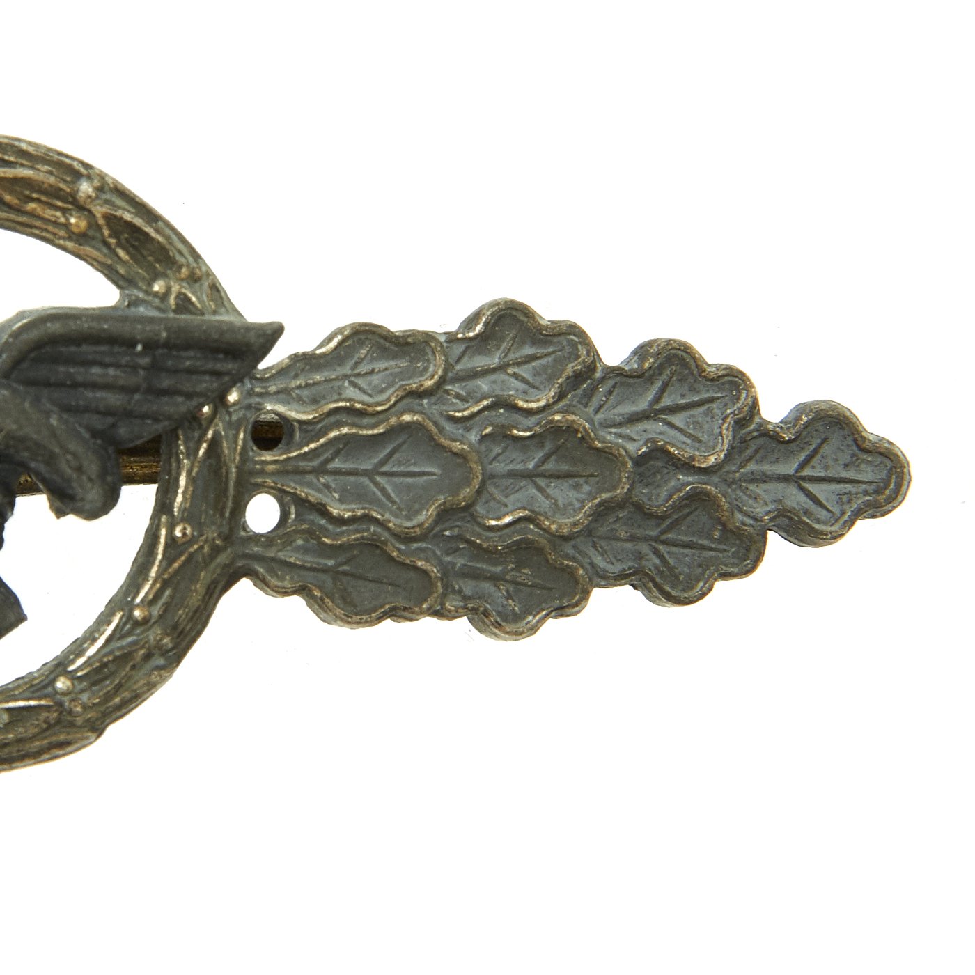All badges are formed of a central device (usually blackened) encircled by a wreath of laurel leaves set between two stylized wings of oak leaves with a swas located at the base of the wreath. Clasps measure approximately 7.5 cm (3 in) by 2.5 cm (1 in). The various designs of the central device was determined from the type of aircraft flown. The clasp pennant was instituted as additional recognition for the increased number of operational missions/flights, which grew as the war continued.