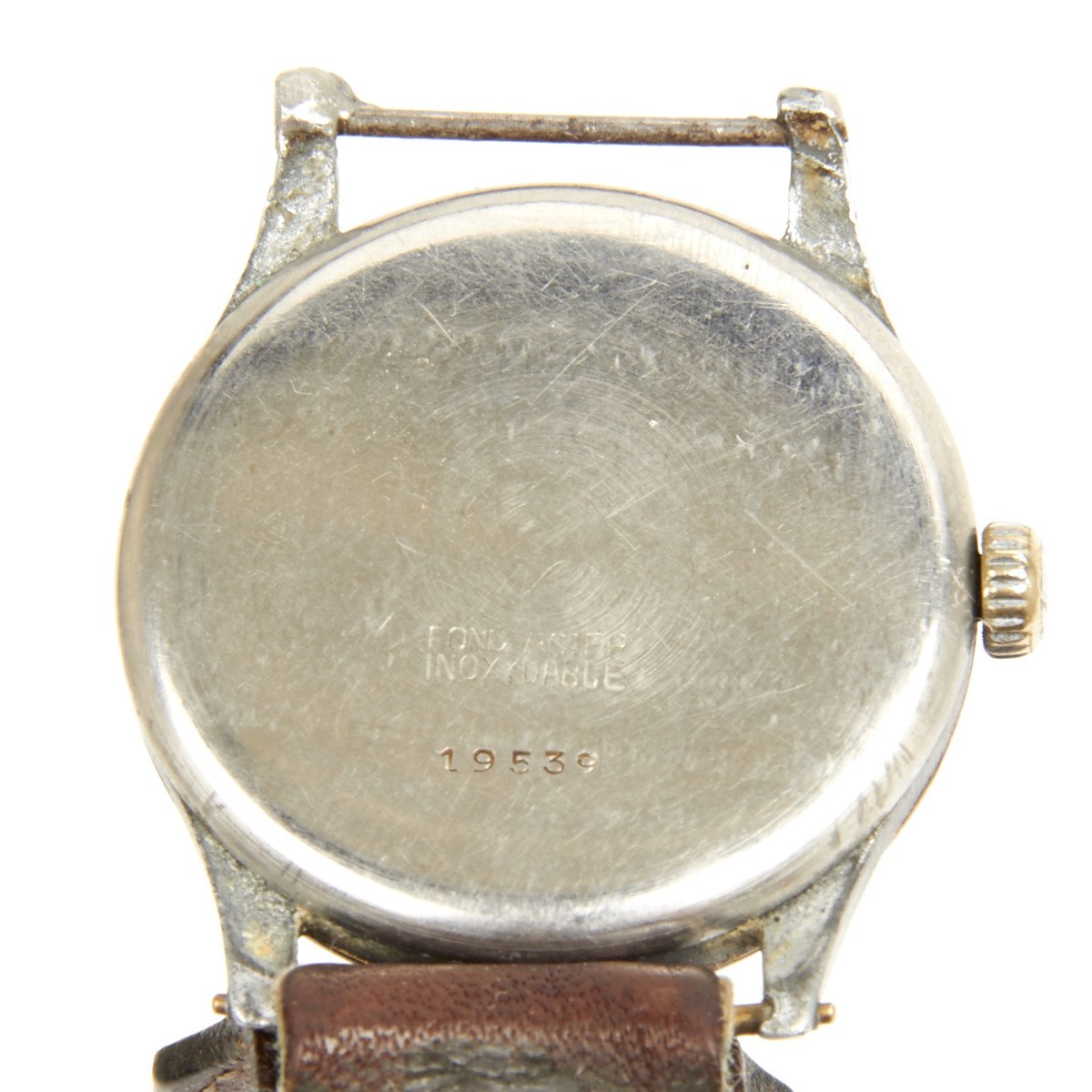 This example has a beautiful original metal chrome case with stainless steel push back. Reverse of back impressed with serial number 19539.