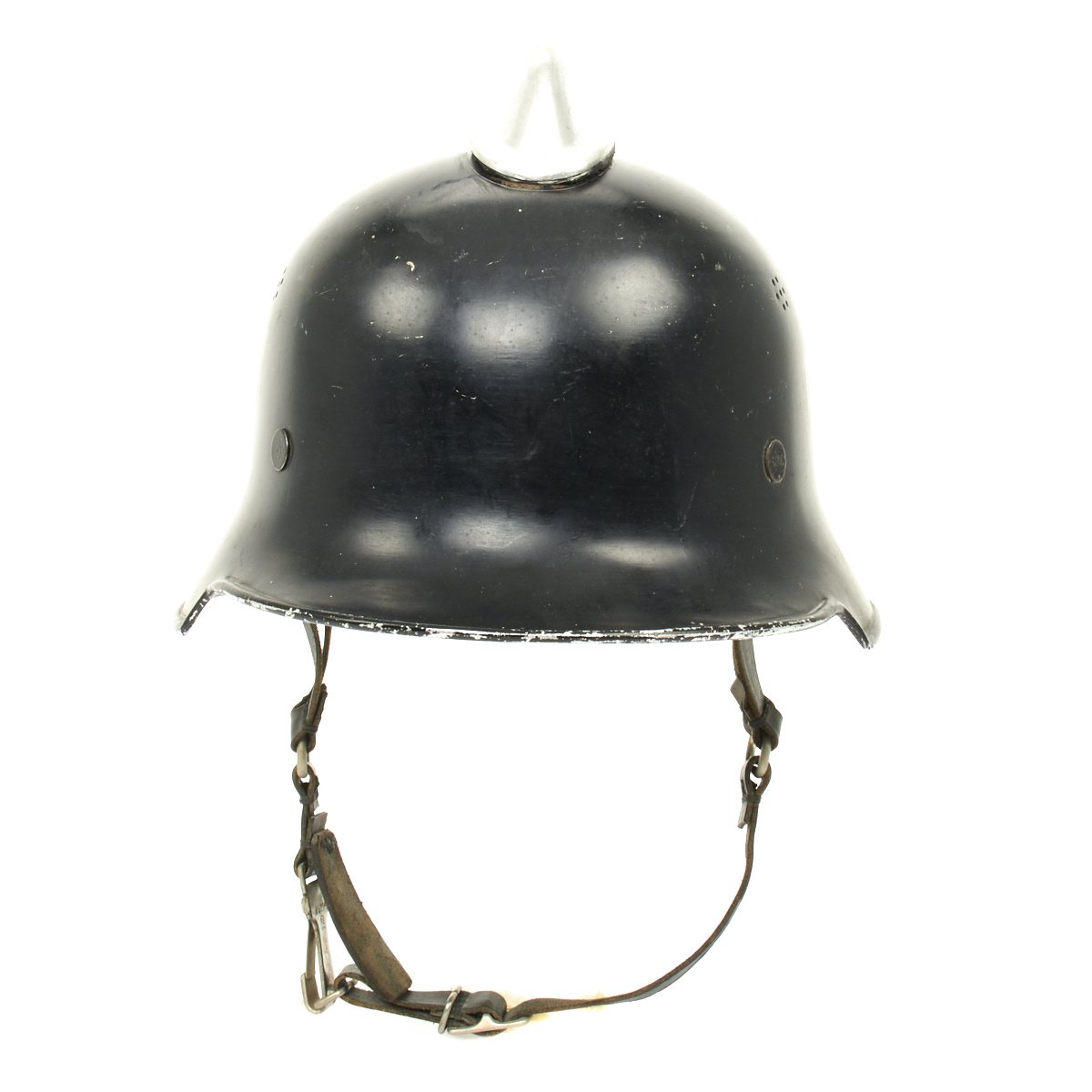 In 1929 a light-weight plastic fiber (Vulkanfiber) helmet was prototyped for general use by all fire-fighting units. The first models were issued in 1932 and proved unworthy of further consideration. As a result a second prototype was explored using light-weight steel alloy known as "Edelstahl." During this time leather fire-fighting helmets were slowly replaced with a combination of surplus World War I model steel helmets and privately manufactured versions in the “Austrian” pattern shell. These early helmets were generally painted black although some were left in their original field-gray World War I color.