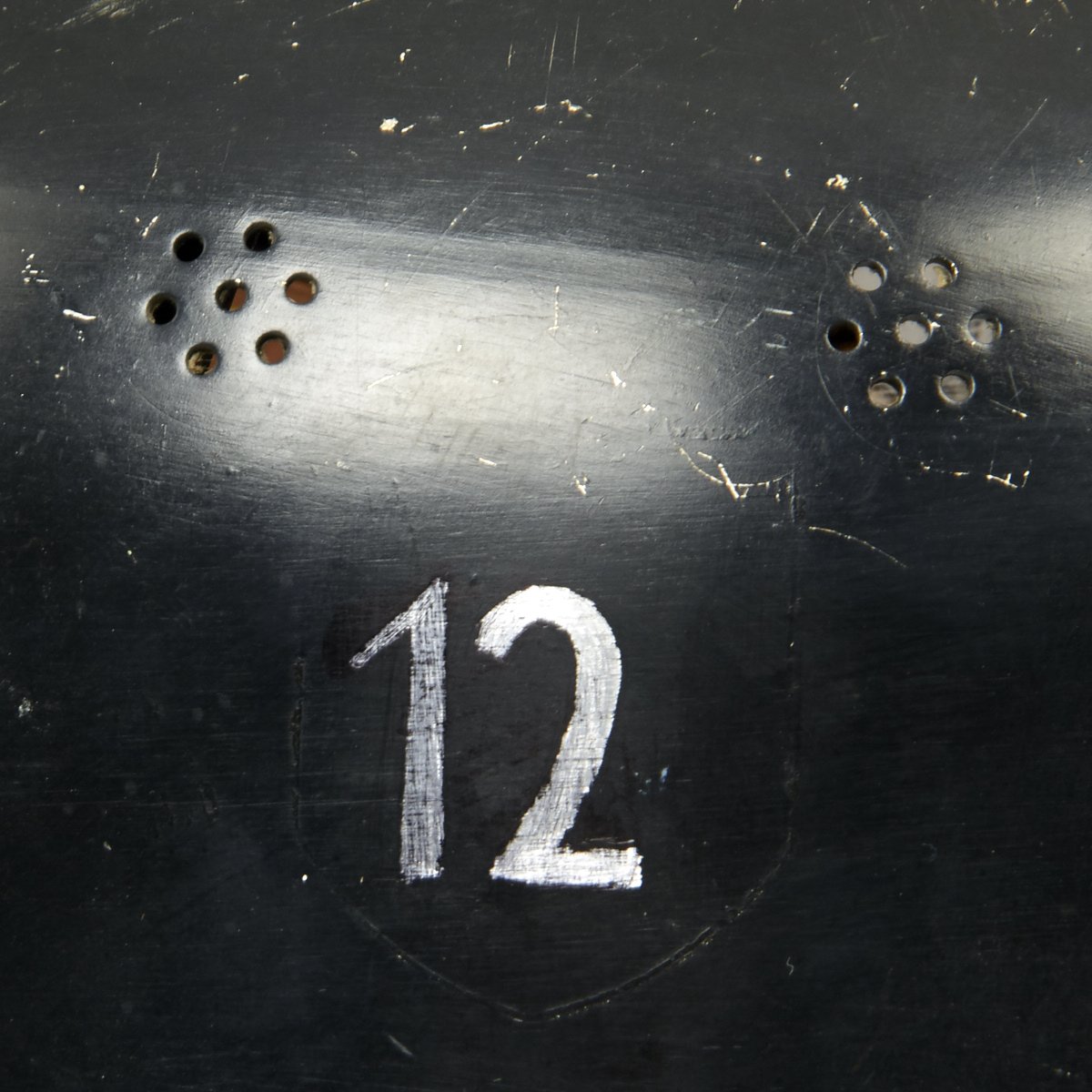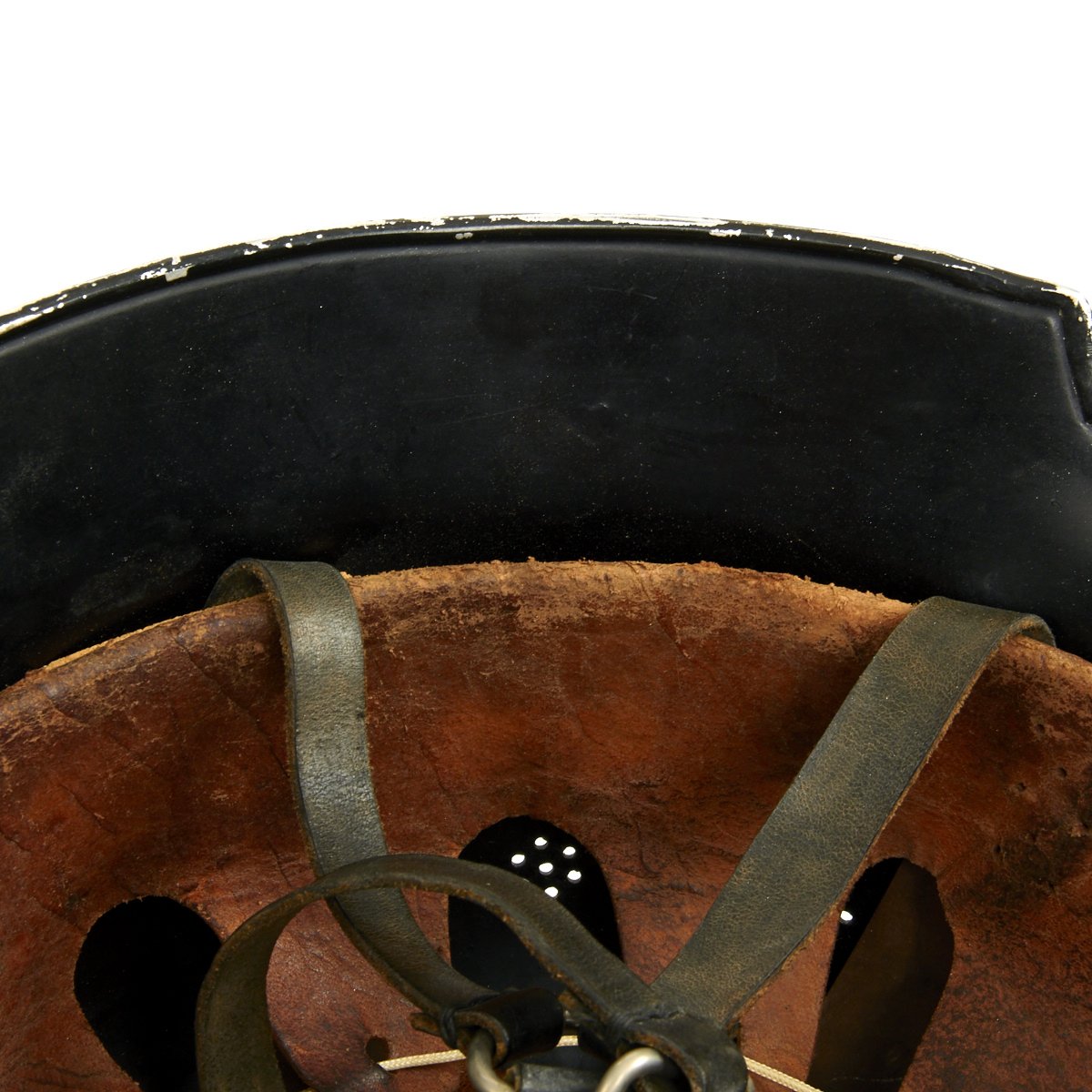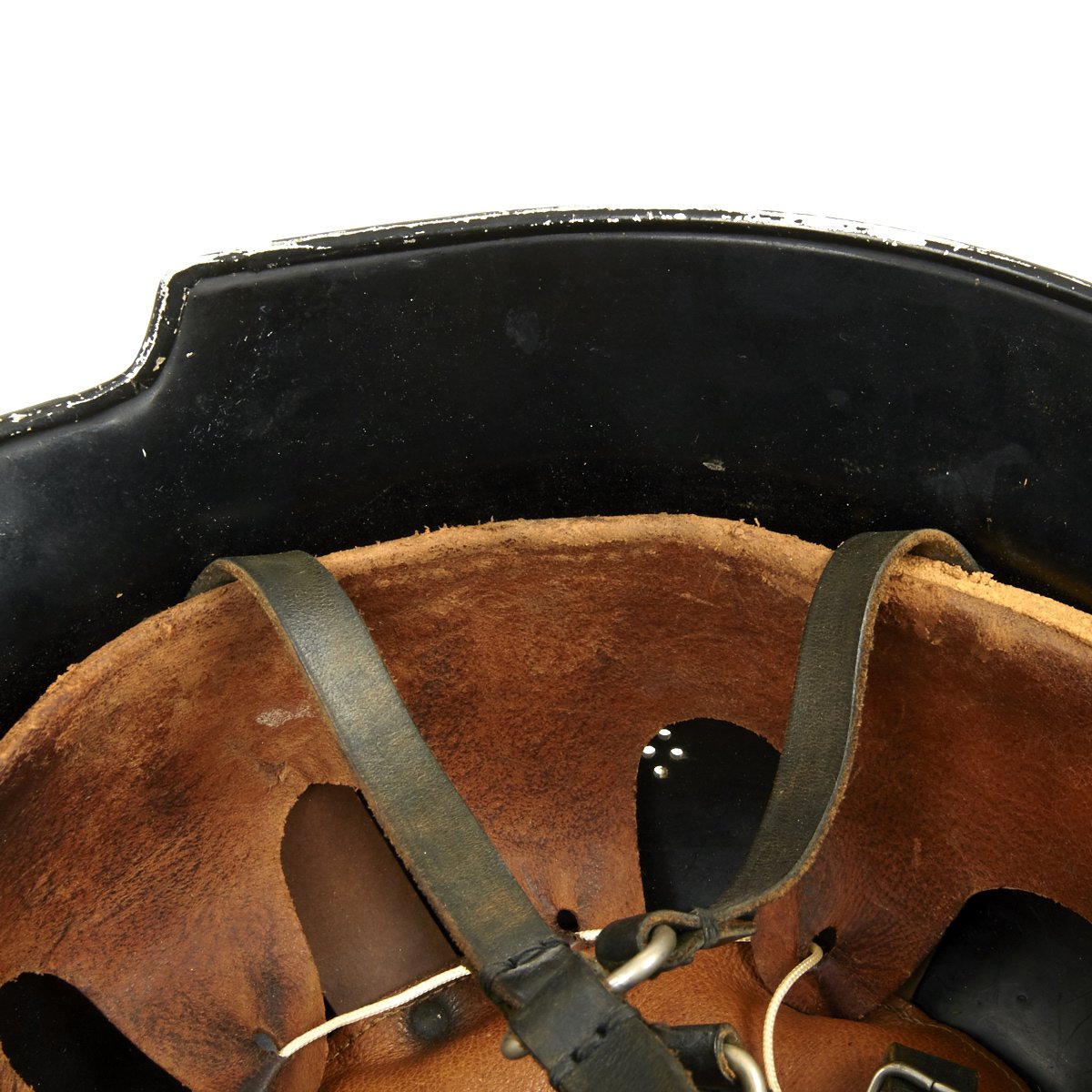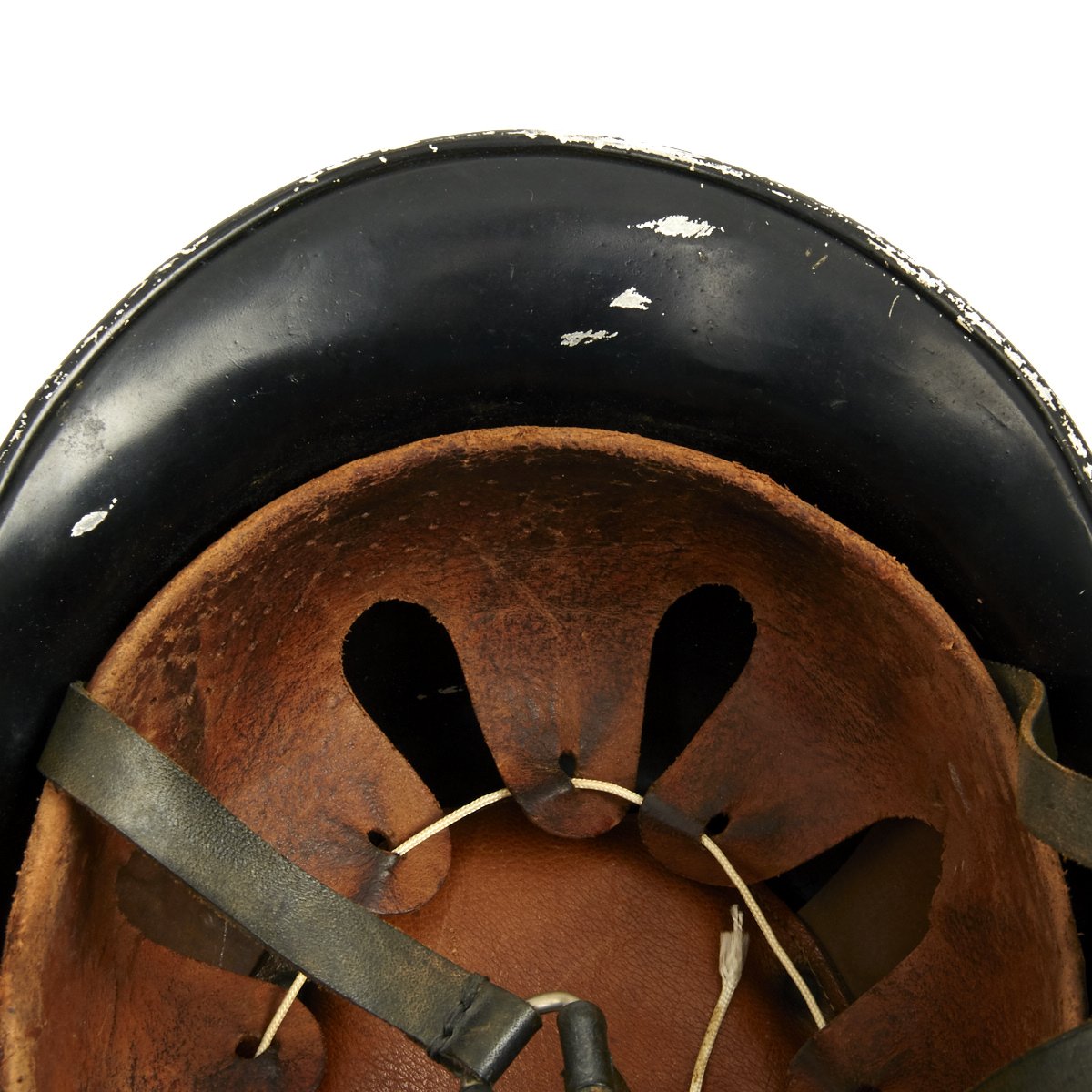 Original Item: Only One Available. This is a very nice example of the early “square dip” M1934 helmet with aluminum comb, made by BXF. It is complete except for the left decal, which has been removed and a number 12 scratched into the paint. The chinstrap is complete, with the original clasp. Overall condition of the shell is near excellent while the leather liner is in very good condition. A very nice example of a difficult to find early variation of the German WW2 Feuerwehr Helmet.