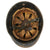 In 1934 the light-weight steel alloy prototype helmet was approved for general use by all fire-fighting units. This helmet is designated the “M1934” by modern collectors because of the year of its introduction. Several different versions of the M1934 helmet exist with many variations resulting from subtle differences in the air vents or visors. The M1934 helmet was painted semi-gloss black inside and out with two insignia placed one on each side.