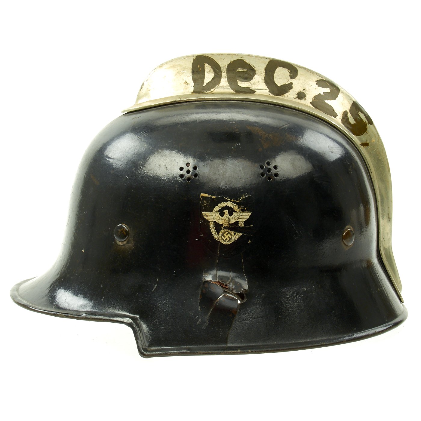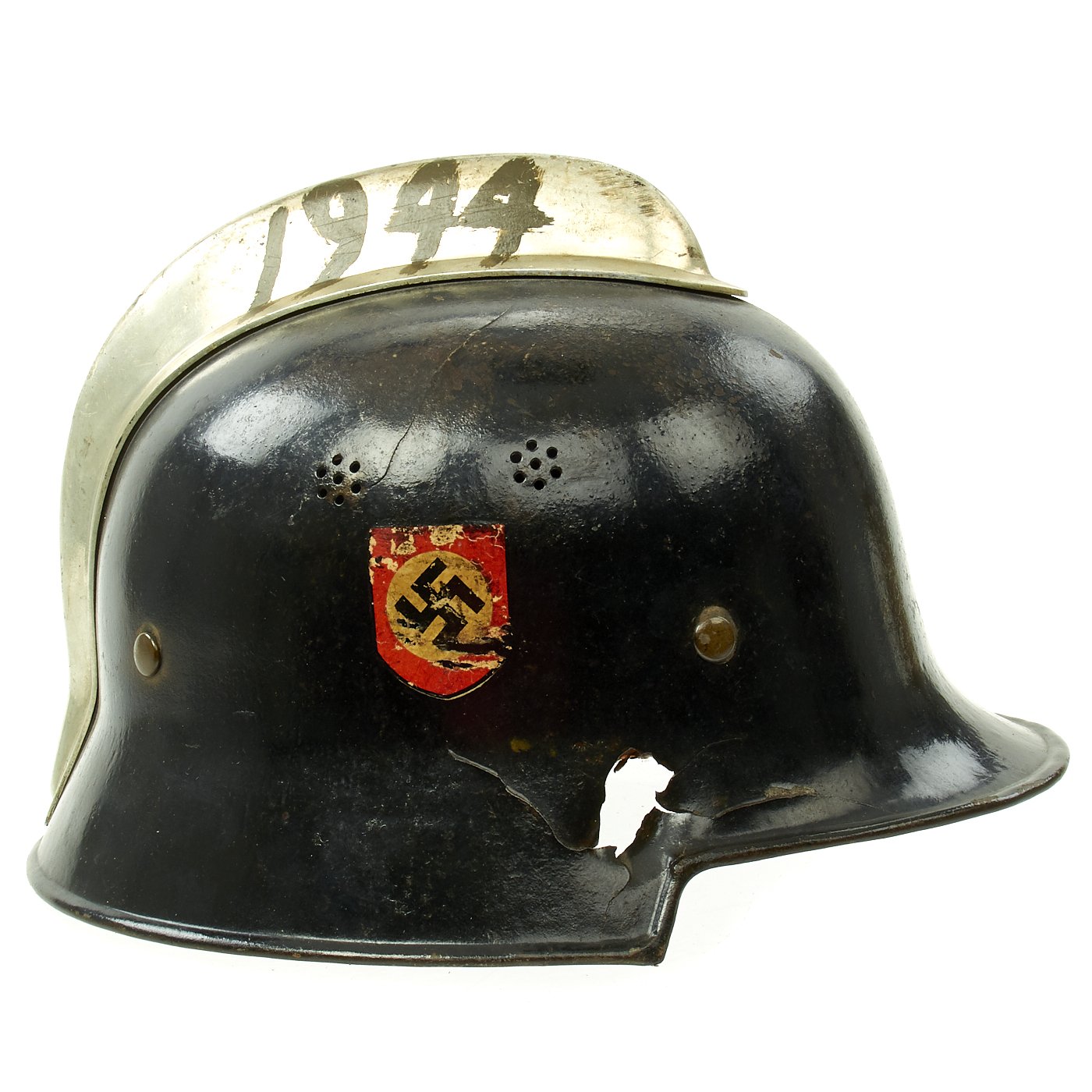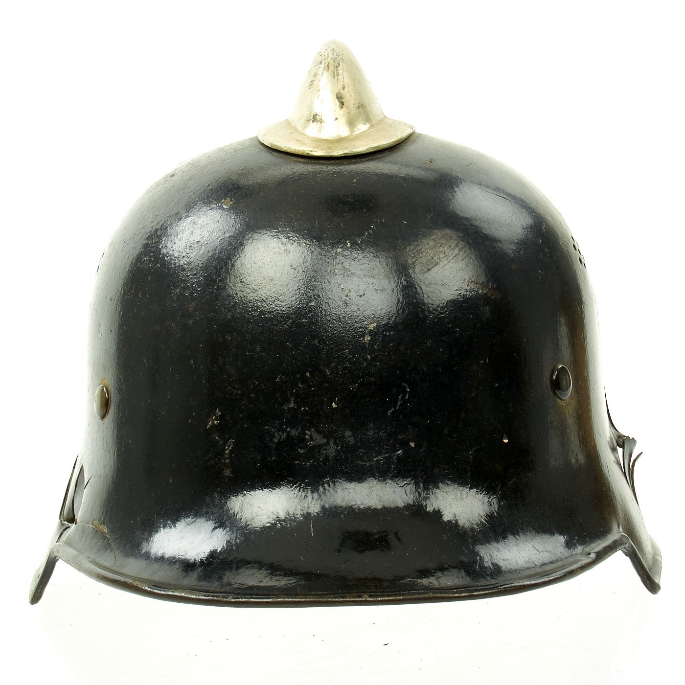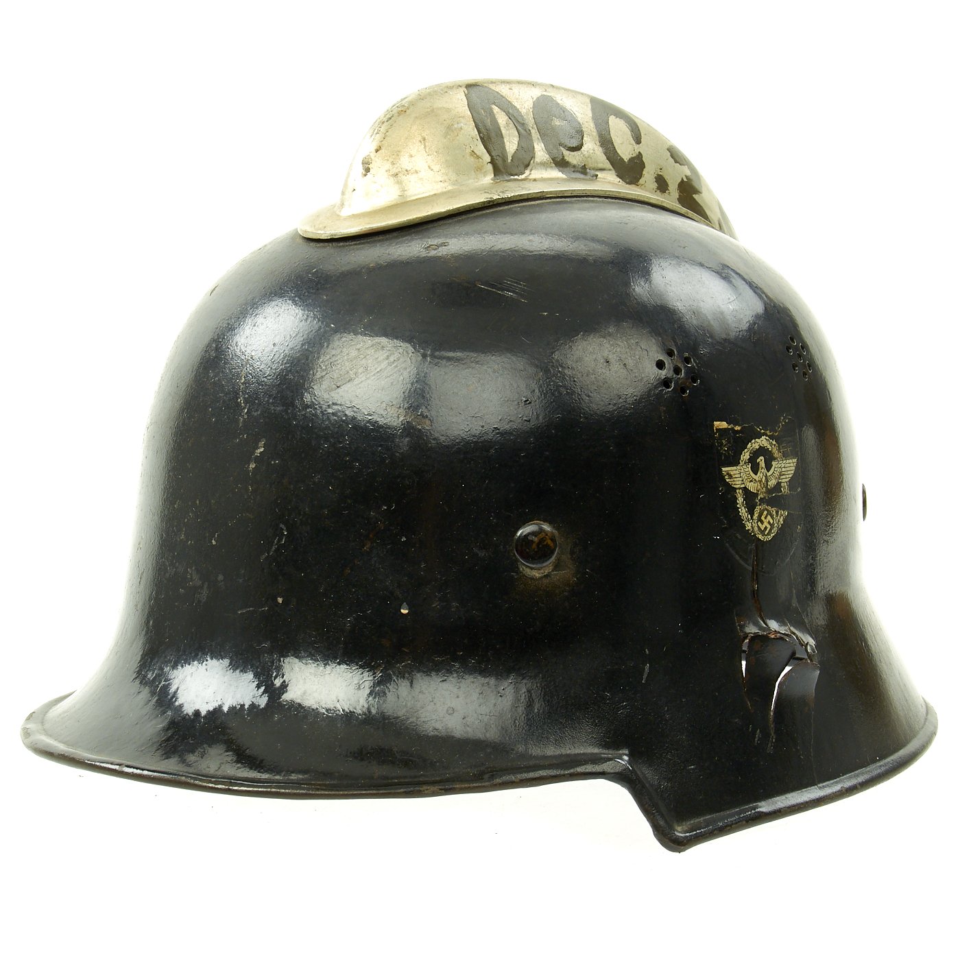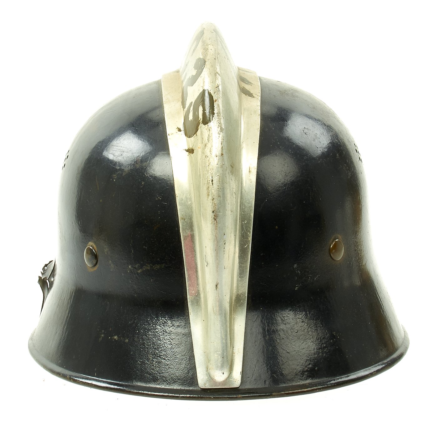 In 1929 a light-weight plastic fiber (Vulkanfiber) helmet was prototyped for general use by all fire-fighting units. The first models were issued in 1932 and proved unworthy of further consideration. As a result a second prototype was explored using light-weight steel alloy known as "Edelstahl." During this time leather fire-fighting helmets were slowly replaced with a combination of surplus World War I model steel helmets and privately manufactured versions in the “Austrian” pattern shell. These early helmets were generally painted black although some were left in their original field-gray World War I color.