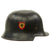 Original Item: Only One Available. This is a very nice genuine steel construction M34 Civic "Square Dip" Third Reich helmet, outfitted for German WW2 Schutzpolizei (Protection Police) issue. It features genuine double decals of Civic Police Reichsadler (National Eagle) and NSDAP swas. These helmets were used by both the regular protection police, as well as the fire protection police. This example has the holes the mounting of the aluminum comb, but we see no evidence that one was ever installed.