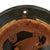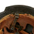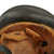The exterior of this German helmet retains almost all of the original black paint, with some small chips and scratches, and overall wear and speckling. There are also a few dents on the upper left side of the helmet. The NSDAP and civic eagle decals are both very well retained, with light overall wear and yellowing due to age. They still have a lovely look consistent with the age of this helmet.