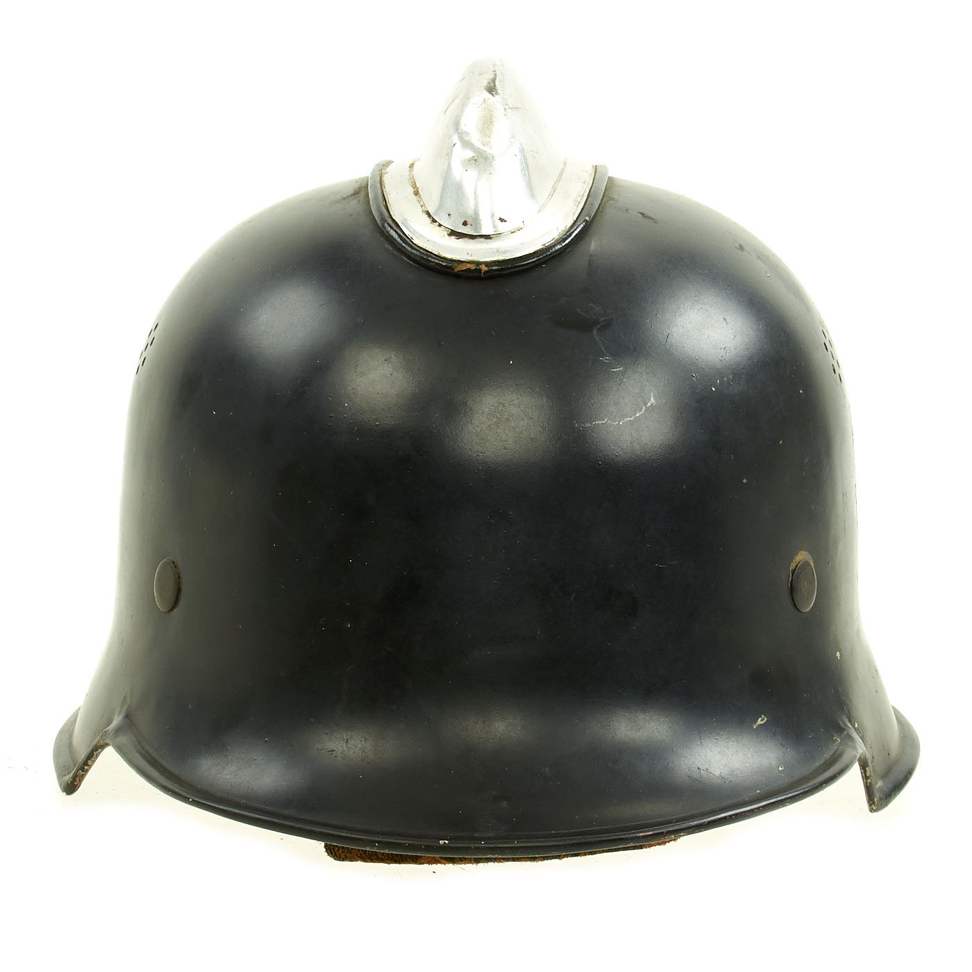 In 1929 a light-weight plastic fiber (Vulkanfiber) helmet was prototyped for general use by all fire-fighting units. The first models were issued in 1932 and proved unworthy of further consideration. As a result a second prototype was explored using light-weight steel alloy known as "Edelstahl." During this time leather fire-fighting helmets were slowly replaced with a combination of surplus World War I model steel helmets and privately manufactured versions in the “Austrian” pattern shell. These early helmets were generally painted black although some were left in their original field-gray World War I color.