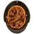 The exterior of this German helmet retains most of the original black paint, with some chips and scratches on the top and around the edge, which show the aluminum material. The NSDAP Party Shield and the NSDAP Civic Police Eagle decals are both retained at about 80%, with some chipping and scratches from service. Both have had the enamel layer yellow over the years, giving them a lovely aged look. The rear inside of the helmet shows a clear maker mark, which reads: