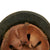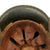 The exterior of this German helmet retains about 85% of the original black paint, with some areas where the red primer shows. The NSDAP decal is about 95% complete, however the civic eagle decal unfortunately has fared worse, and is only about 75% complete. There is also some type of markings stamped into the shell inside the rear skirt, but they are light so we cannot determine what they say.