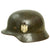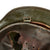 The left side of the helmet features a worn Heer eagle decal, which is retained about 75%, but does have wear through the top enamel layer, and also some chips. This has eroded the layer with the black pigment, so it's a bit faded, but has a patina that is impossible to duplicate. The use of the second decal had been discontinued in 1940, and in 1943 it was ordered that helmets with the national colors have them removed. It is very possible that this helmet originally had two decals, and then the second was removed. There are areas of rust speckling on areas of shell, inside and out. This is a very nice example of the M35 helmet, with a great service worn look that is impossible to duplicate.