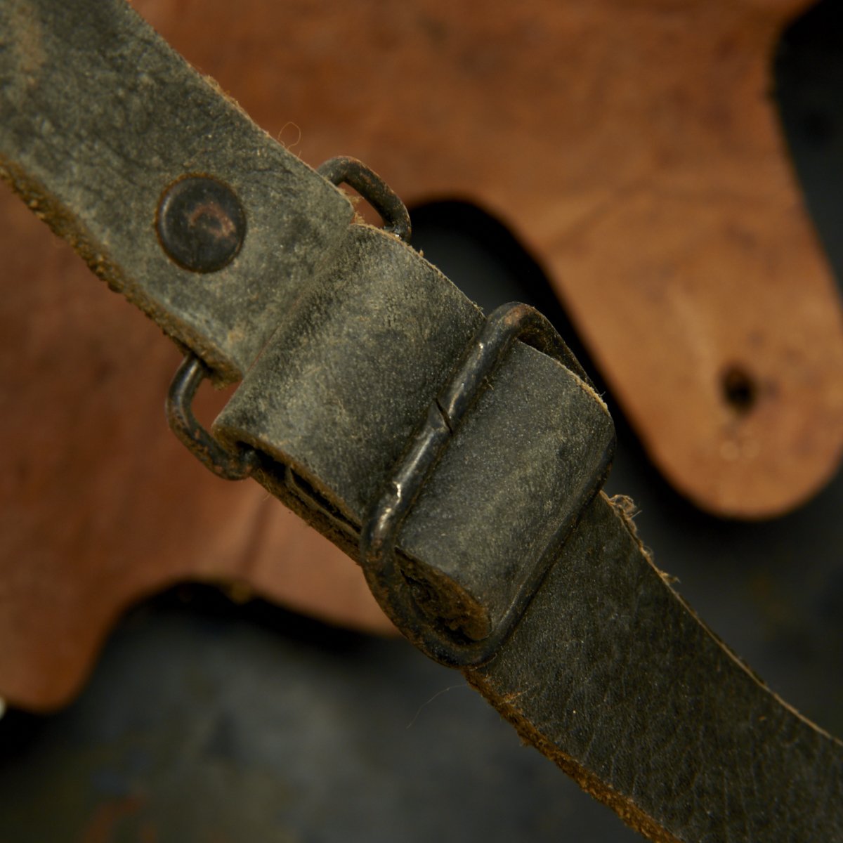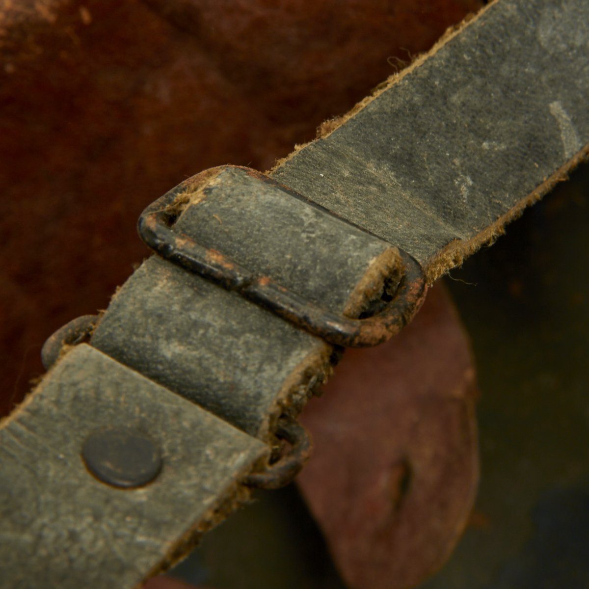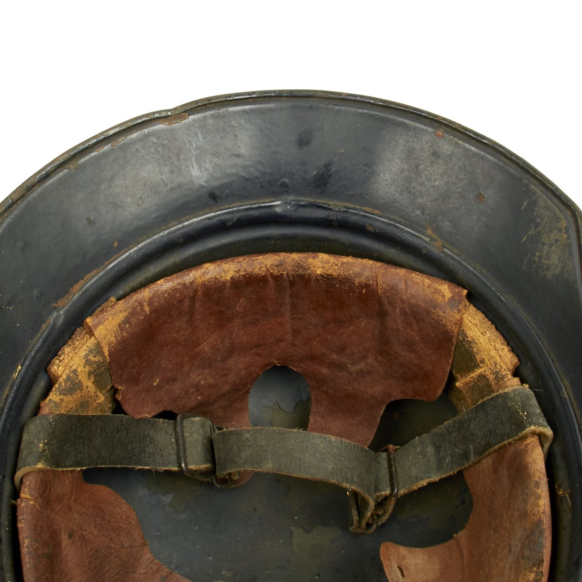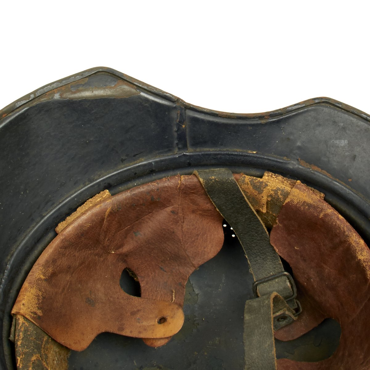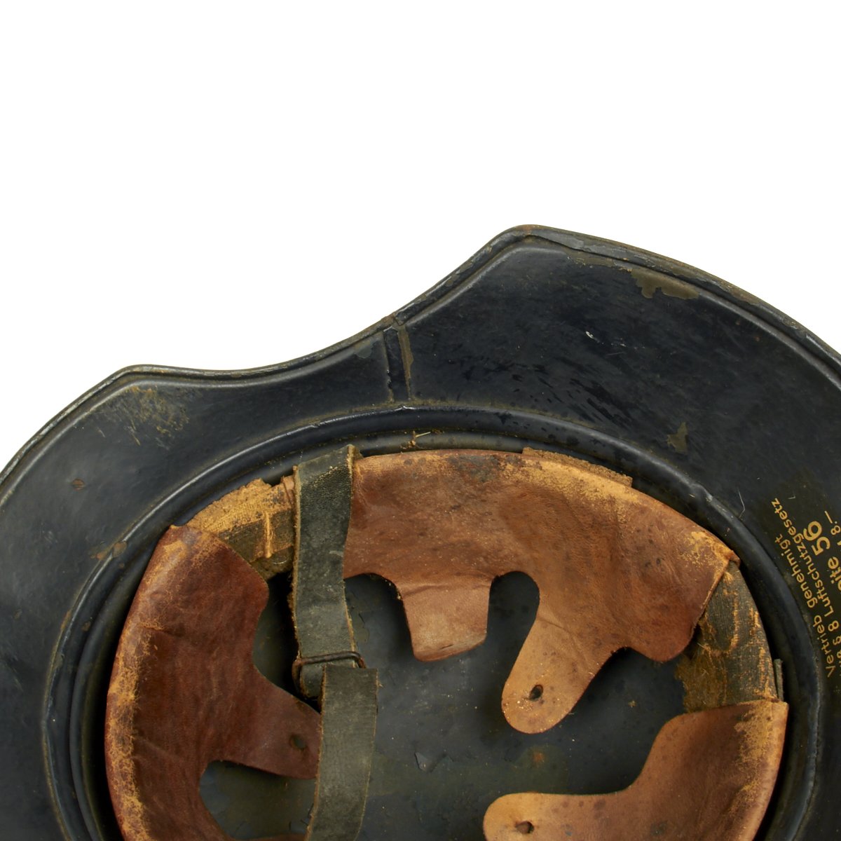 Liner is complete and good condition, though somewhat fragile due to age. The liner top securing strap is not present. The chin strap is in excellent condition.