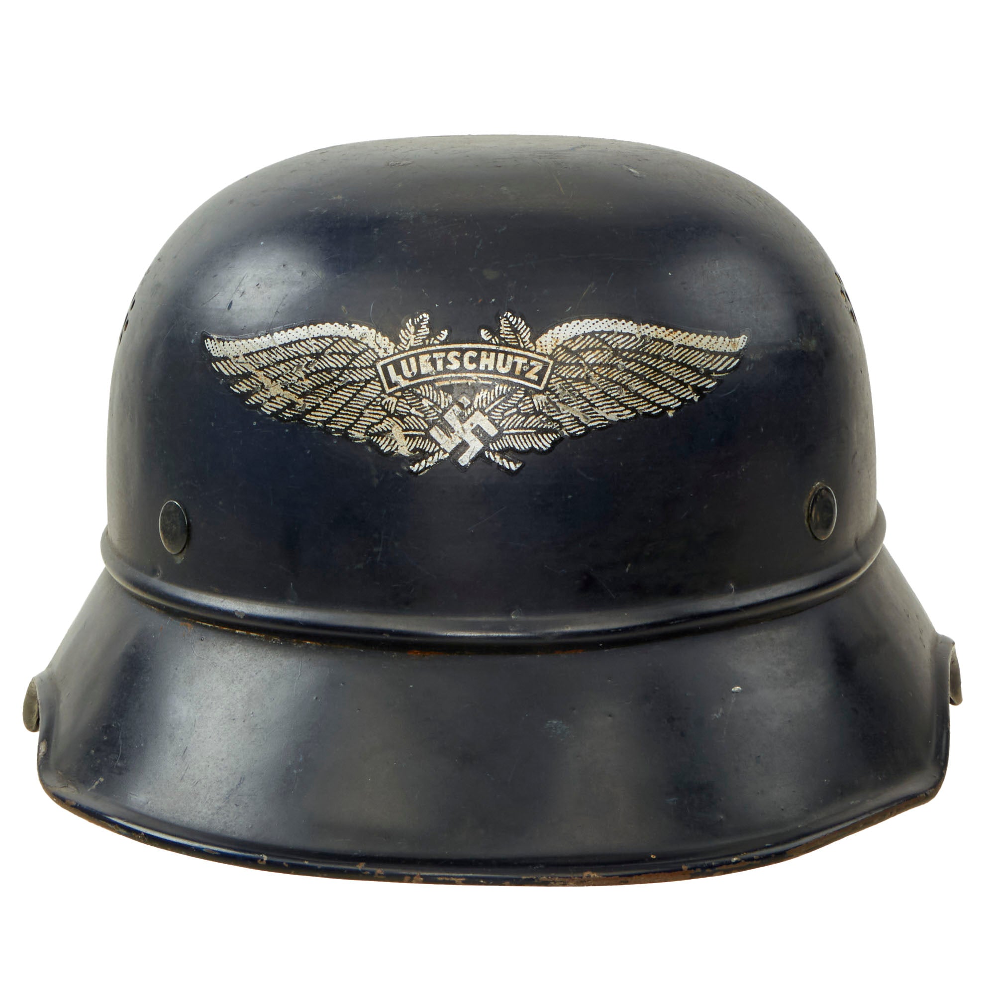 Formed in late 1932 the Deutsches Luftschutzverband, (German Air Protection League), was a voluntary organization designed to provide civil air raid protection in large civilian centers. Shortly after AH ascension to power the Deutsches Luftschutzverband was restructured and placed under the supervision of the Reichsluftfahrtministerium, (National Air Ministry), under the control of Hermann Göring. On April 29TH 1933 the Deutsches Luftschutzverband was renamed RLB, Reichs Luftschutz Bund, (National Air Raid Protection League) and was given status as an official national organization tasked with all aspects of civil air raid defense. The RLB remained a voluntary organization with a small cadre of paid, full-time uniformed officials to oversee the organization's functions until June 1935 when obligatory service was introduced. Only the most basic uniform and equipment items were supplied to the cadre personnel, with the rest having to be bought personally by members. On September 26TH 1938 a specific helmet for RLB personnel was introduced that incorporated a raised horizontal "bead" between the visors and crown. These helmets commonly called the "Gladiator" style were supplemented with M35, M40 and M42 helmets that also incorporated a raised horizontal "bead" between the visors and crown. The Luftschutz also utilized a variety of captured helmets.