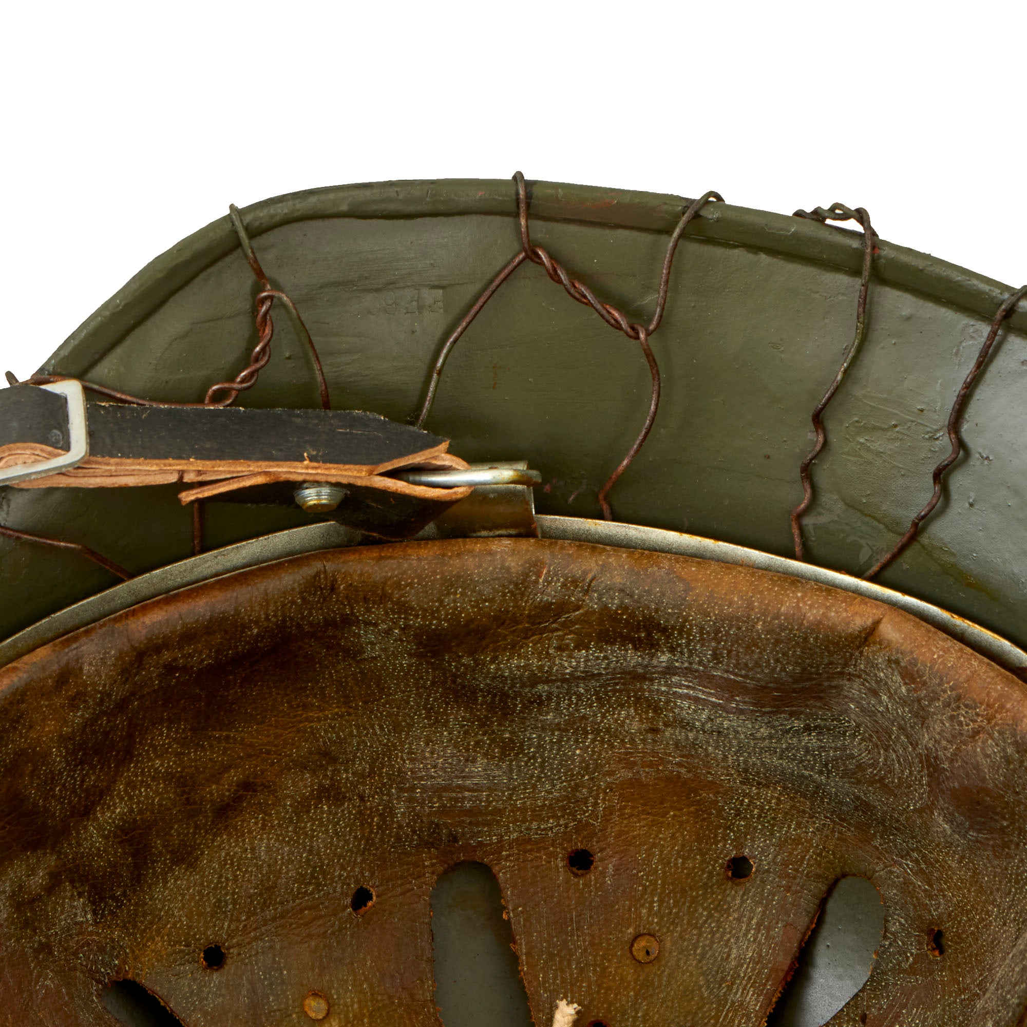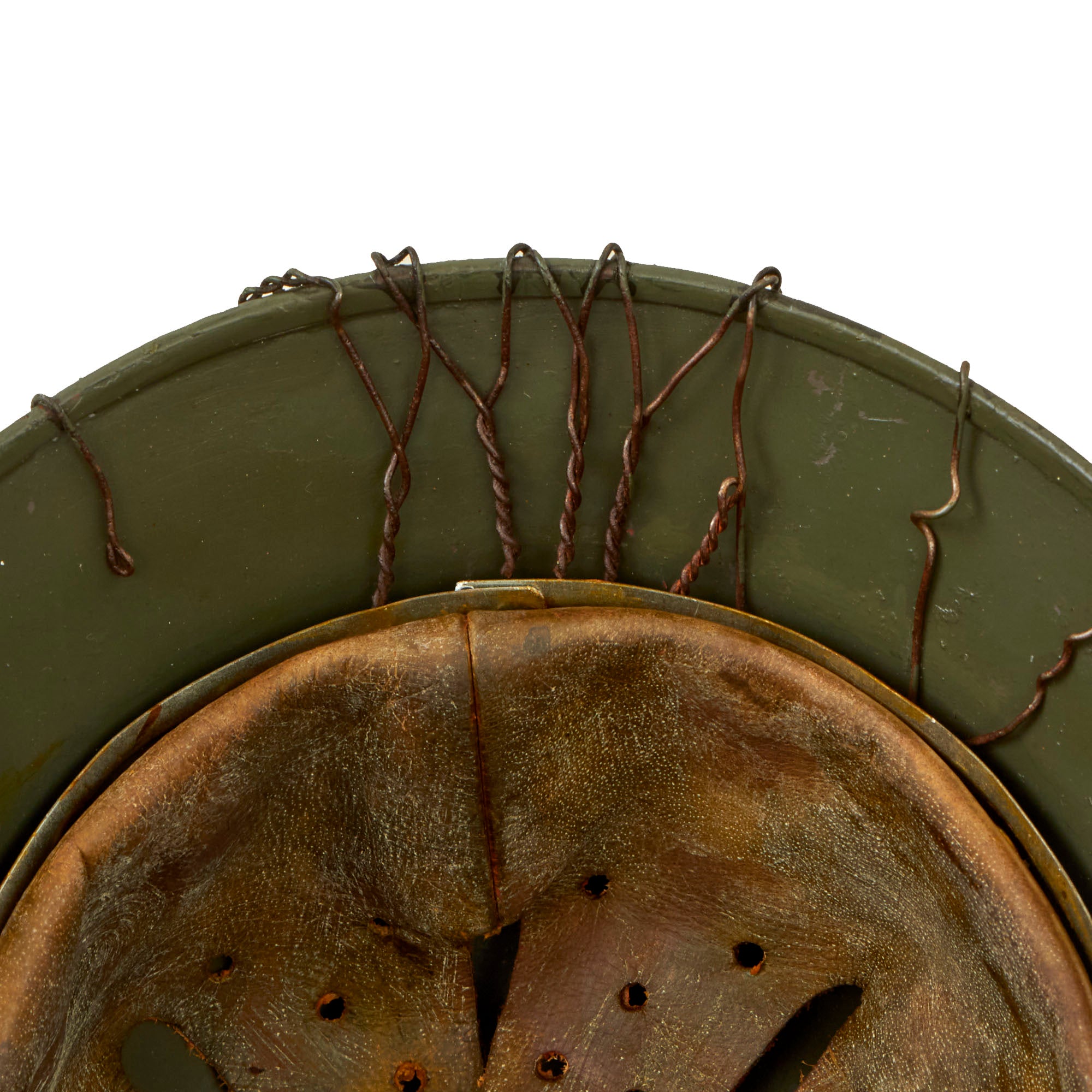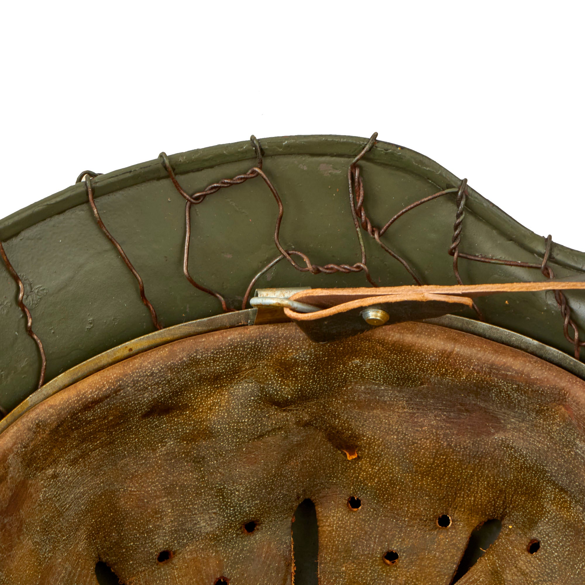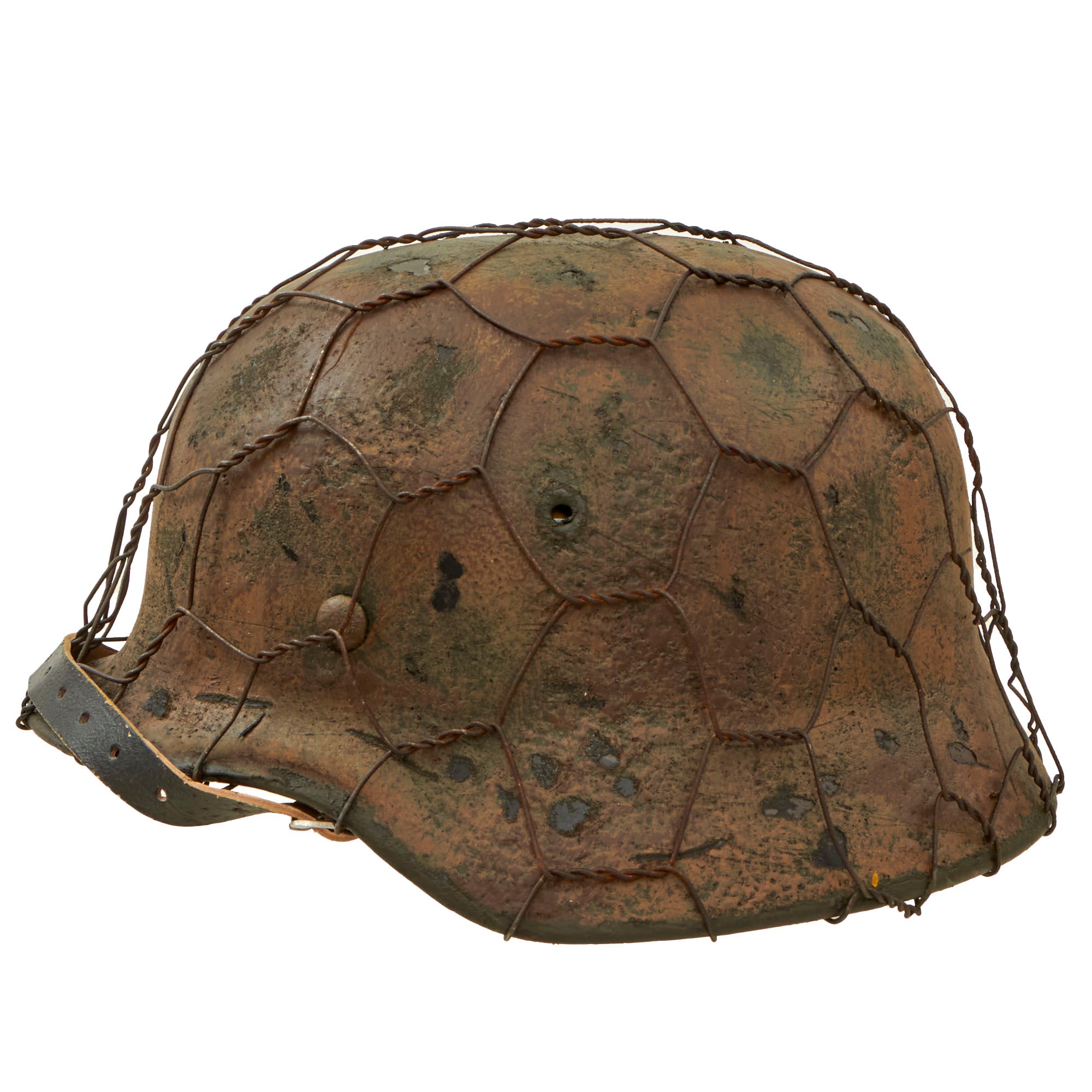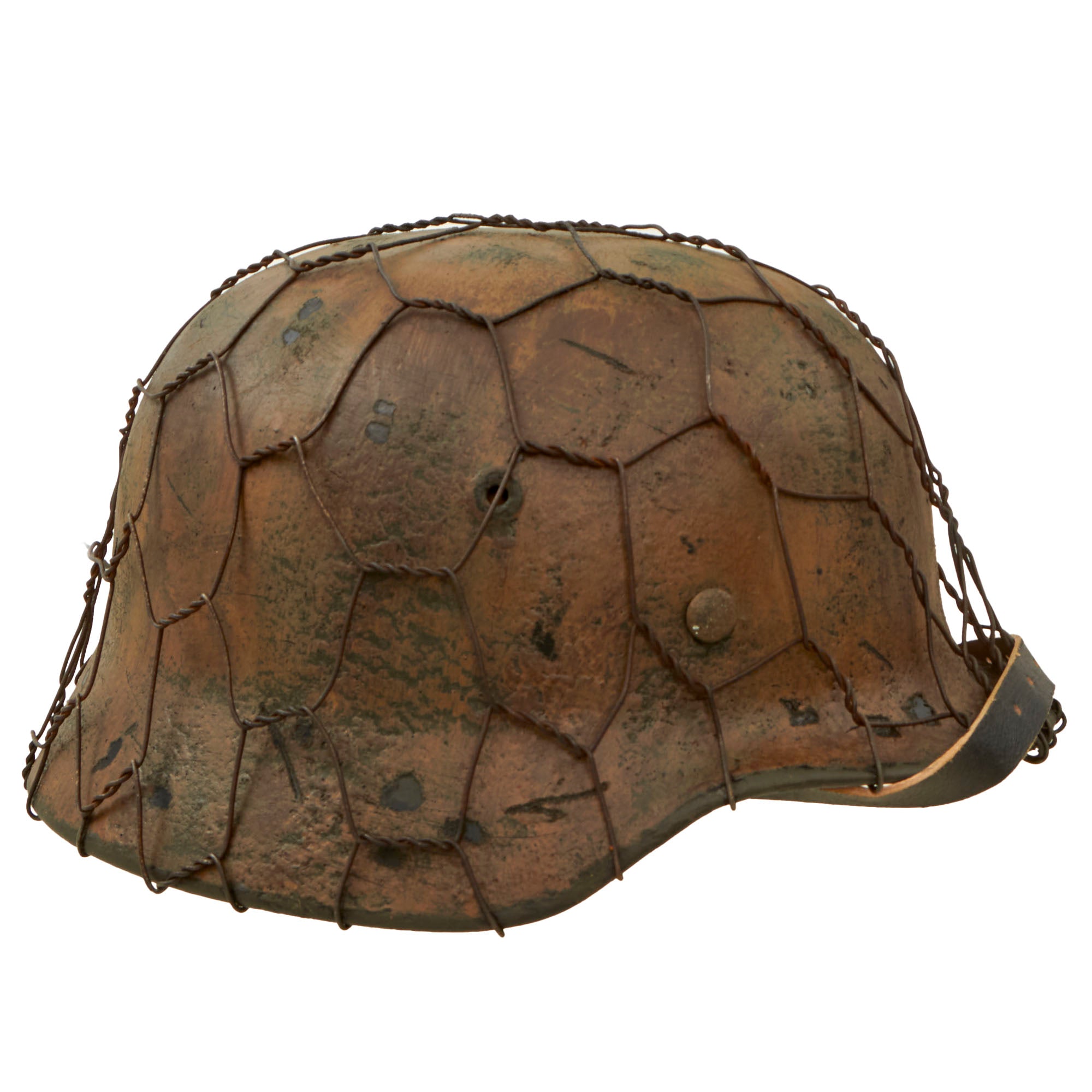 - The chicken wire on this example exactly replicates the same European wire used during much of the war. The twist in the wire varies by country and by time. So many helmets out there use wire that is not correct for the period.
