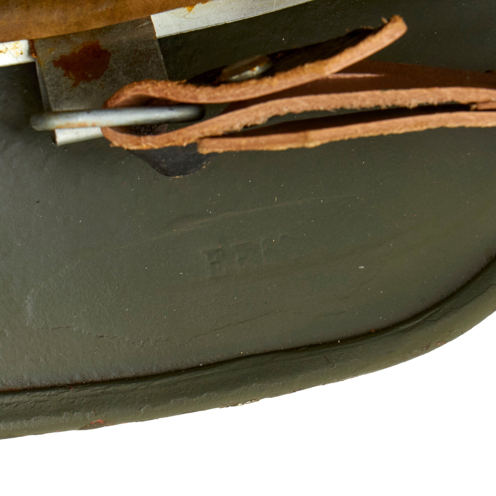 Original Item: One-of-a-kind. This is a fine example of totally original Model M40 M-1940 German WW2 large size 66 helmet shell, refurbished by a master German camouflage restorer. The shell is stamped E.F.66, indicating that Emaillierwerke AG, of Fulda, Germany manufactured it. It is also stamped with lot number 5 under the rear skirt. Size 66 is a nice large size that can accommodate liners from 58cm to 59cm or US 7 1/4 to 7 3/8. Size 66 shells are much harder to find and are therefore more valuable to a collector.