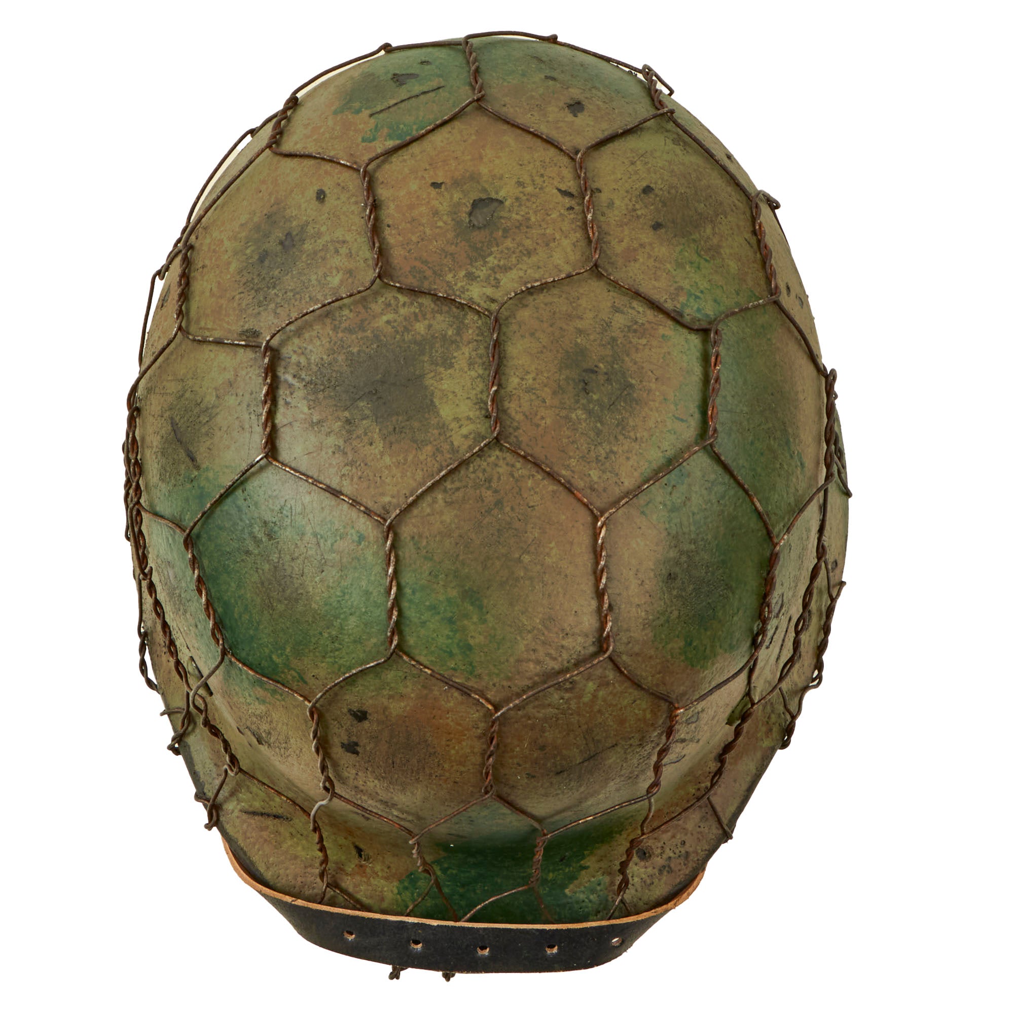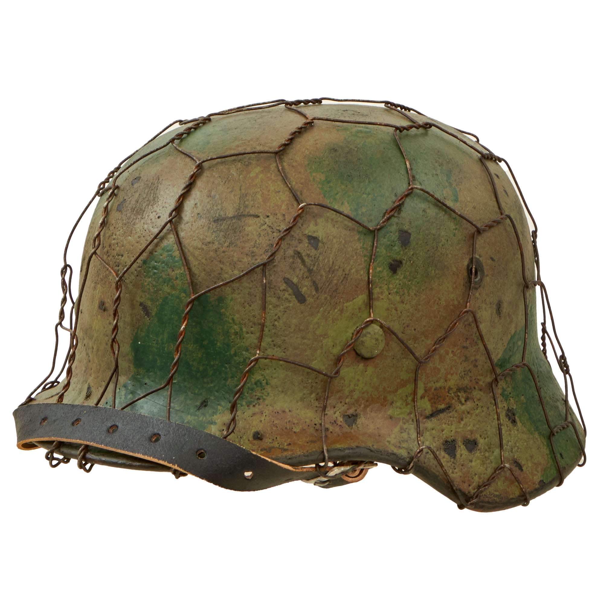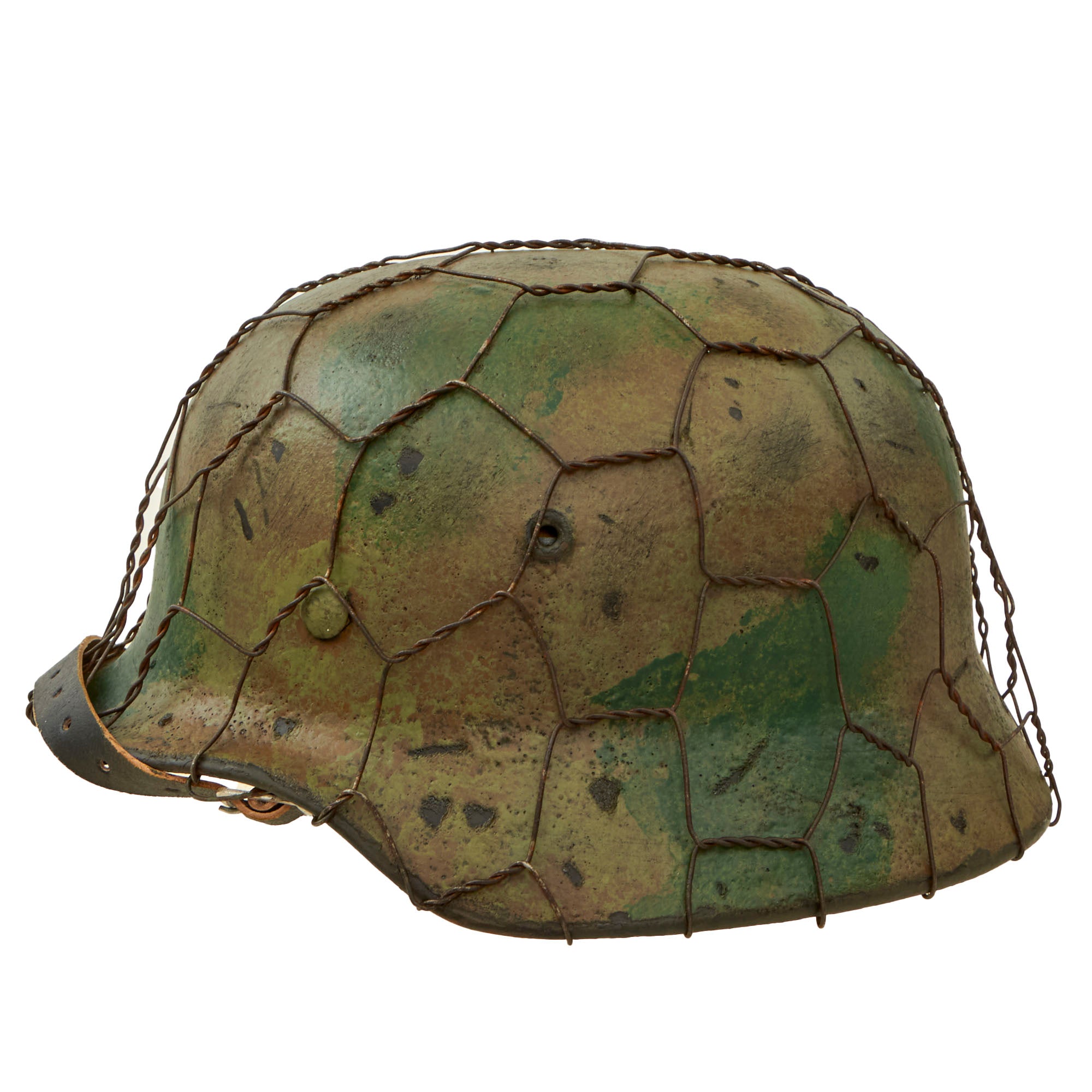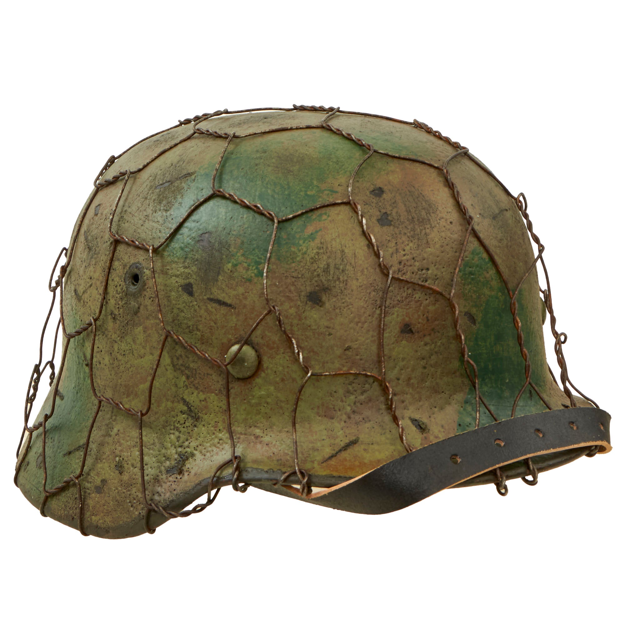 - The chickenwire on this example exactly replicates the same European wire used during much of the war. The twist in the wire varies by country and by time. So many helmets out there use wire that is not correct for the period.