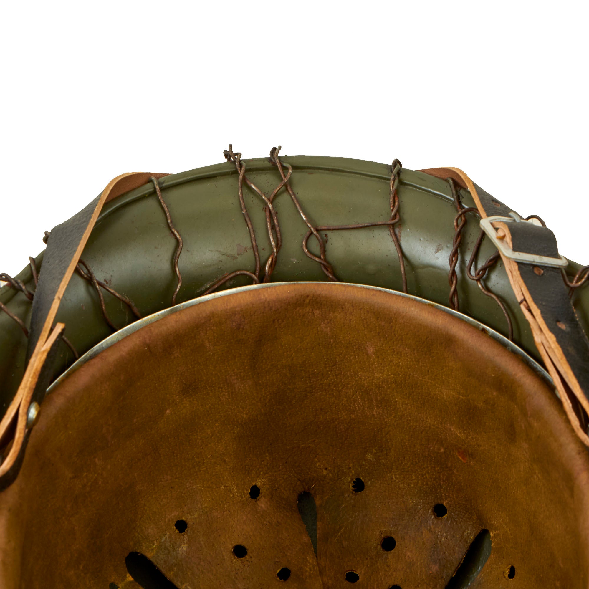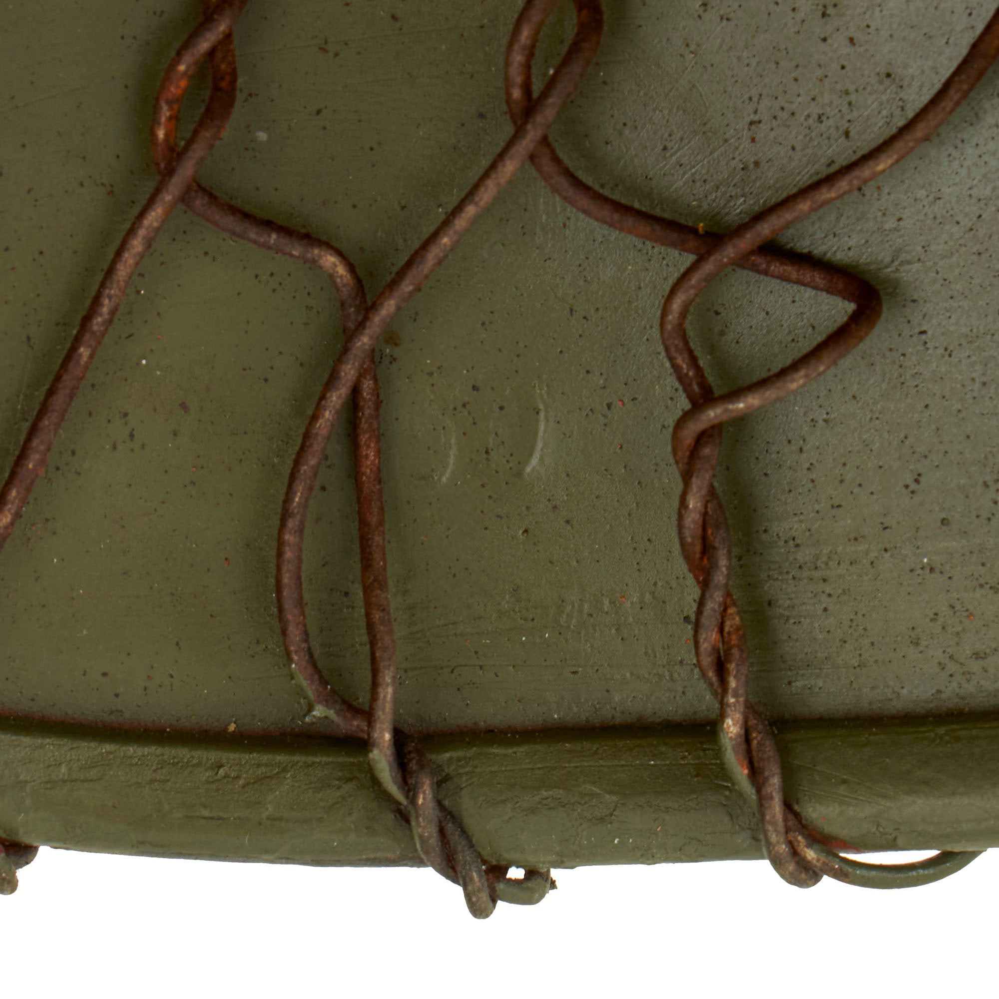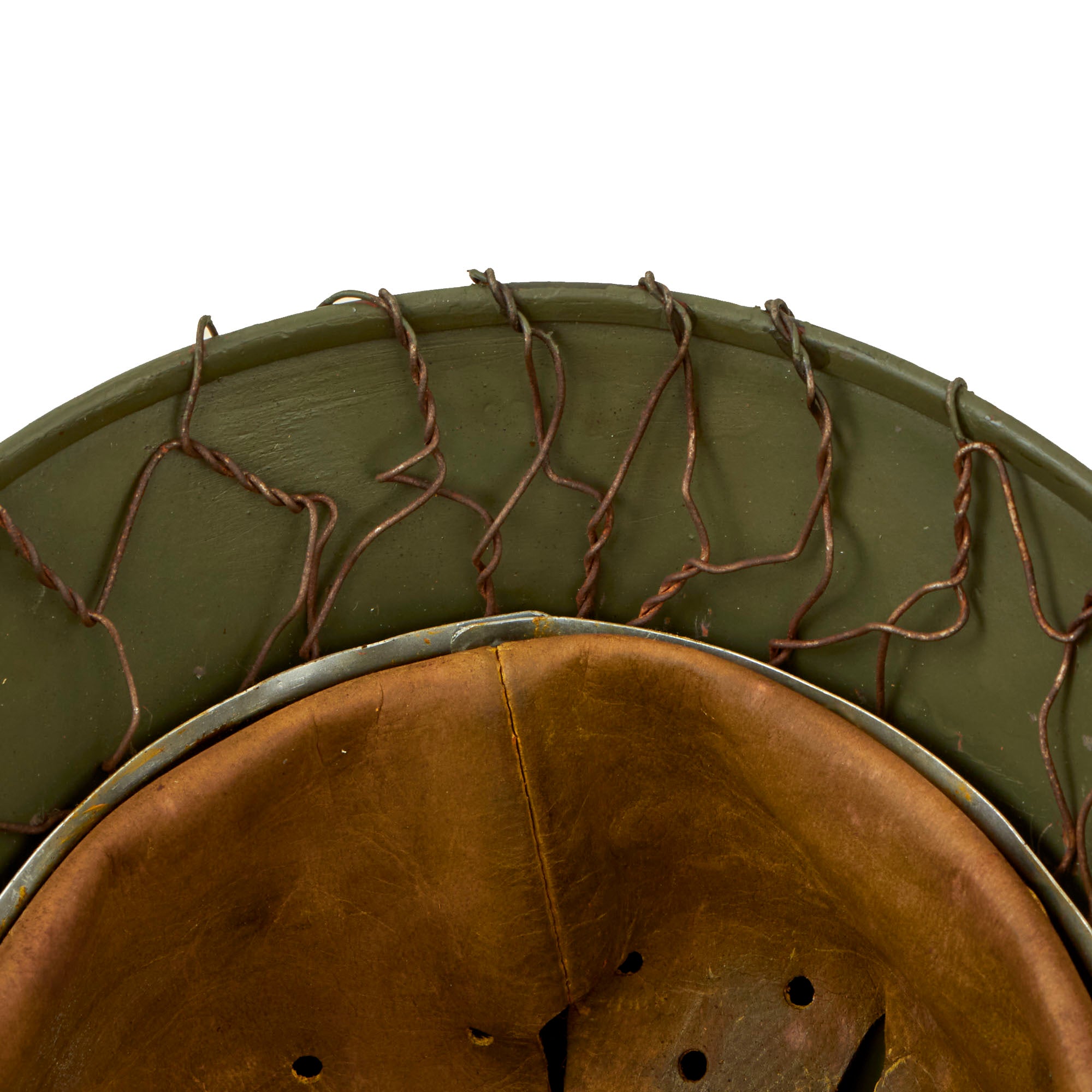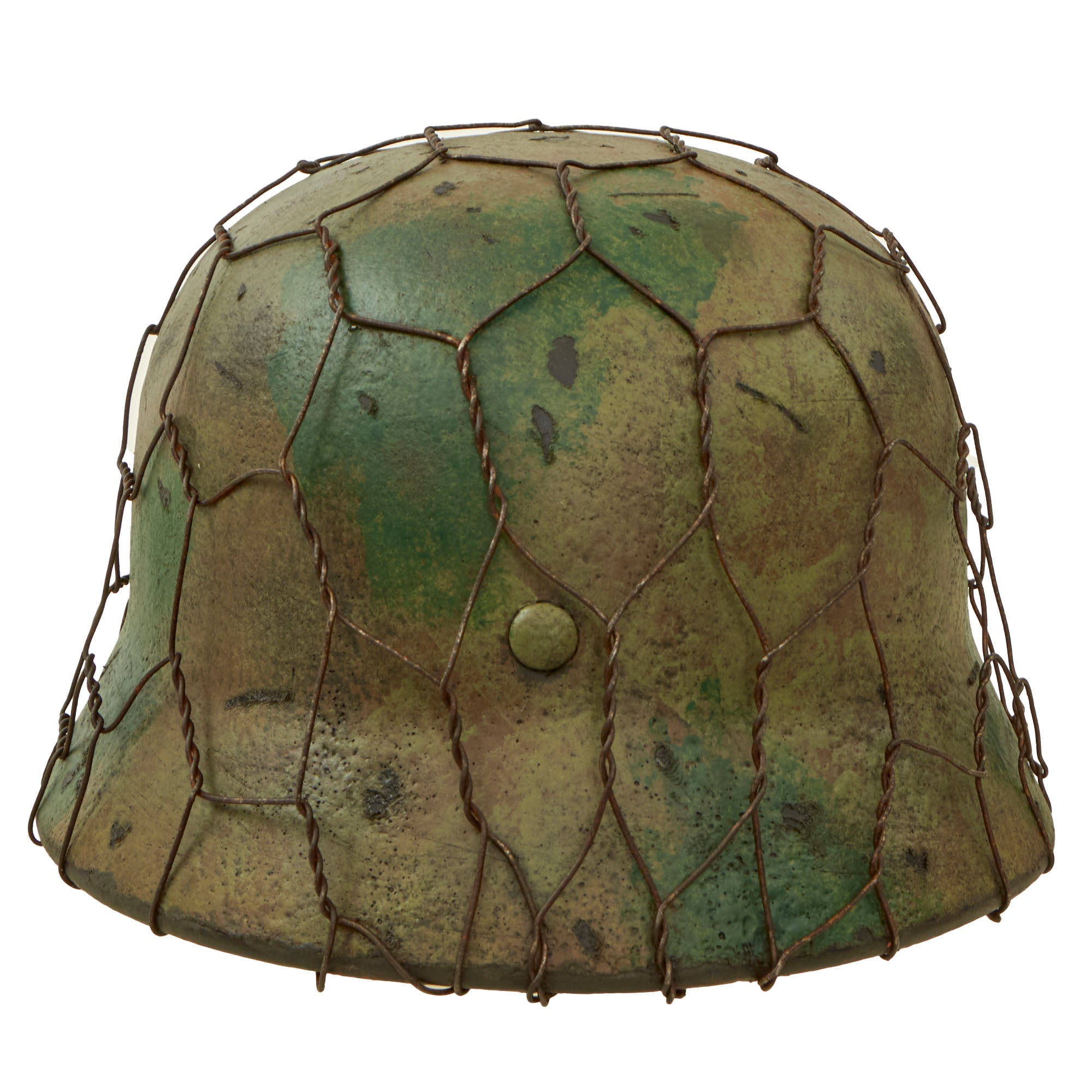 - The chickenwire on this example exactly replicates the same European wire used during much of the war. The twist in the wire varies by country and by time. So many helmets out there use wire that is not correct for the period.