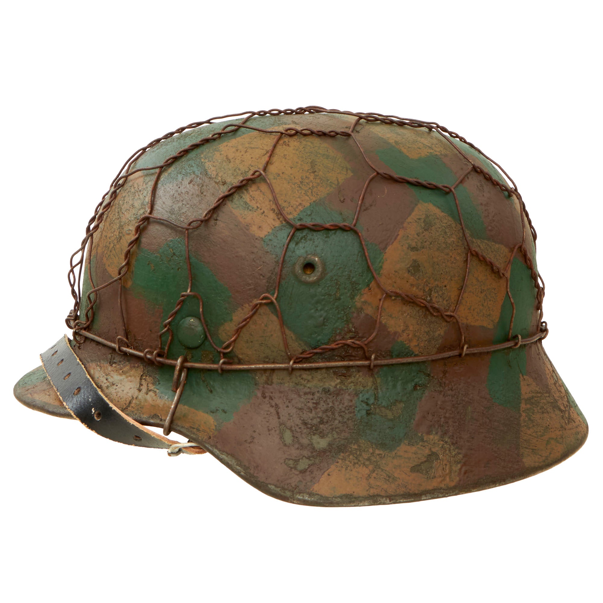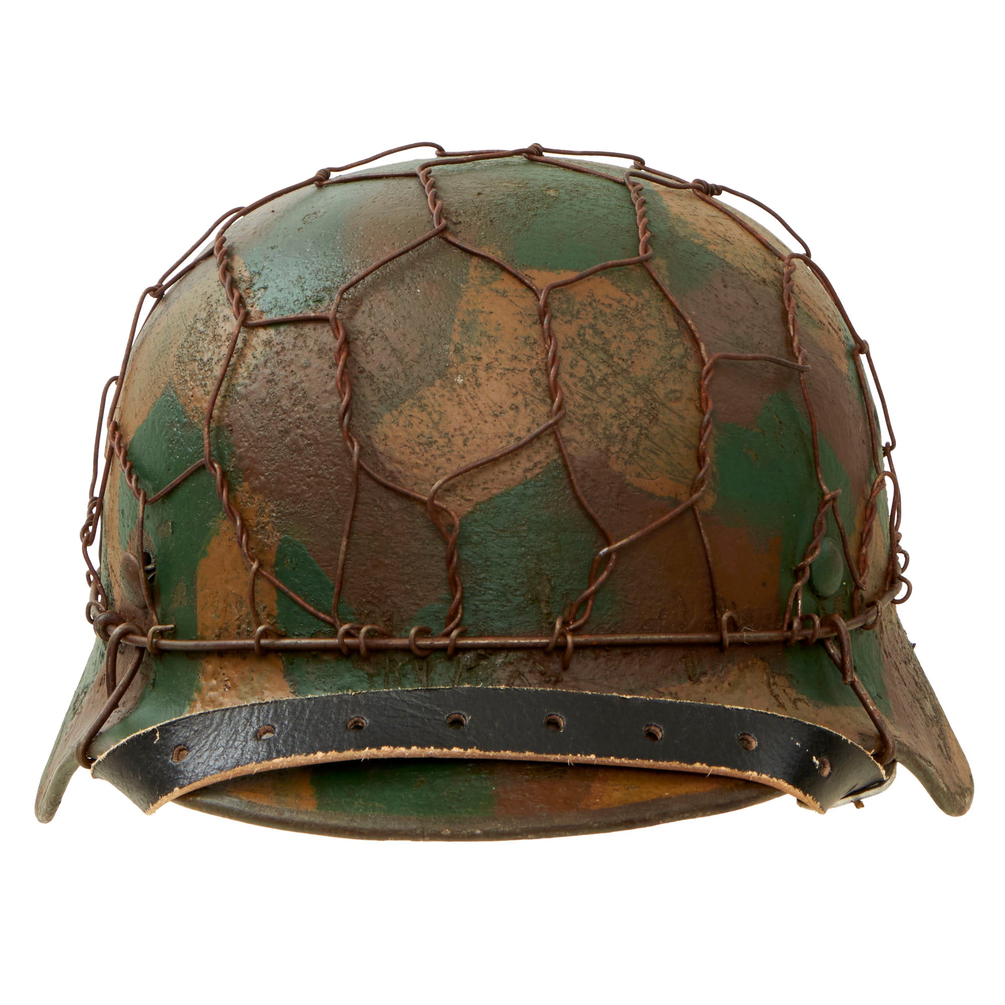 - The chickenwire on this example exactly replicates the same European wire used during much of the war. The twist in the wire varies by country and by time. So many helmets out there use wire that is not correct for the period.