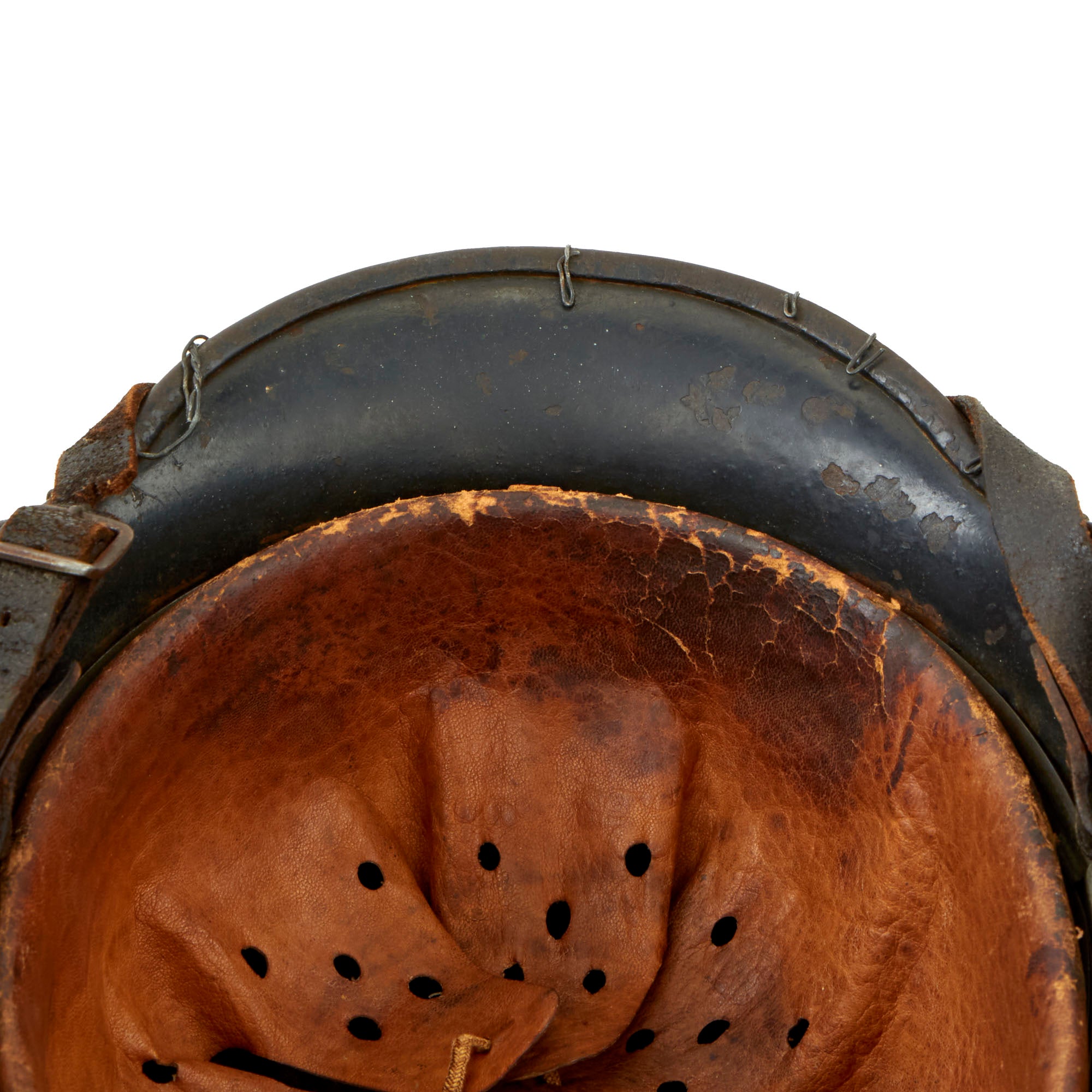 This liner was made by Biedermann & Czarnikow, a German company who later moved operations to Łódź in occupied Poland to take advantage of the slave labor in the ghetto located there. NSDAP authorities renamed Łódź to Litzmannstadt in honor of the German General Karl Litzmann who had captured the city in the previous World War. This is exactly the right period and type of liner for this helmet, and we see no evidence that it was ever changed out.