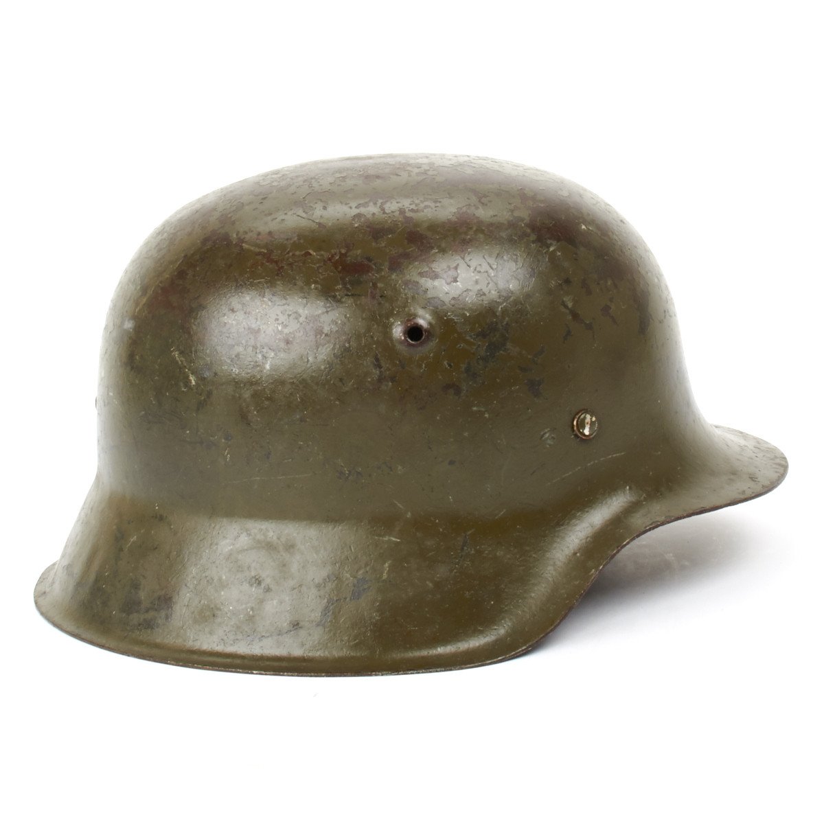 The M1935 design was slightly modified in 1940 to simplify its construction; the manufacturing process now incorporating more automated stamping methods. The principal change was to stamp the ventilator hole mounts directly onto the shell, rather than utilizing separate fittings. In other respects, the M1940 helmet was identical to the M1935. The Germans still referred to the M1940 as the M1935, while the M1940 designation were given by collectors.