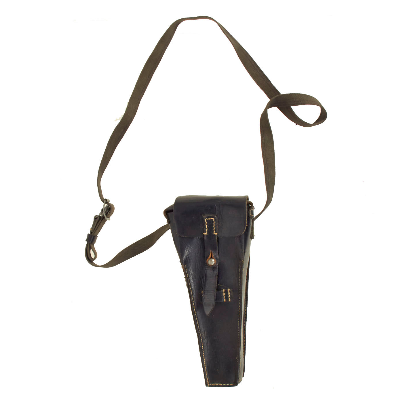 The case has original strap and all internal fittings, with manufacturer code, date and Waffenamt: dkk / 43. This indicates manufacture by leather working firm Friedrich Offermann & Söhne of Bensberg, who made numerous holsters during the war. The condition of the case is very nice, retaining almost all of the finish, with just a bit of wear and age.