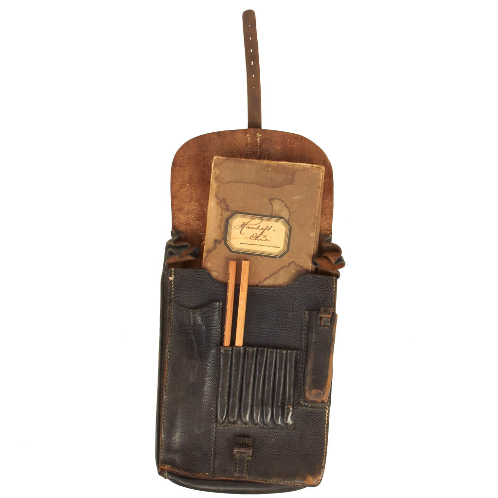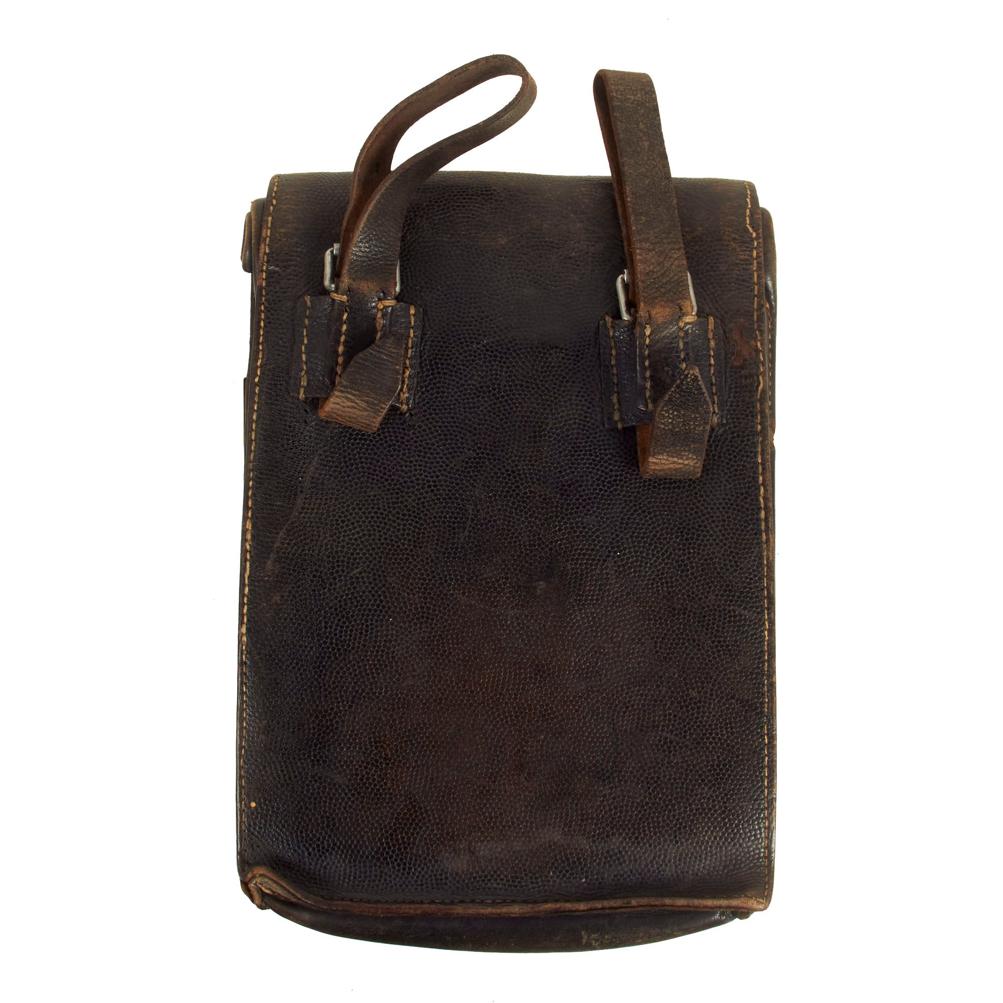 Original Item: Only One Available. Map/dispatch cases were issued on a limited basis to specifically designated personnel such as unit commanders, messengers, and observers. The M35 map/dispatch case was based on the Weimar era, Reichsheer pattern map/dispatch case with minor variations. The M35 map/dispatch case underwent a front closure modification in mid-1936, and an additional small front pocket was added in 1938, although the early pattern cases continued to be manufactured through-out the war. The M35 map/dispatch cases were issued with assorted map reading tools, instruments and accessories.