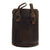 The front of the case features a vertical ruler pocket to the left side, seven central, vertical pencil holders and a small vertical pocket to the right side with an internal quick release pull tab. There are original pencils still present in the respective pouches. When in the closed position the top fold over flap covers the top openings of the ruler, pencil and tool pockets to ensure against losing the items. The reverse of the case has two, machine stitched on, vertical belt loop straps with magnetic sheet metal, and pronged length adjustment roller buckles. The natural tan leather interior of the case has two compartments with a central, blackened, simulated leather separating panel. The interior of the case also has protective panels to both of the top side panels positioned underneath the top fold over flap.