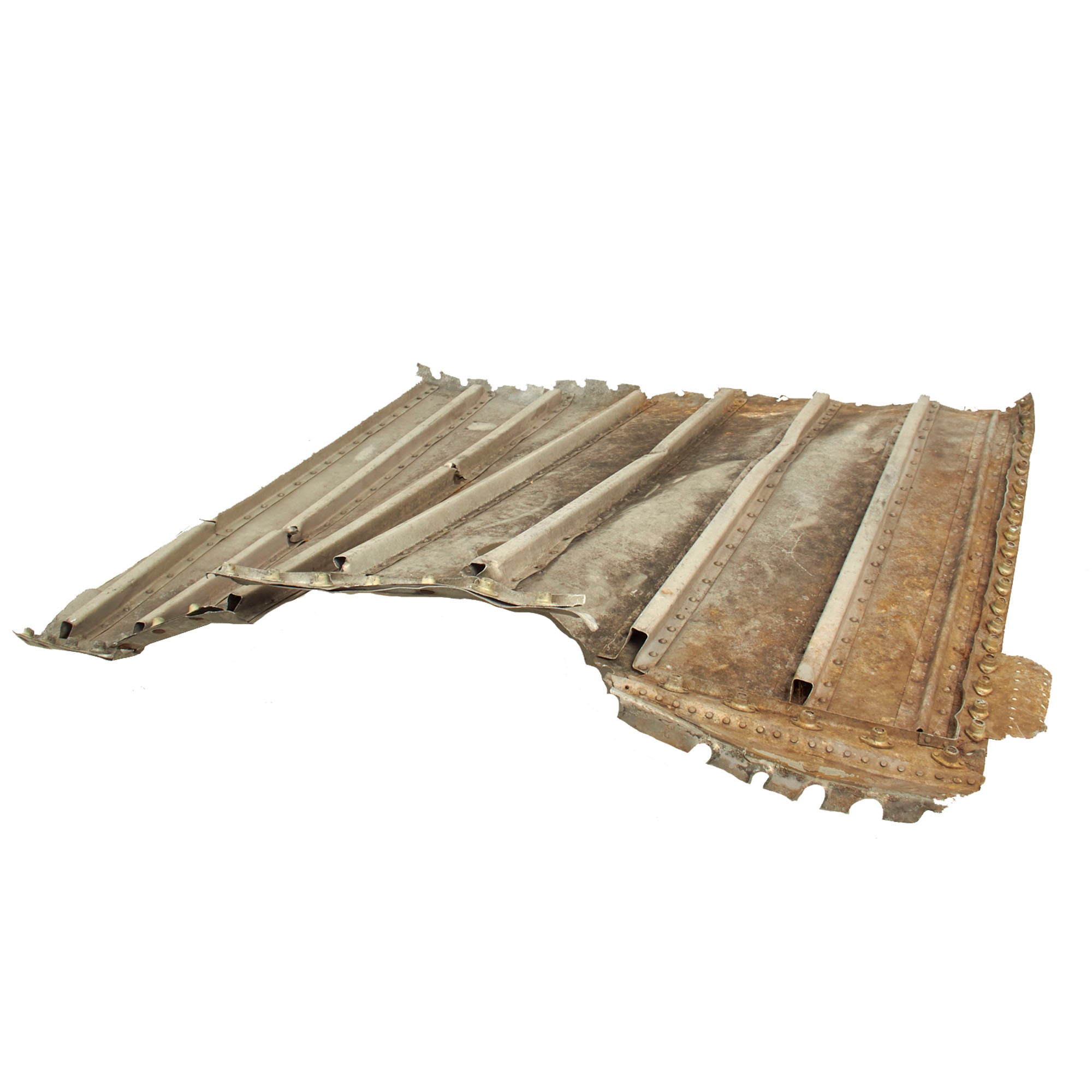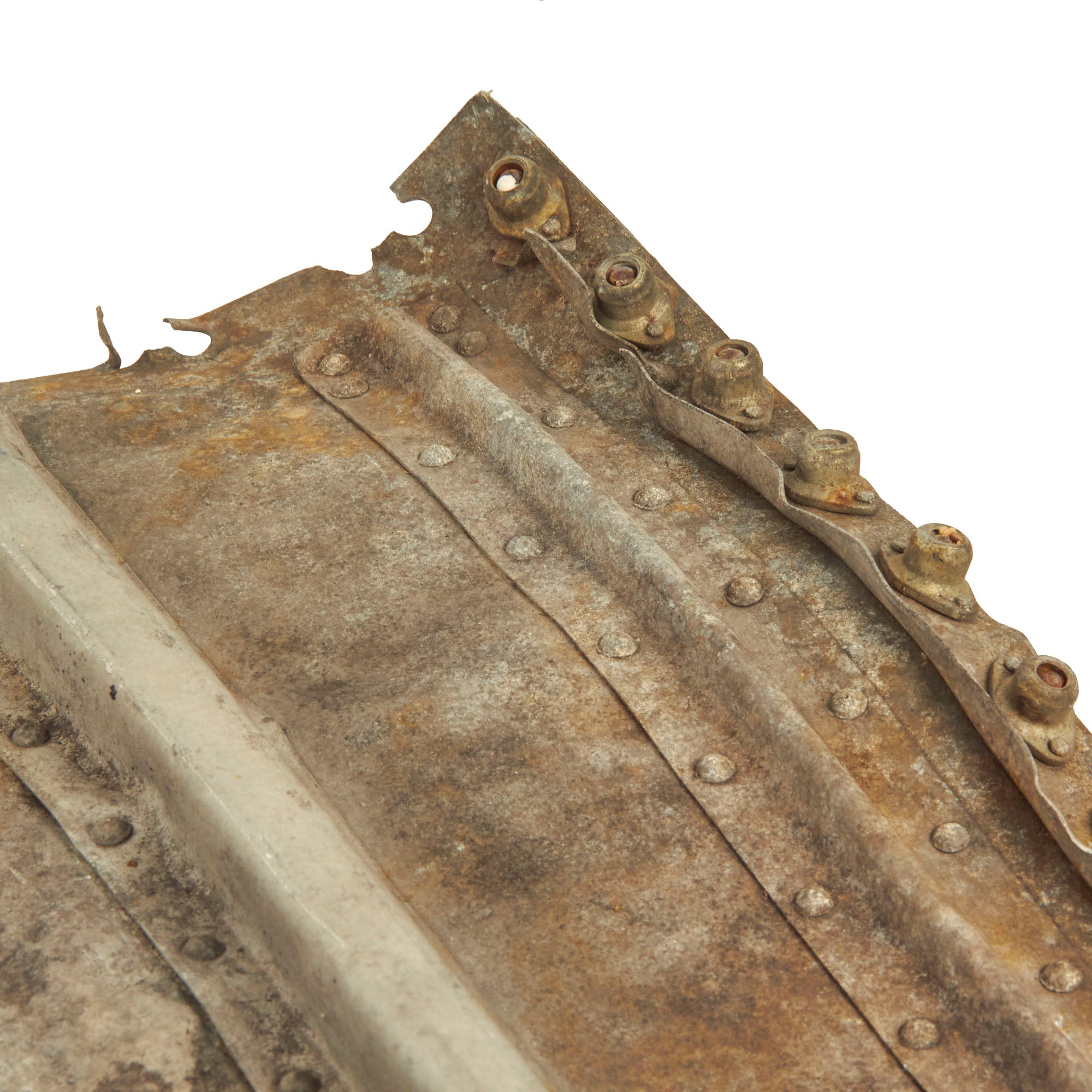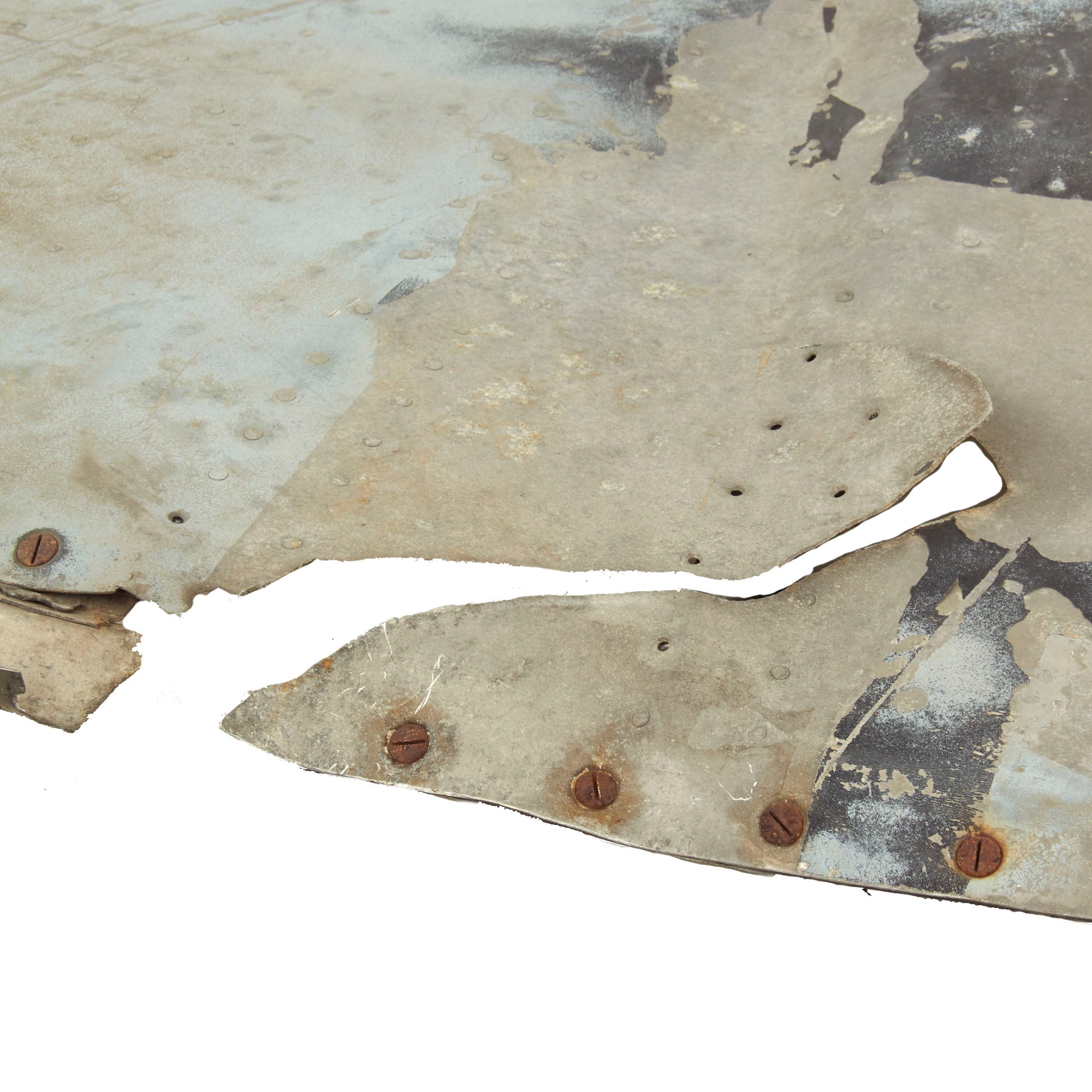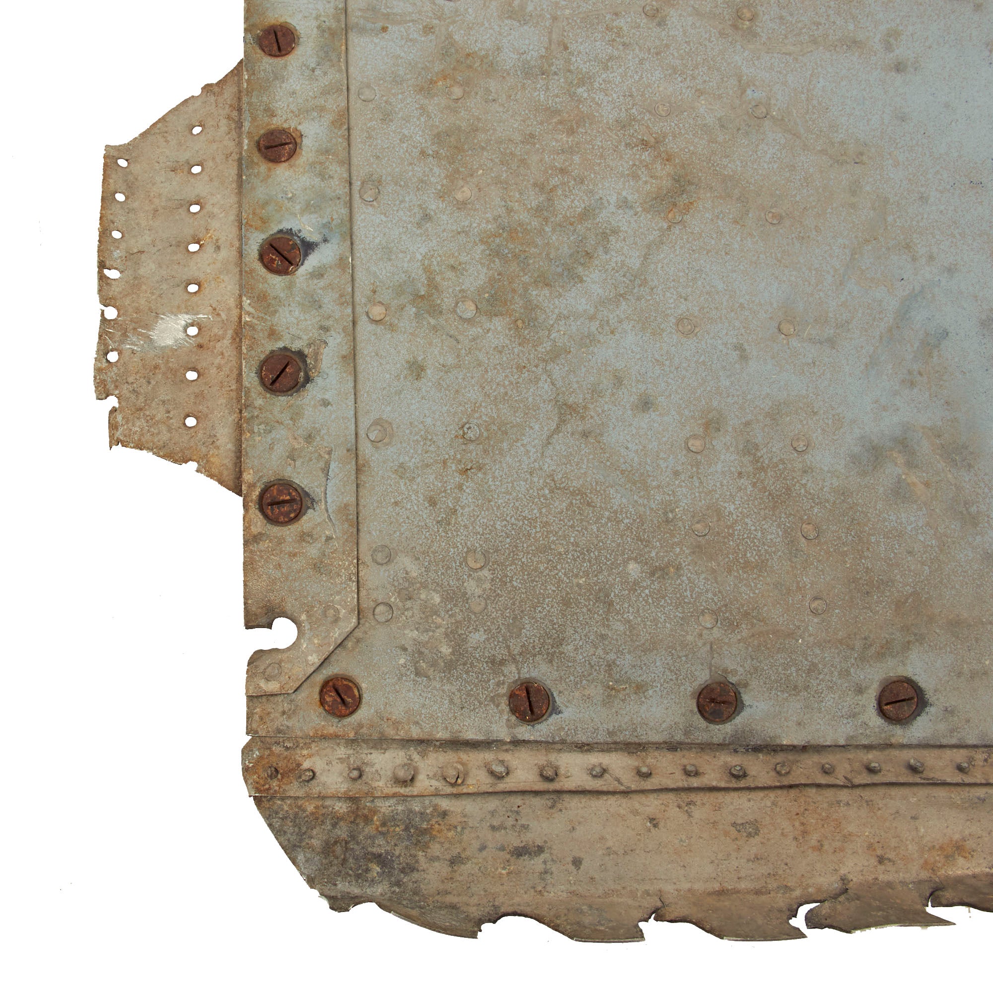 The condition of this section is quite nice considering that the aircraft crashed and the remnants remained buried for nearly 60 years. There are areas of extensive paint loss, rippling, holes, “tearing” and so on giving this an extremely pleasing appearance of a “war bird”. There is much of the original paint present and a solid break of black paint which would have completed the Balkan cross.