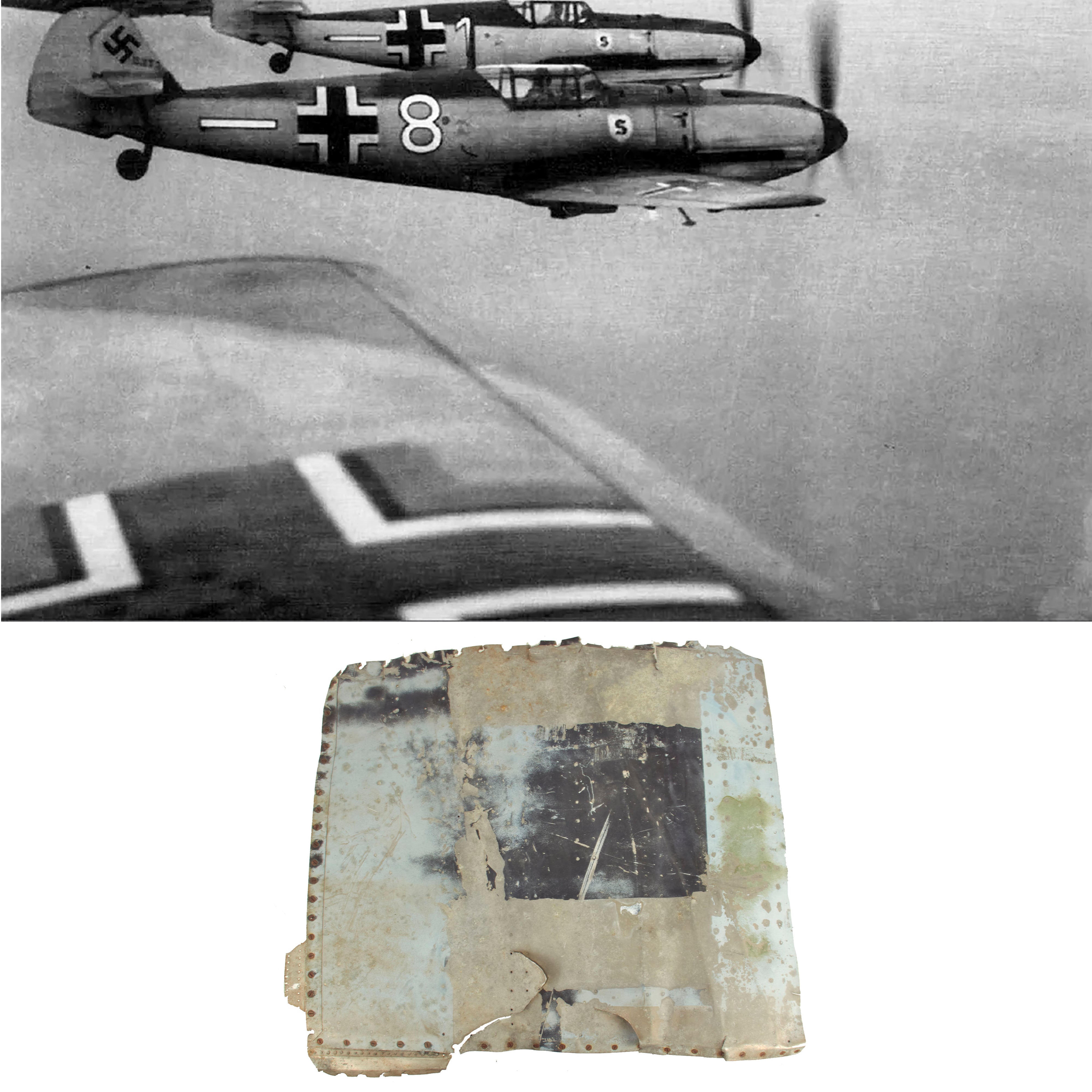 This wing section came to us with research stating that it was found at the crash site of a BF 109 at the Pitomnik airfield and was unearthed in 2000. The original owner states that he found evidence of five BF 109s that crashed at or near this airfield between 10/6/42 and 1/3/43, with four of them being totaled. This wing section is believed to be from BF 109 F-4 Wk# 13113 of 9/JG-3. It is believed to have come from this aircraft as it was reported approximately 70 percent of damage was caused to the aircraft, making it plausible that a section this large could have been recovered. This was all done using a process of elimination of the 95-100 percent destroyed aircraft, as well as elimination of “near” or “area” of the Pitomnik airfield, which left Wk #13113. It was piloted by Ogefr. Karl Bohnke of 9/JG-3.