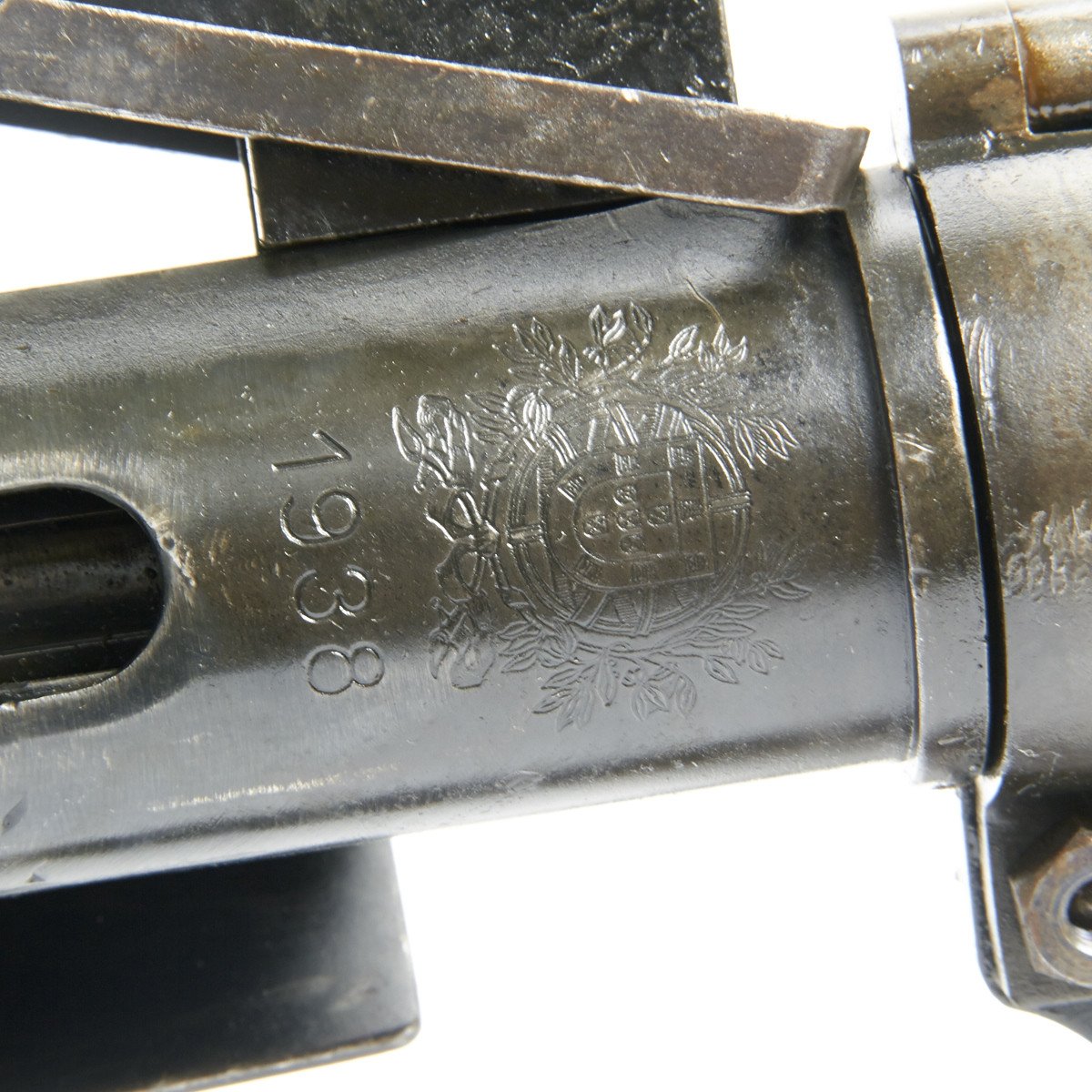 The MG 13 DID have a relatively rapid barrel change feature, which permitted sustained firing over longer periods of time, but it was a little more involved and time consuming than the MG 34 and BREN. The BAR, of course, did not feature a quick-change barrel at all. In order to support the MG 13 in the sustained-fire role, each fire team was supplied with extra barrels. A set of two extra barrels in an original carrier is provided as part of this offering. The barrel carrier also houses a long-reach broken cartridge extractor and a cleaning rod.