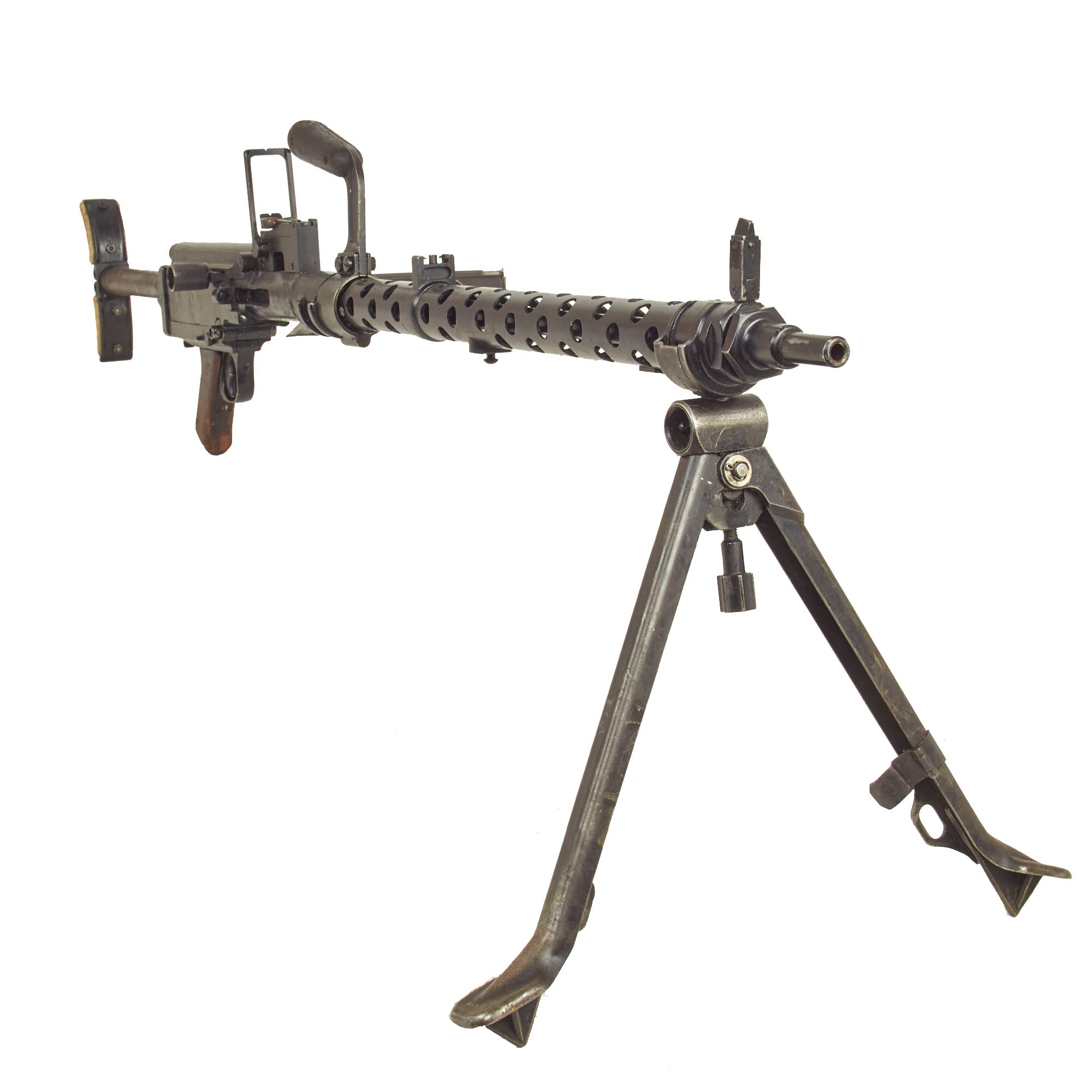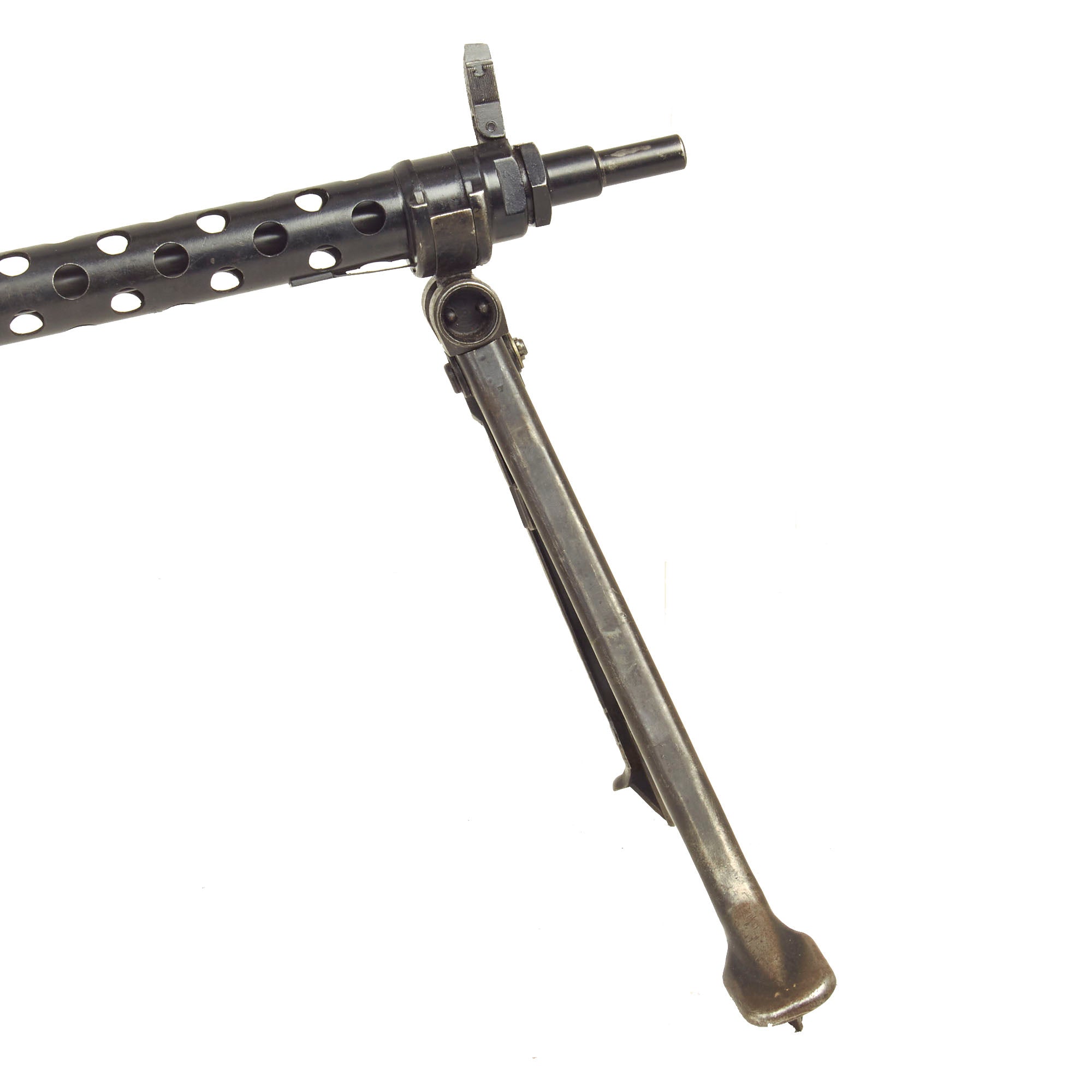 Original Item: Only One Available. This is a stunning totally original German MG 13 Light Machine guns built on BATF compliant non-firing dummy receiver. It is made from an original demilitarized receiver, re-welded with 20% of the length omitted as required by the BATF. Because of this the carry handle is mounted forward of the rear mounting trunion, instead of behind.