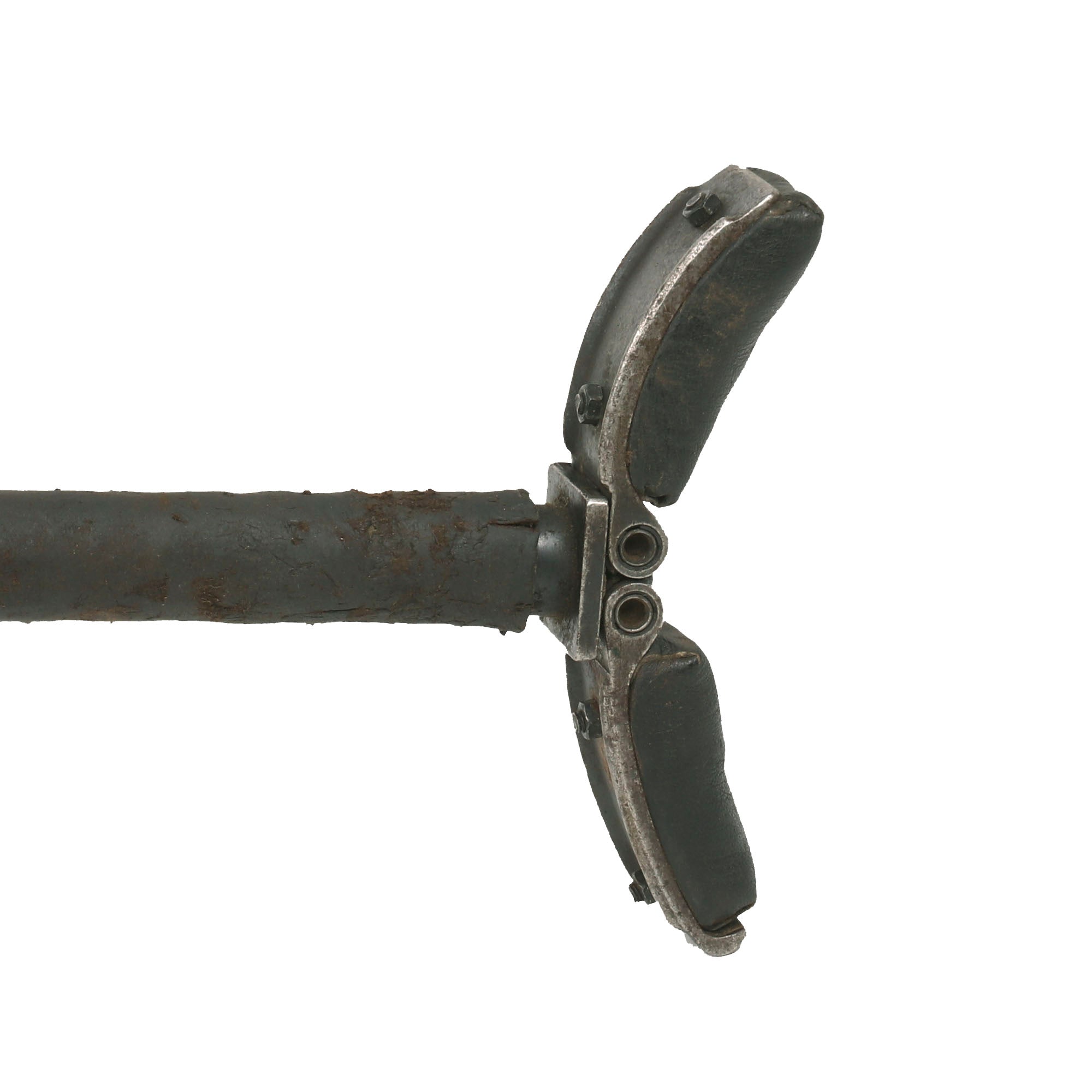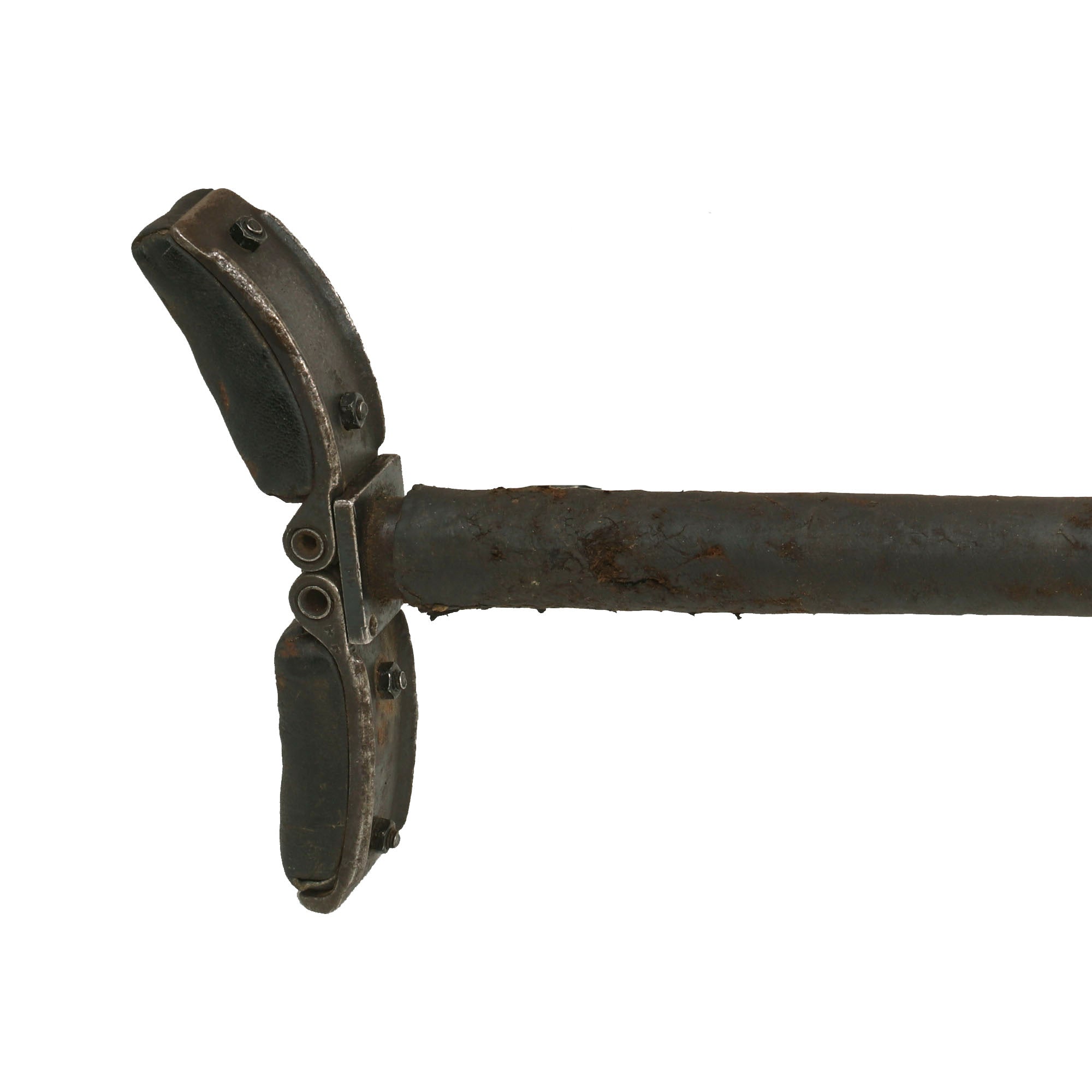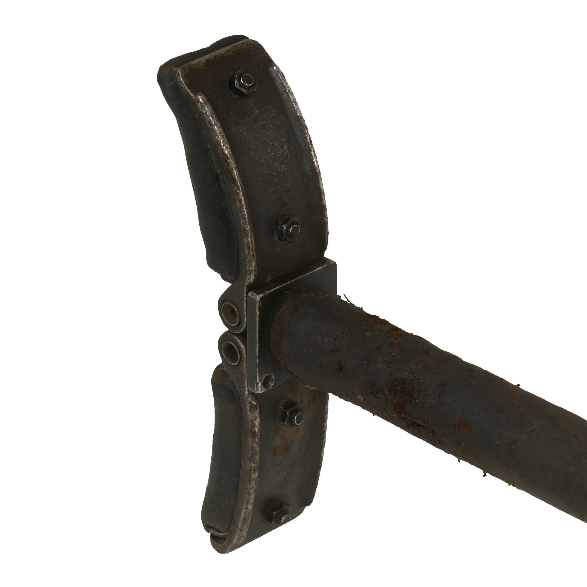 The bipod is in great shape, and looks to be a wartime replacement adapted from an MG 34 bipod, which was very similar. It is marked on the central hub with [dqc] on the central hub, surrounded by Waffenamt Eagle / WaA195 inspection stamps. This is the code for Metalfabrik Eugen Ising, located in Bergneustadt, Rheinland. This metalworking business is known for making optical and gun tripods. This inspector marking is associated with Rheinland, and is correct for this maker.