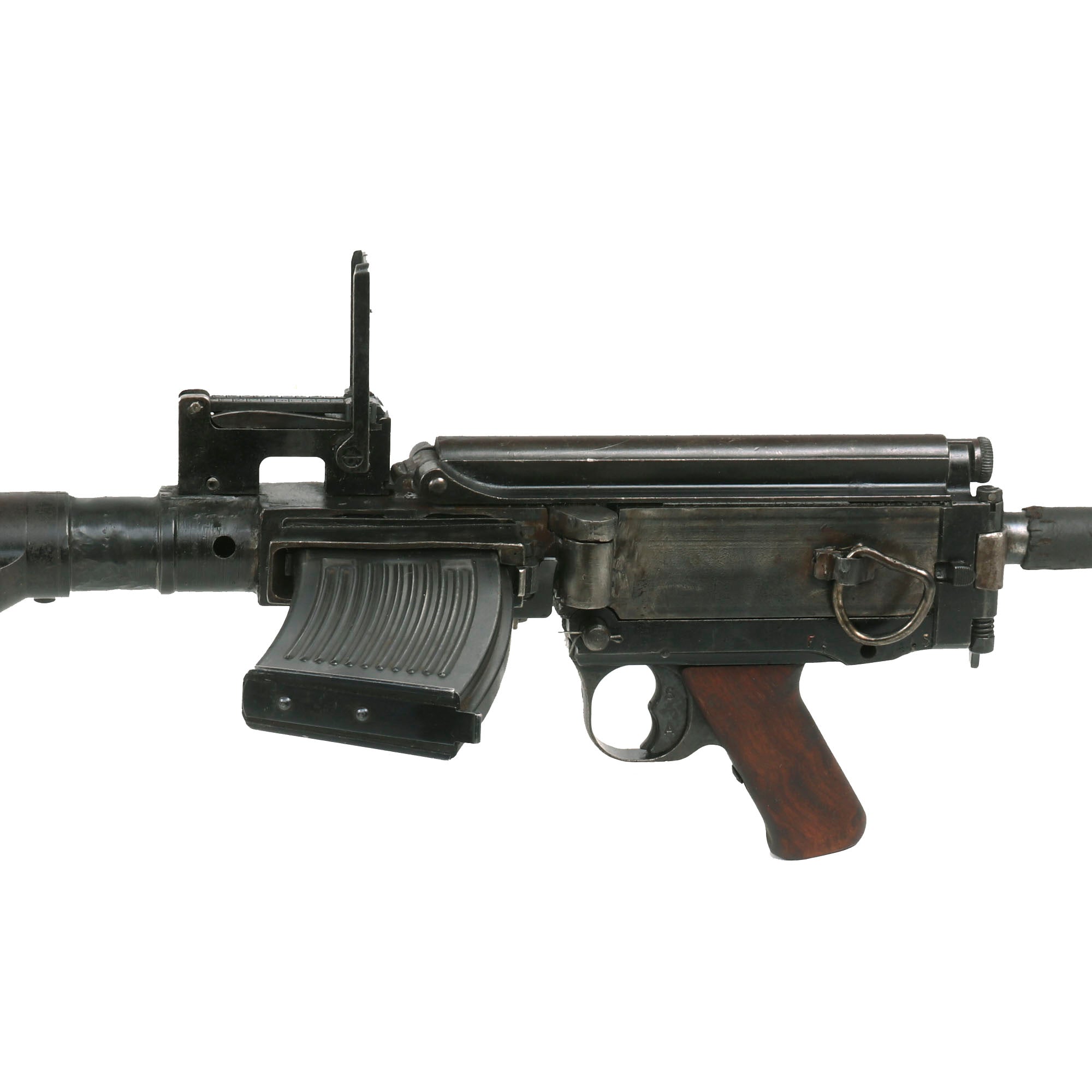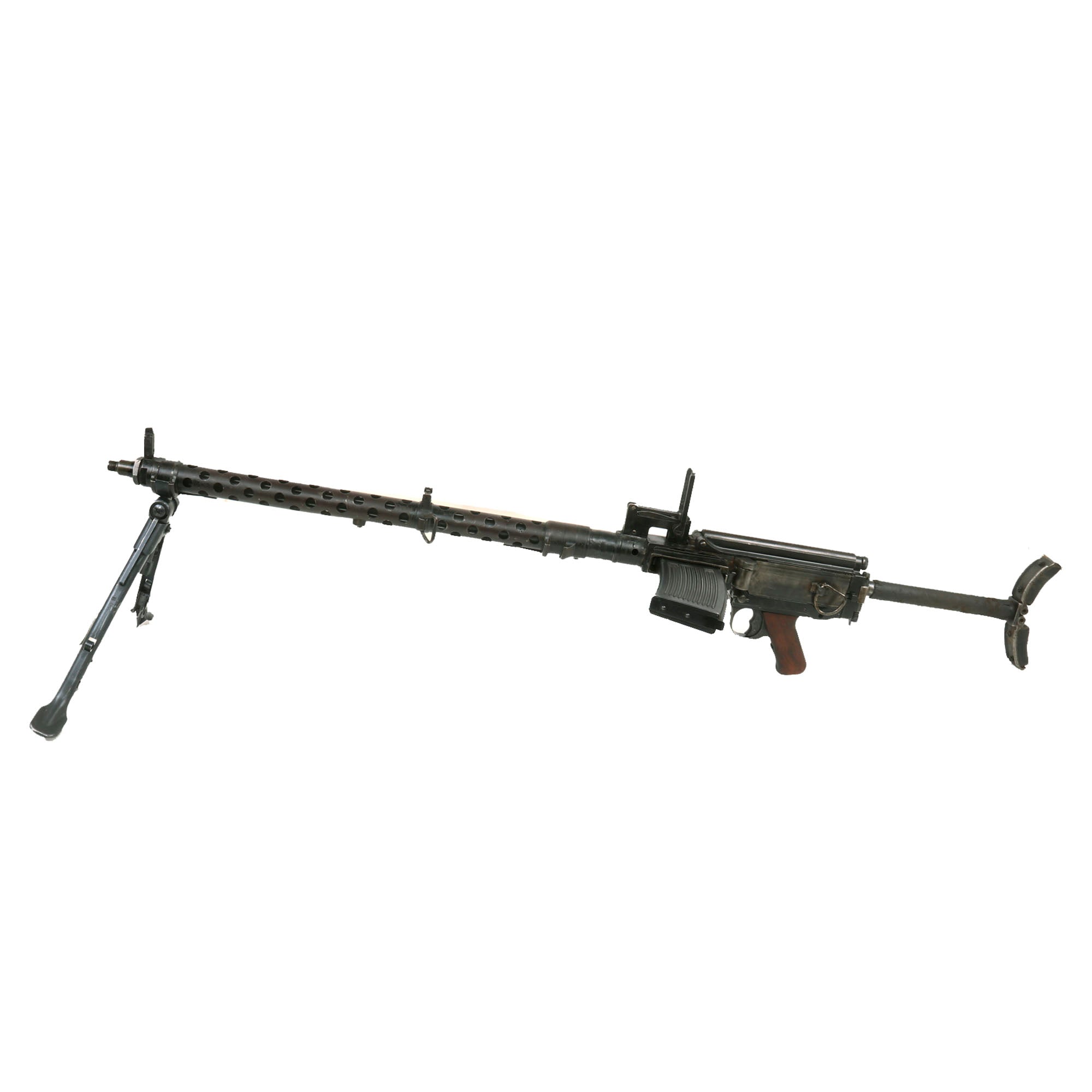 The MG 13 was the standard light machine gun of the Wehrmacht from 1930 through 1934. The design, which was adapted from the Dreyse machine gun of World War One, is simple and rugged. From the tactical point of view, the Germans considered that the LMG they wanted had to be belt fed with a quick barrel change feature, which led to the MG 34 being adopted. Nevertheless, the MG 13 saw widespread use as a second-line light automatic weapon. Some countries, for example Great Britain, had fine success using a magazine-fed gun as their basic LMG (the BREN gun), and the United States had good success with the BAR in a similar role.