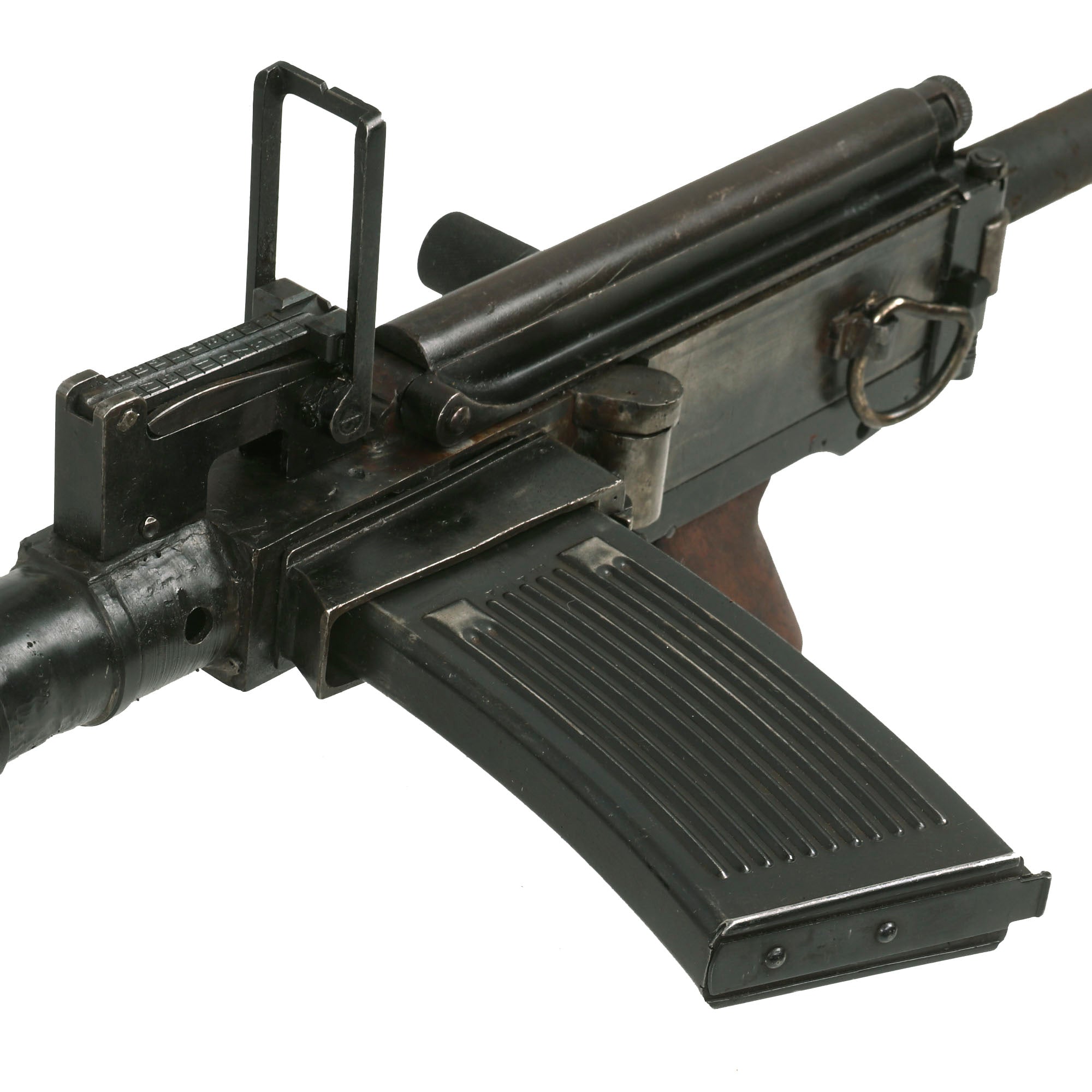 On later examples a 75-round saddle drum was also used. It was equipped with a folding butt stock and a carrying handle It was used in the turret of the Panzer I tank.