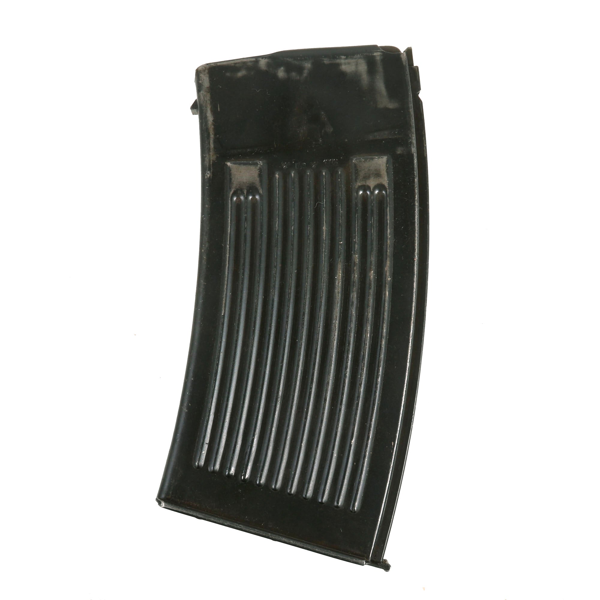 This example bears multiple Waffenamt proofs on various components. It features all original parts (with the exception of the solid steel portion of the dummy receiver) including a foldable butt stock and functional bipod. The butt stock still locks into the open position, and can be folded back up along the right side of the receiver, though the spring button retaining mechanism on the side of the receiver is missing.