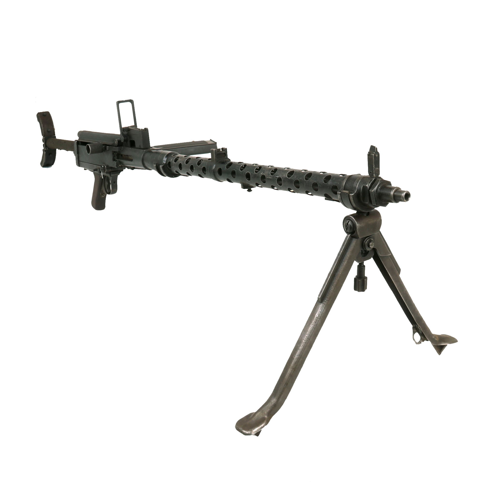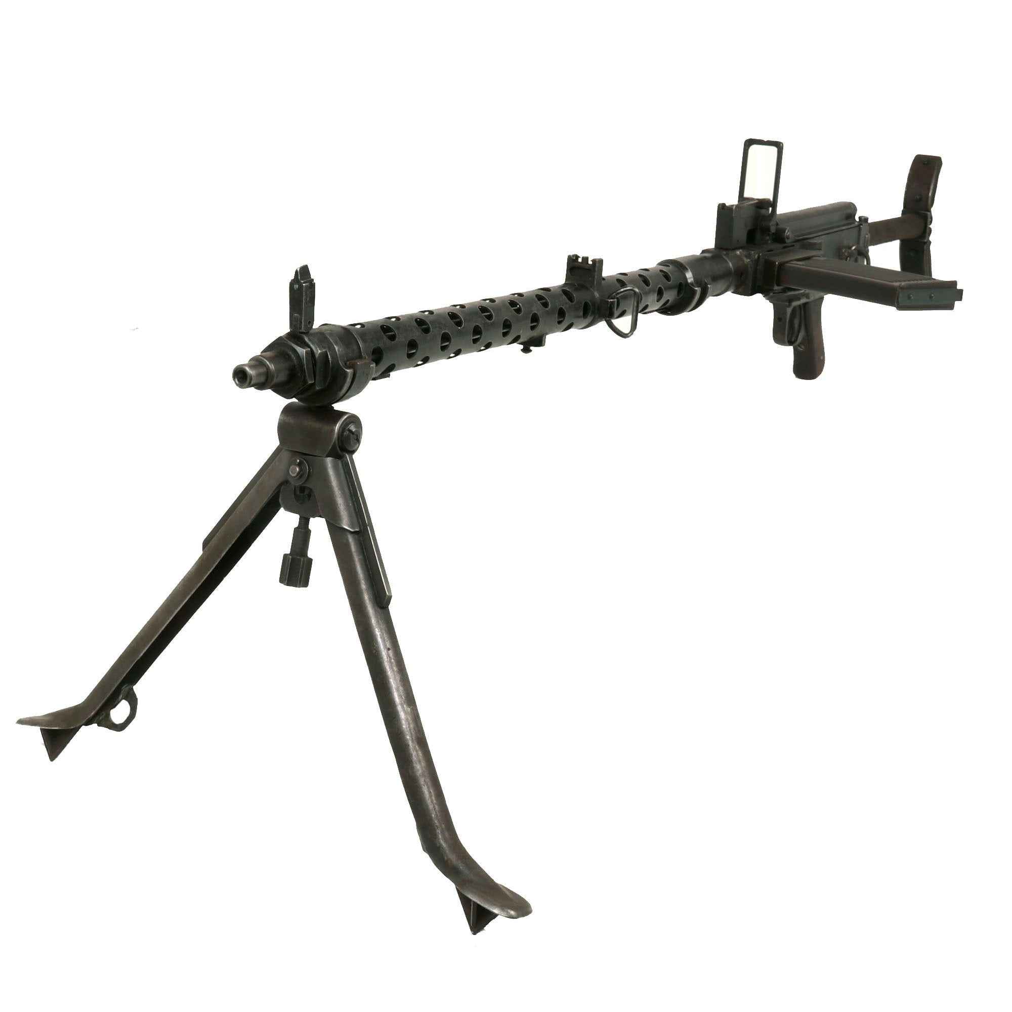 The MG 13 was the standard light machine gun of the Wehrmacht from 1930 through 1934. The design, which was adapted from the Dreyse machine gun of World War One, is simple and rugged. From the tactical point of view, the Germans considered that the LMG they wanted had to be belt fed with a quick barrel change feature, which led to the MG 34 being adopted. Nevertheless, the MG 13 saw widespread use as a second-line light automatic weapon. Some countries, for example Great Britain, had fine success using a magazine-fed gun as their basic LMG (the BREN gun), and the United States had good success with the BAR in a similar role.