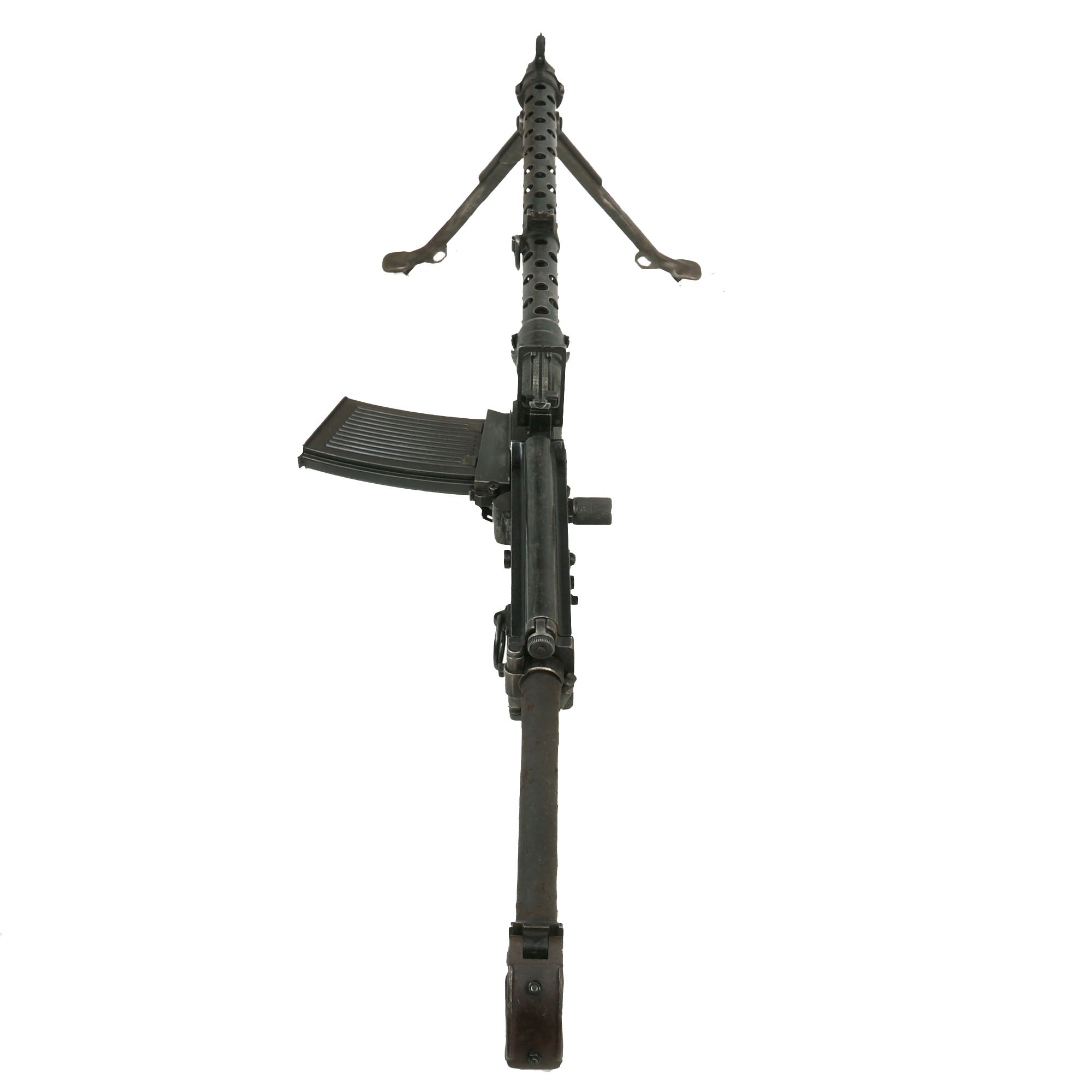 Original Item: Only One available. Constructed from a legally demilitarized (de-milled) parts set, this is a wonderful and rare German WWII Era MG 13 Display Light Machine Gun. It is built from all original parts on an original BATF compliant non-firing display receiver, making this a 100% legal display machine gun. This receiver was created by using portions of the original torch cut receiver, including the barrel bushing, combined with some new made solid steel portions. It has properly had a 25% section of the total length completely replaced entirely with solid steel bar stock. Meaning a 1/4 length section of the display receiver is solid steel, making this legal to own without a license of any kind.