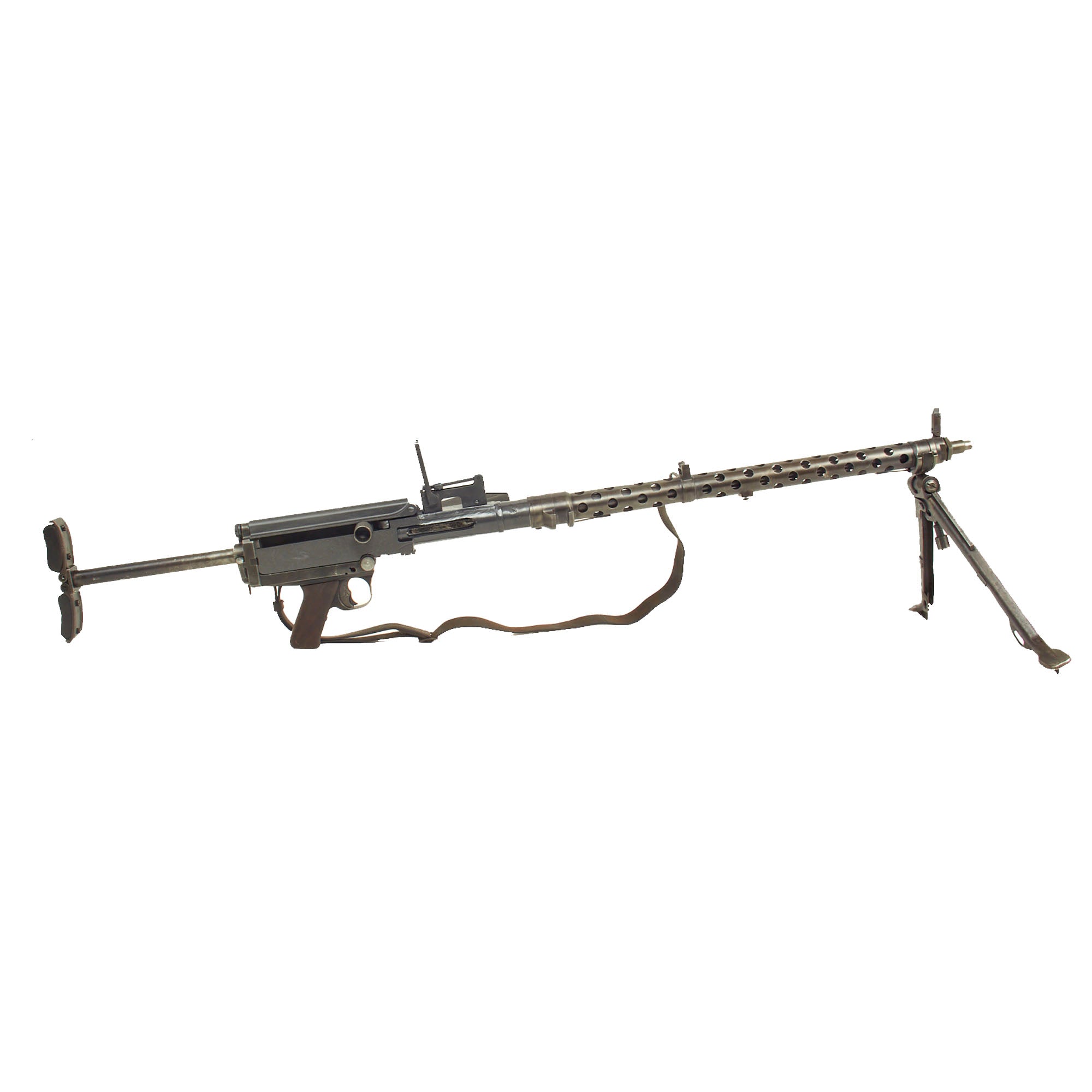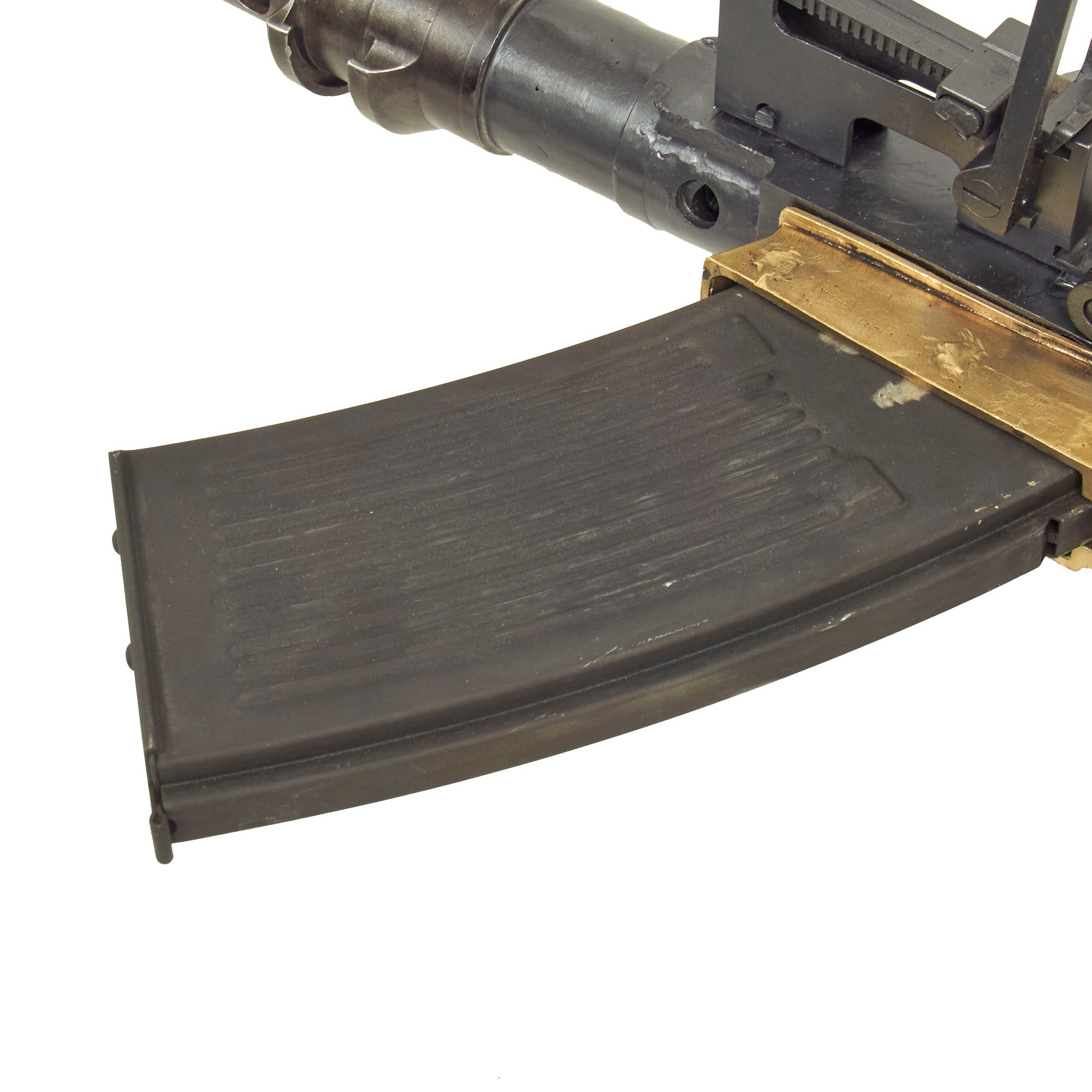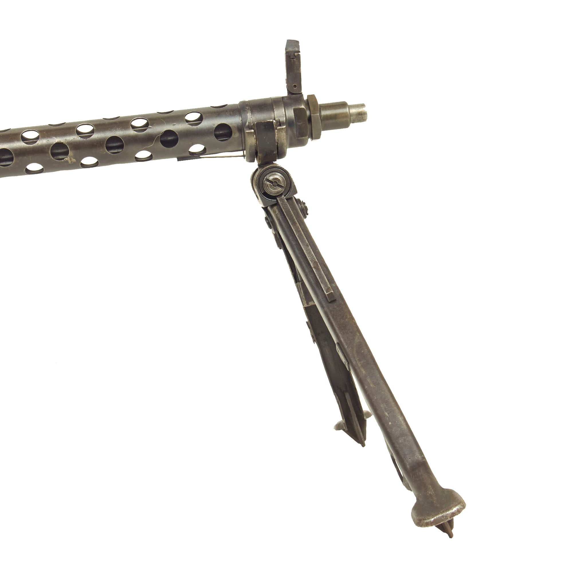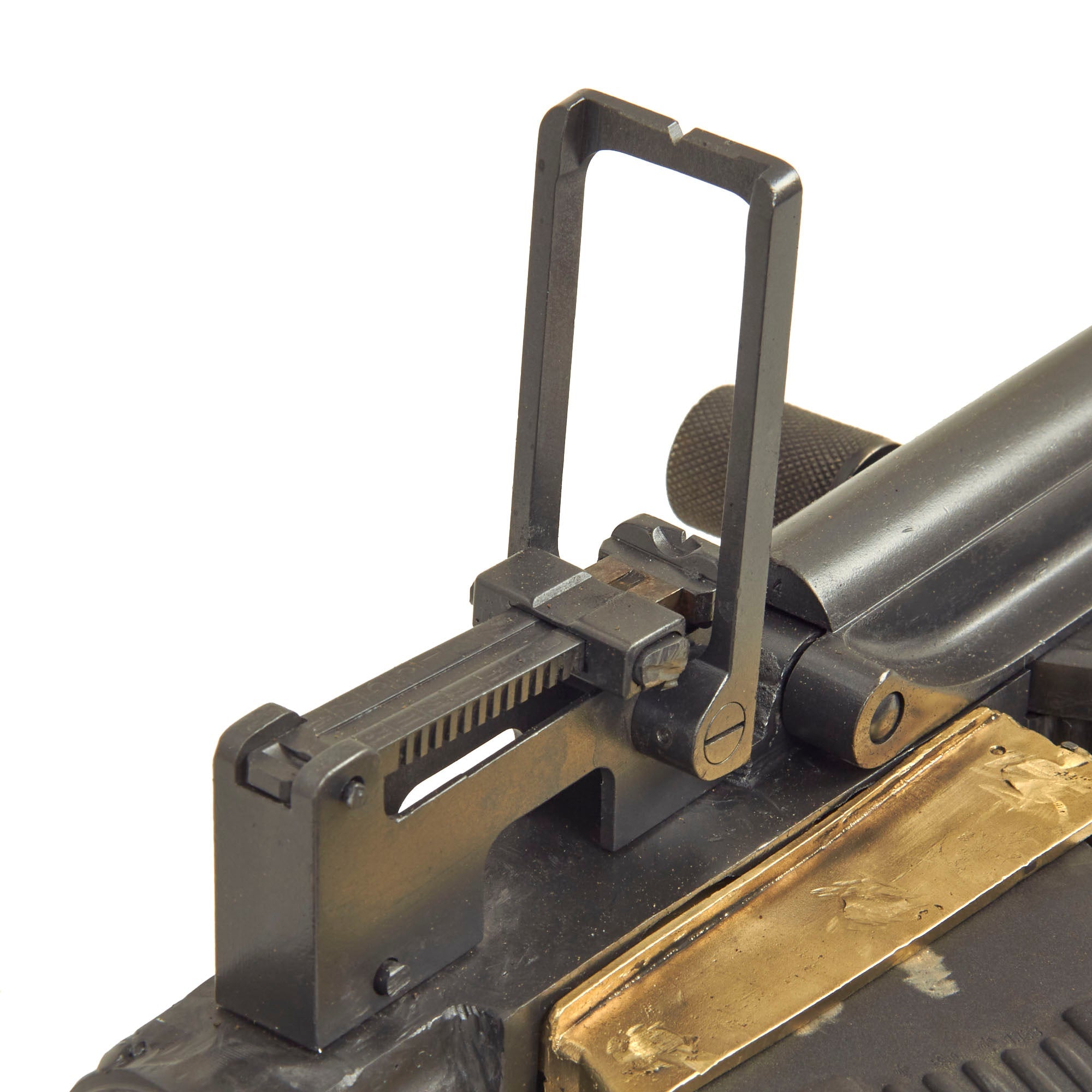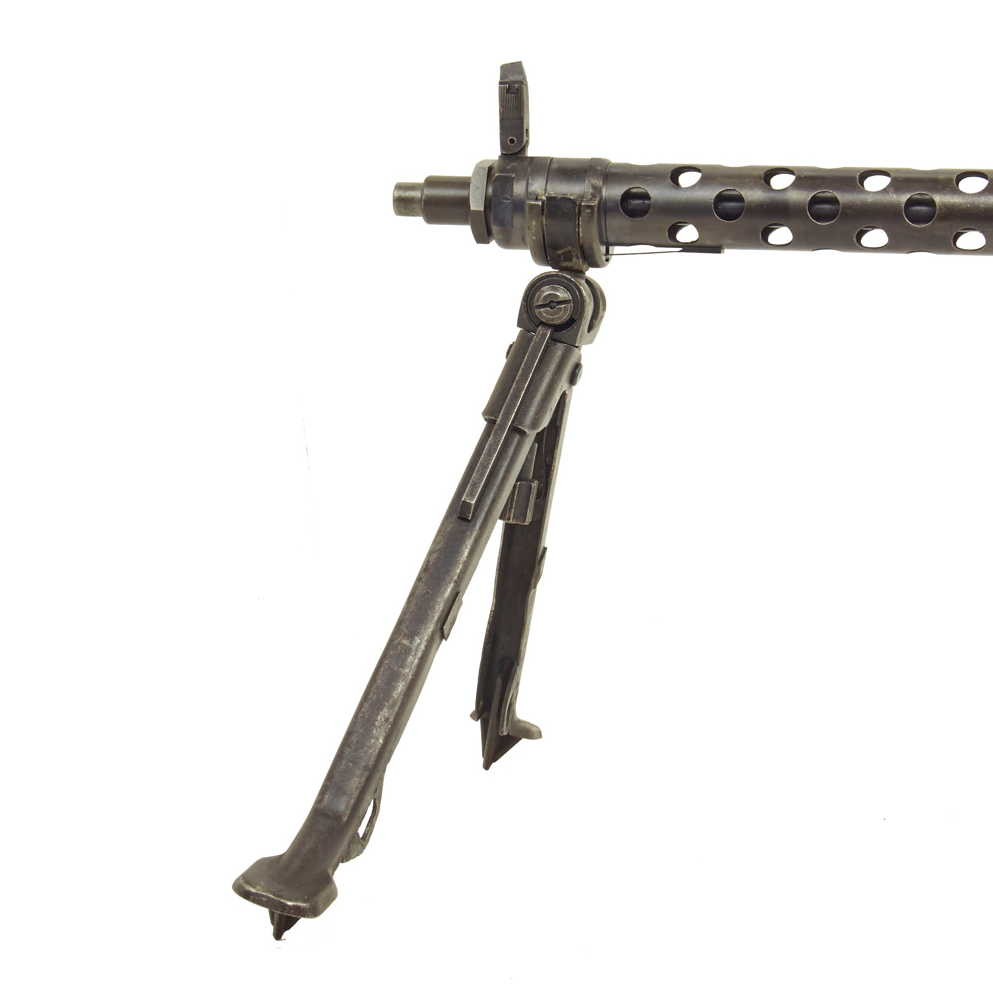 Original Item: Only One available. Constructed from a legally demilitarized (de-milled) parts set, this is a wonderful and rare German WWII Era MG 13 Display Light Machine Gun. It is built from all original parts on an original BATF compliant non-firing display receiver, making this a 100% legal display machine gun. This receiver was created by using portions of the original torch cut receiver, including the barrel bushing, combined with some new made solid steel portions. It has properly had a 25% section of the total length completely replaced entirely with solid steel bar stock. Meaning a 1/4 length section of the display receiver is solid steel, making this legal to own without a license of any kind.