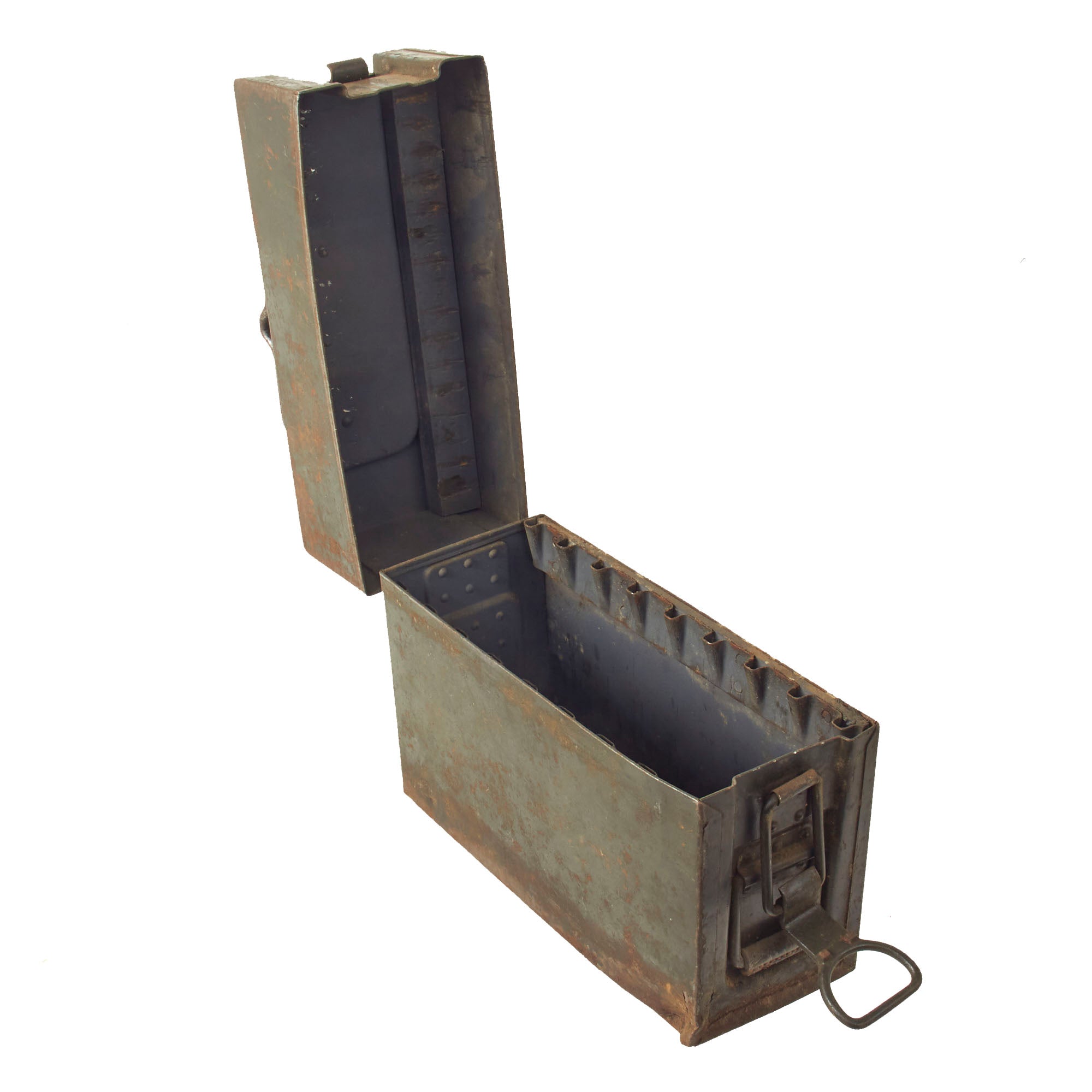 Original Items: Very Few Available. GRADE 2 Condition. Will have defects. ALL SALES FINAL (non-returnable). Original WWII era manufacture. Wonderful MG-13 steel Magazine Box in its original factory-applied paint. Just recently uncovered from a forgotten area of the IMA warehouse!
