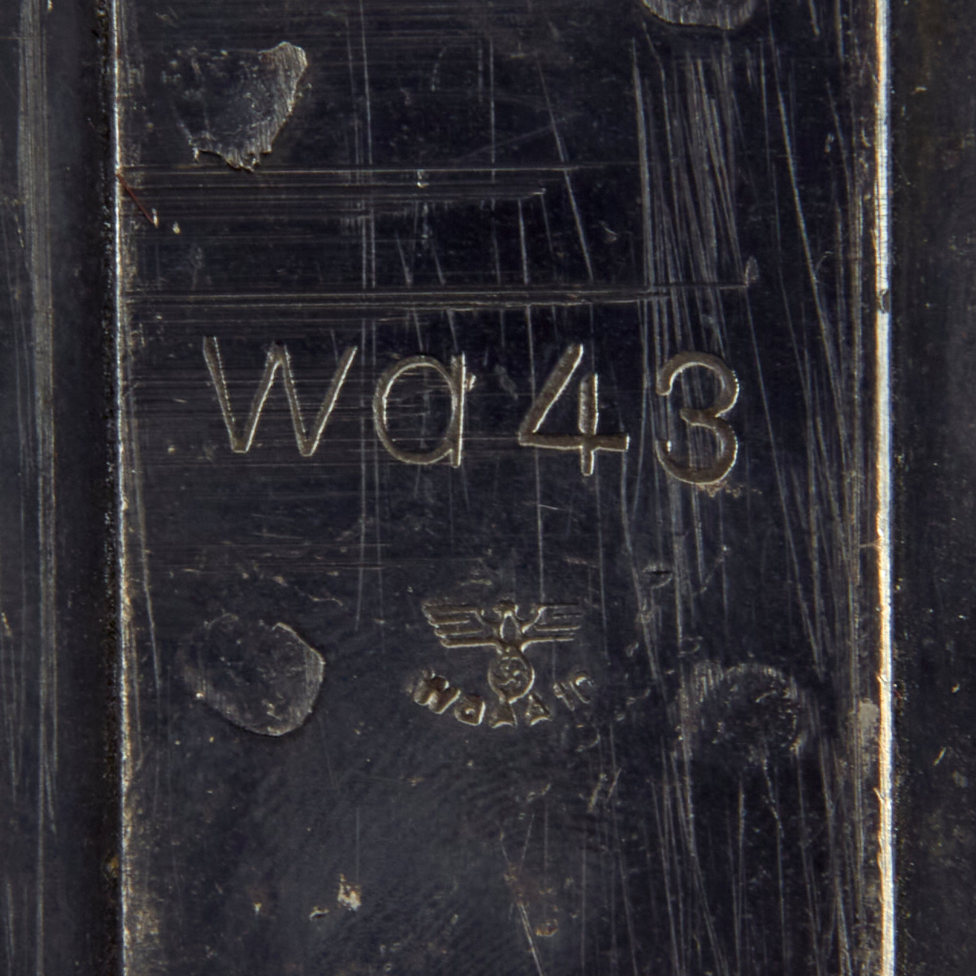 The “Wa 43” marking is for 1943 manufacture by Hasag, Hugo Schneider AG, Abteilung Lampenfabrik, Leipzig, a well known manufacturer of the Wehrmacht LP42 signal flare pistols. HASAG was a German metal goods manufacturer founded in 1863. Based in Leipzig, it grew from a small business making lamps and other small metal products by hand into a large factory and publicly traded company that sold its wares in several countries. During the Second World War, Hasag became a NSDAP arms-manufacturing conglomerate with dozens of factories across German-occupied Europe using slave labor on a massive scale. Tens of thousands of Jews from Poland, and other prisoners, died producing munition for Hasag.