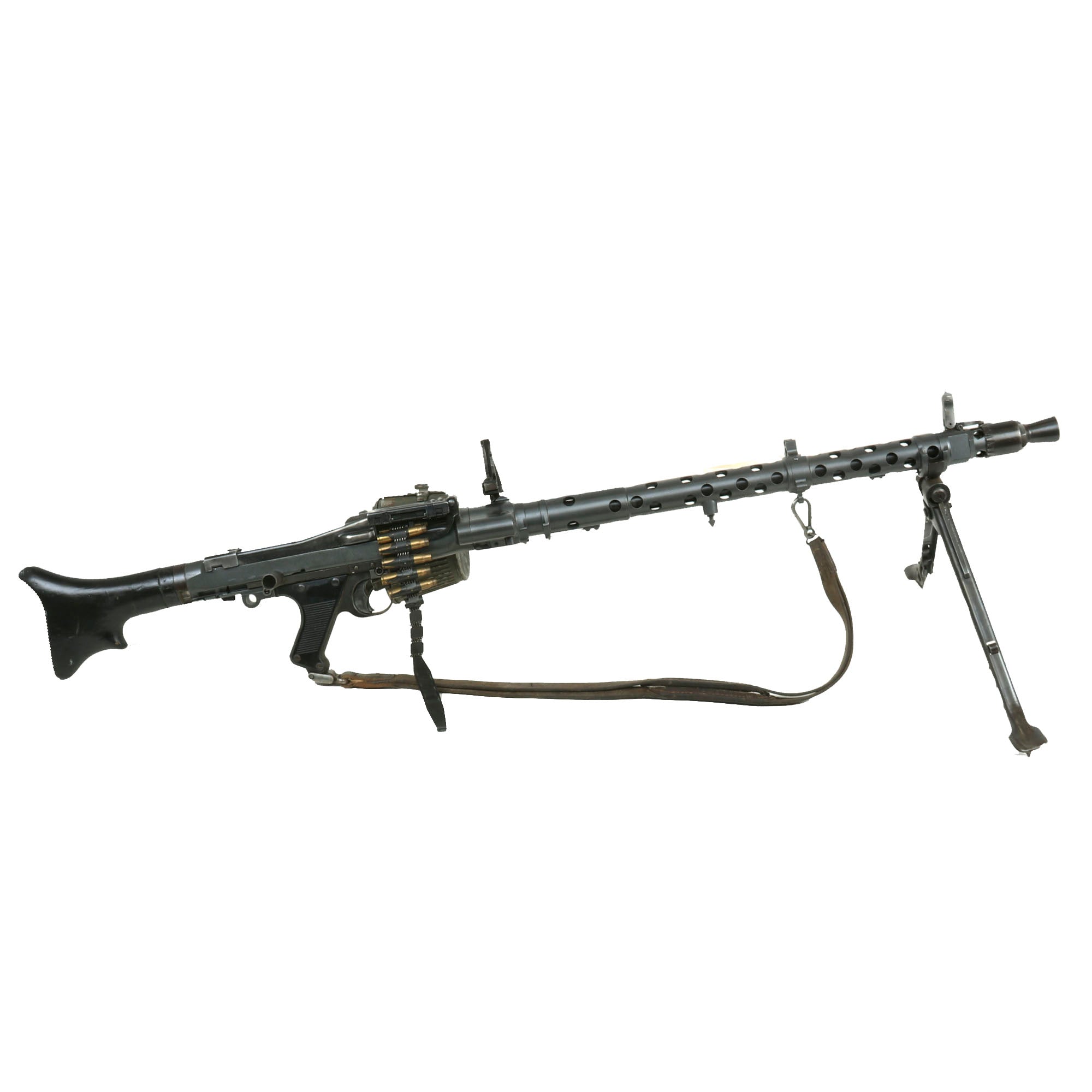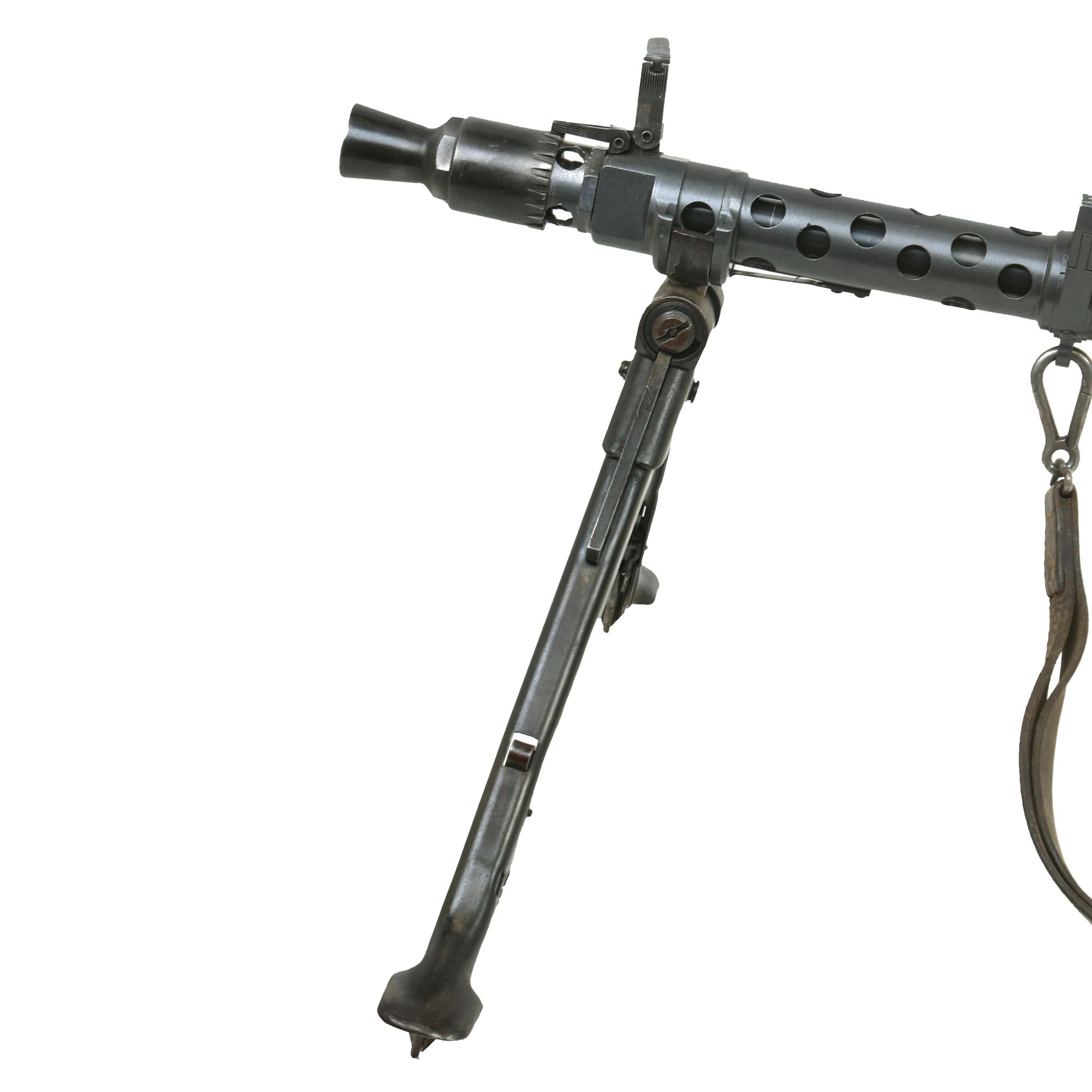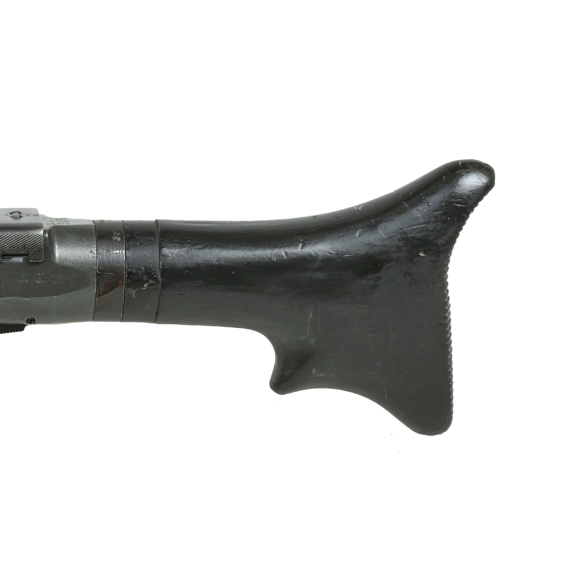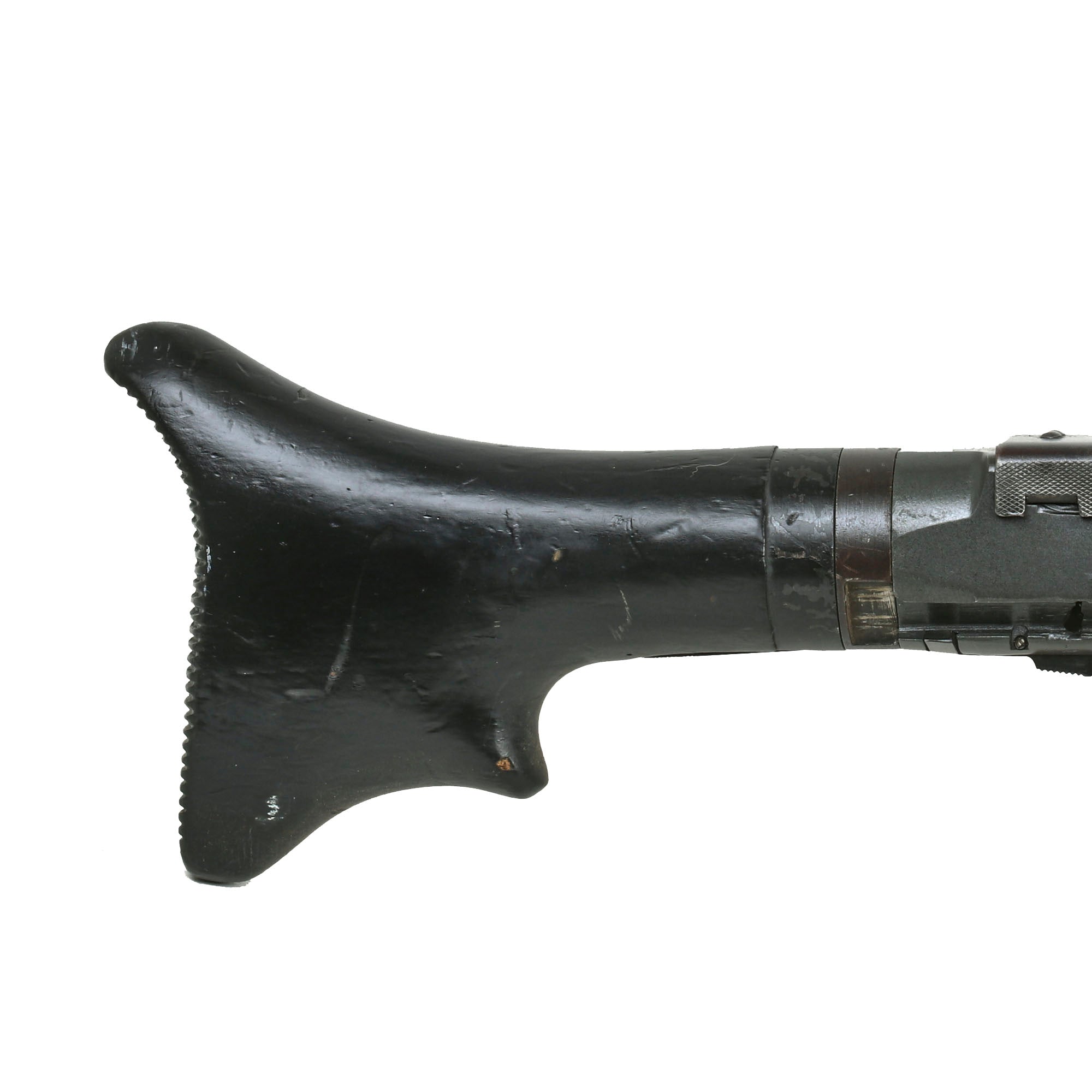 Original Item: Only One available. Constructed from a legally demilitarized (de-milled) parts set, this is a wonderful and rare German WWII MG 34 Display Machine Gun. It is built from all original parts on an original BATF compliant non-firing display receiver, making this a 100% legal display machine gun. This receiver was created by using portions of the original torch cut receiver, including the barrel bushing, combined with some new made steel portions. It has properly had a 25% section of the total length completely replaced entirely with solid steel bar stock. Meaning a 1/4 length section of the display receiver is solid steel, making this legal to own without a license of any kind.